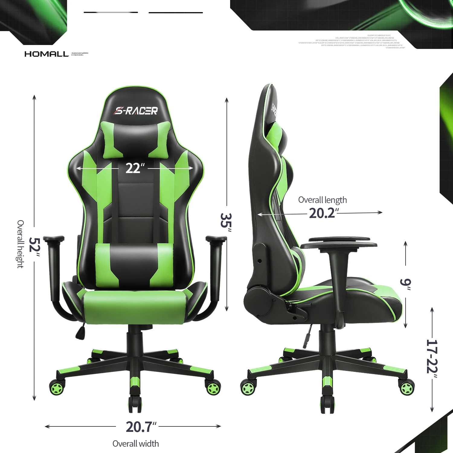 - Backrest Dimension: 22"x 32" (L X H)