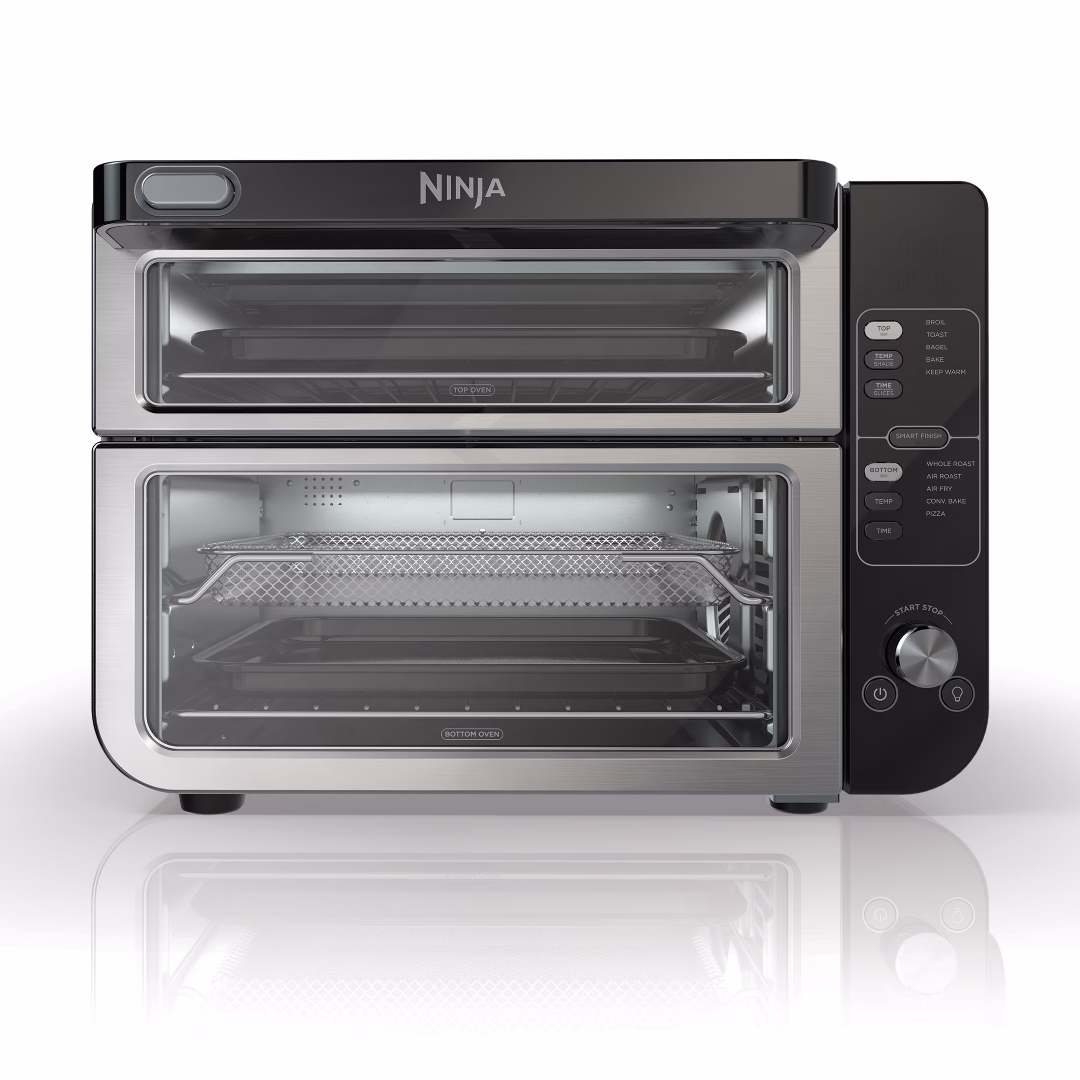Ninja 10 - in - 1 Air Fryer, Double Door Toaster Oven with Flexdoor, Flavorseal & Smart Finish, Rapid Top Convection and Air Fry Bottom, Bake, Toast, Air Fry, Pizza and More, Stainless Steel, DCT400