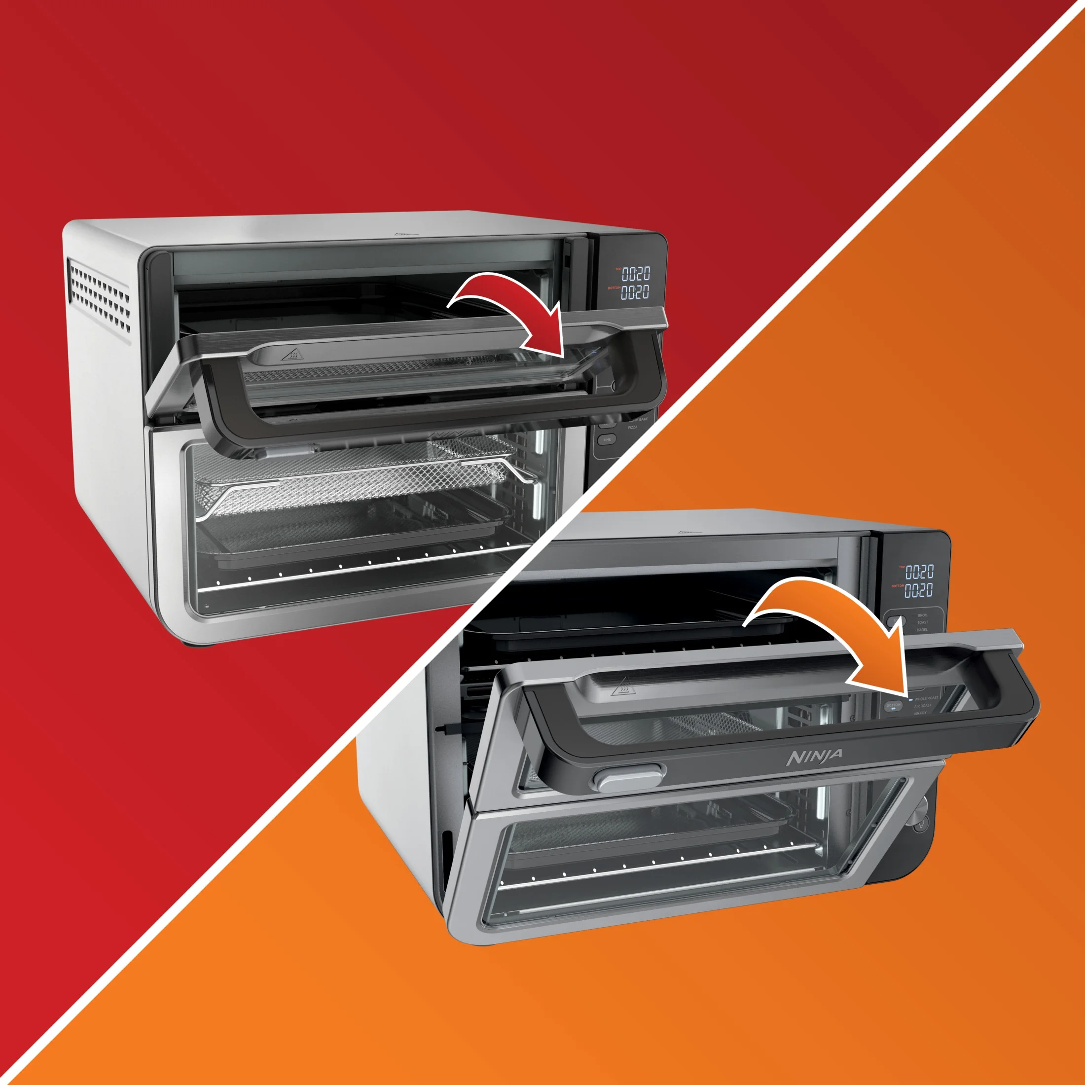 - FAMILY SIZED CAPACITY: Ninjas Double Oven fits 6 lbs of wings and a 12 in pizza at the same time to feed up to 8 people.
