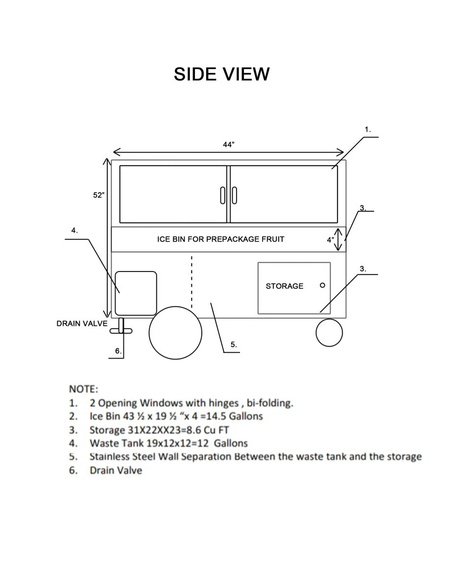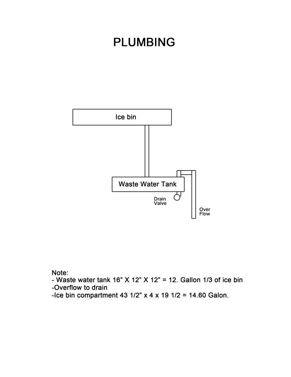 - Waste water tank 16'' x 12''x12''=12 Gallon 1/3 of ice bin