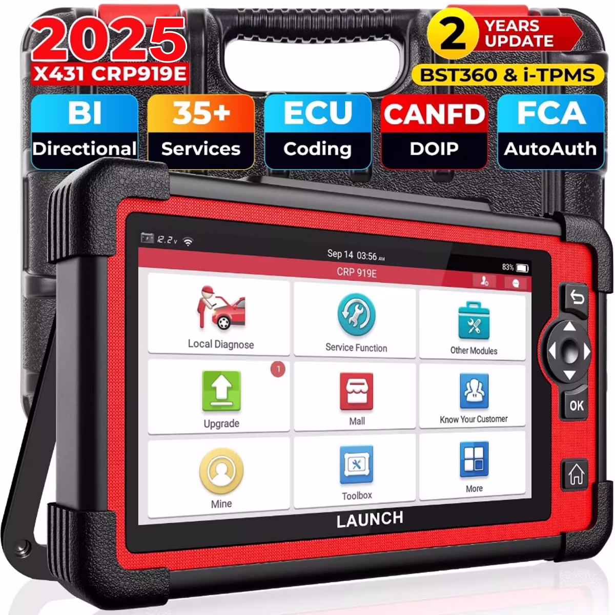 LAUNCH X431 CRP919E Cars Diagnostic Scan Tool All System Bidirectional Diagnostic OBD2 Scanner with 31+ Services Functions, ECU Coding, Supports CANFD/DOIP, 2 Years Free Update