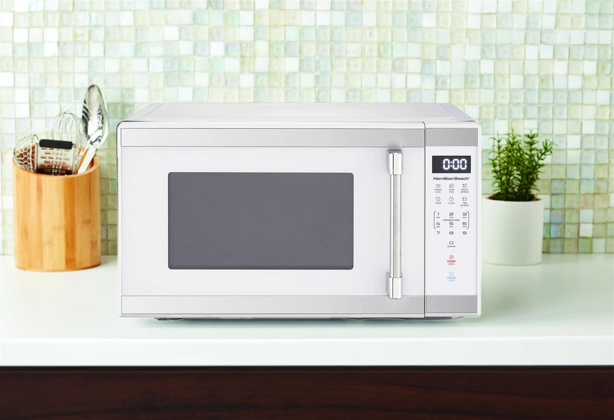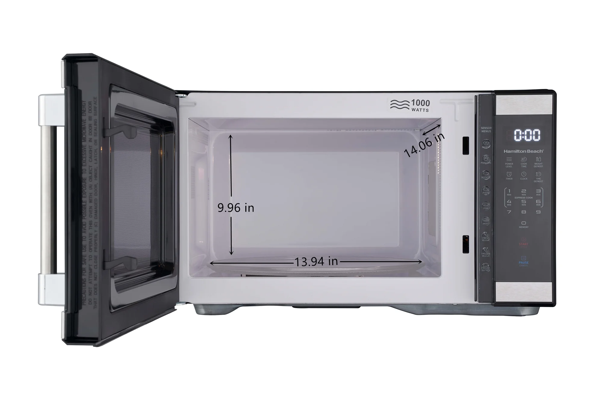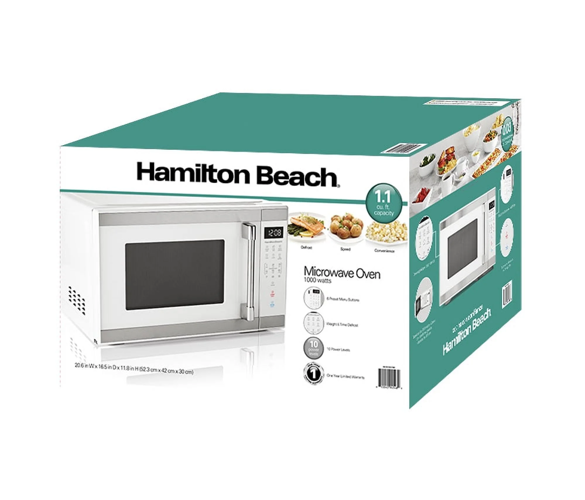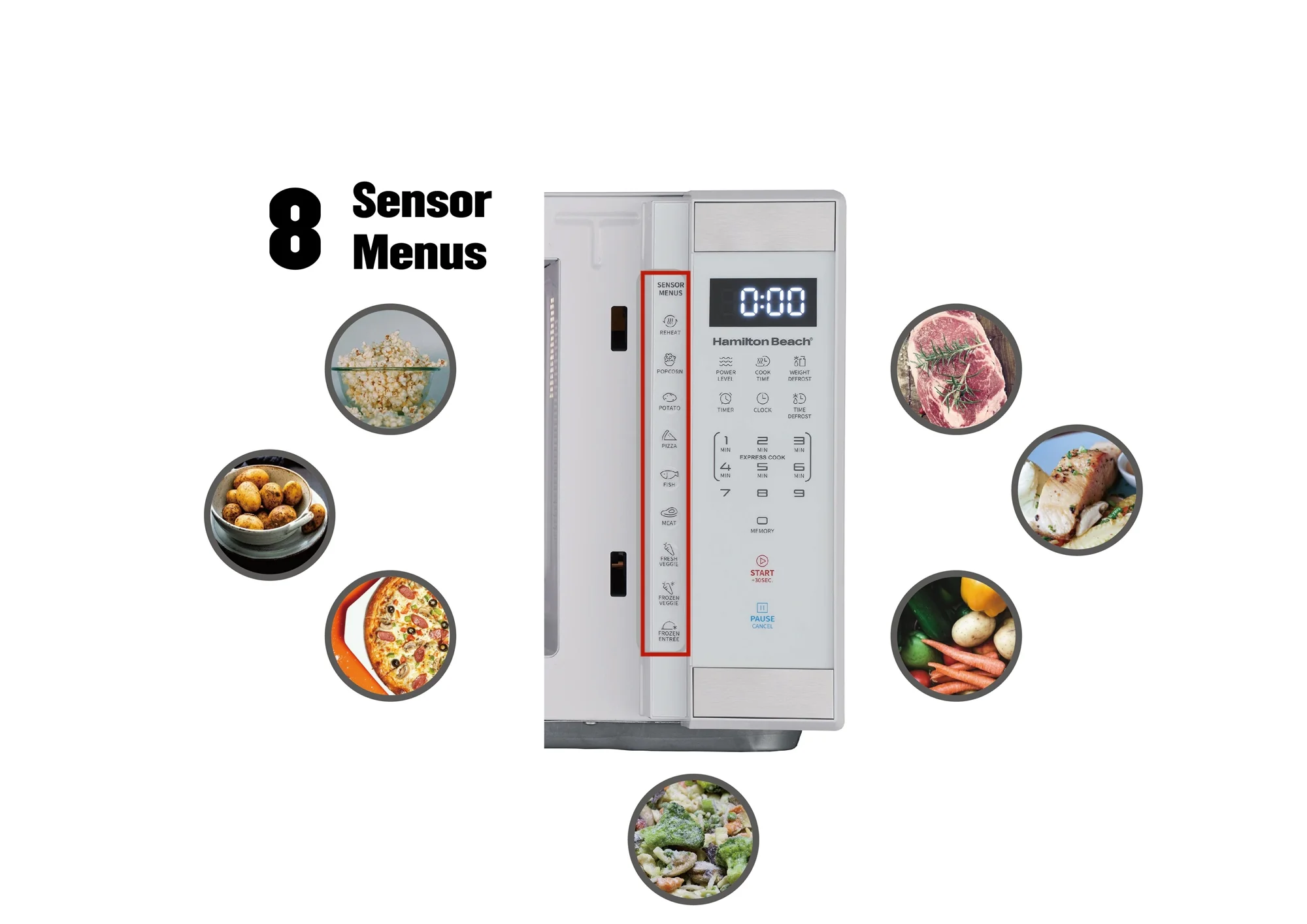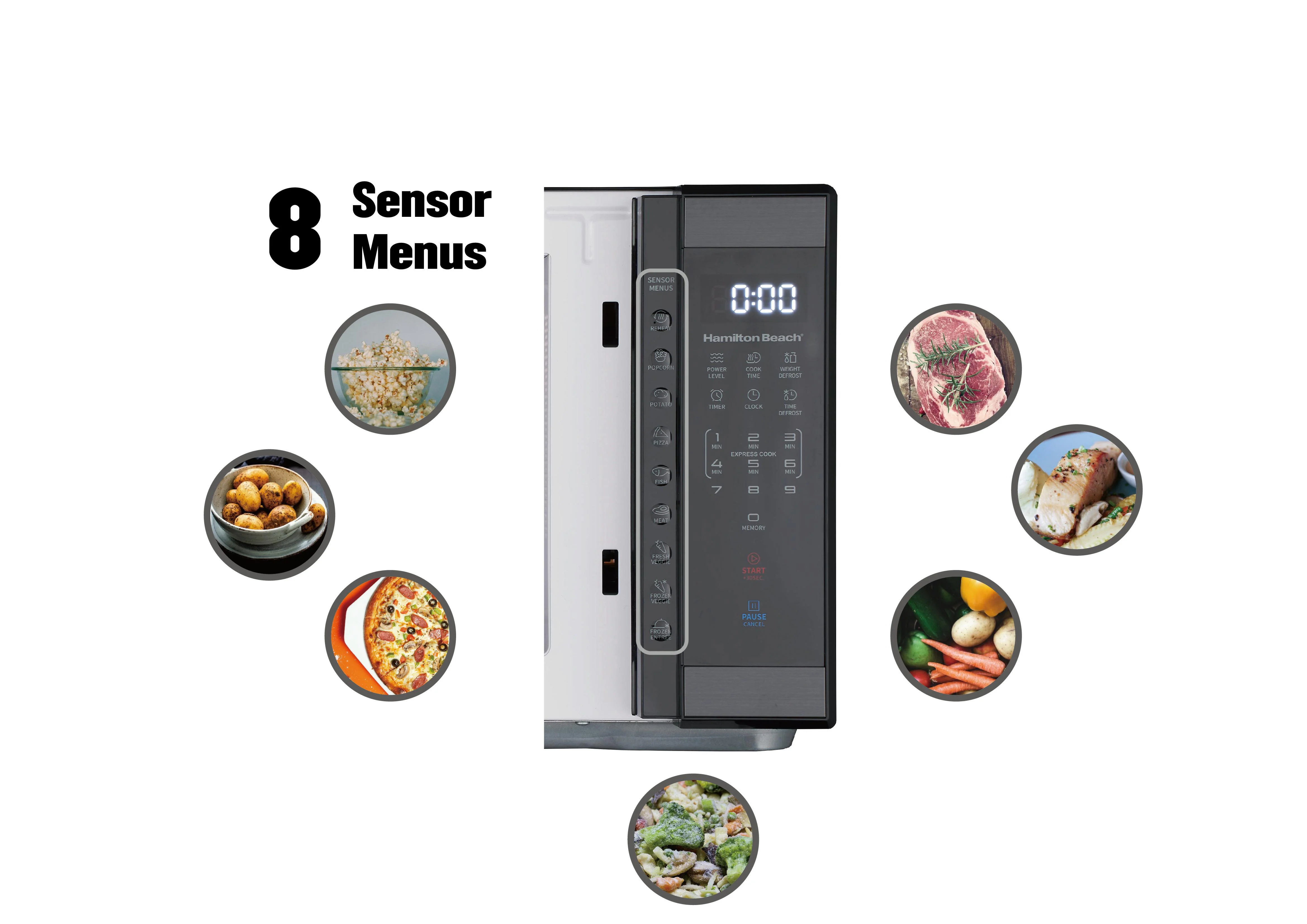 - 6 Quick-set menu buttons: popcorn, potato, pizza, frozen vegetable, beverage and dinner plate