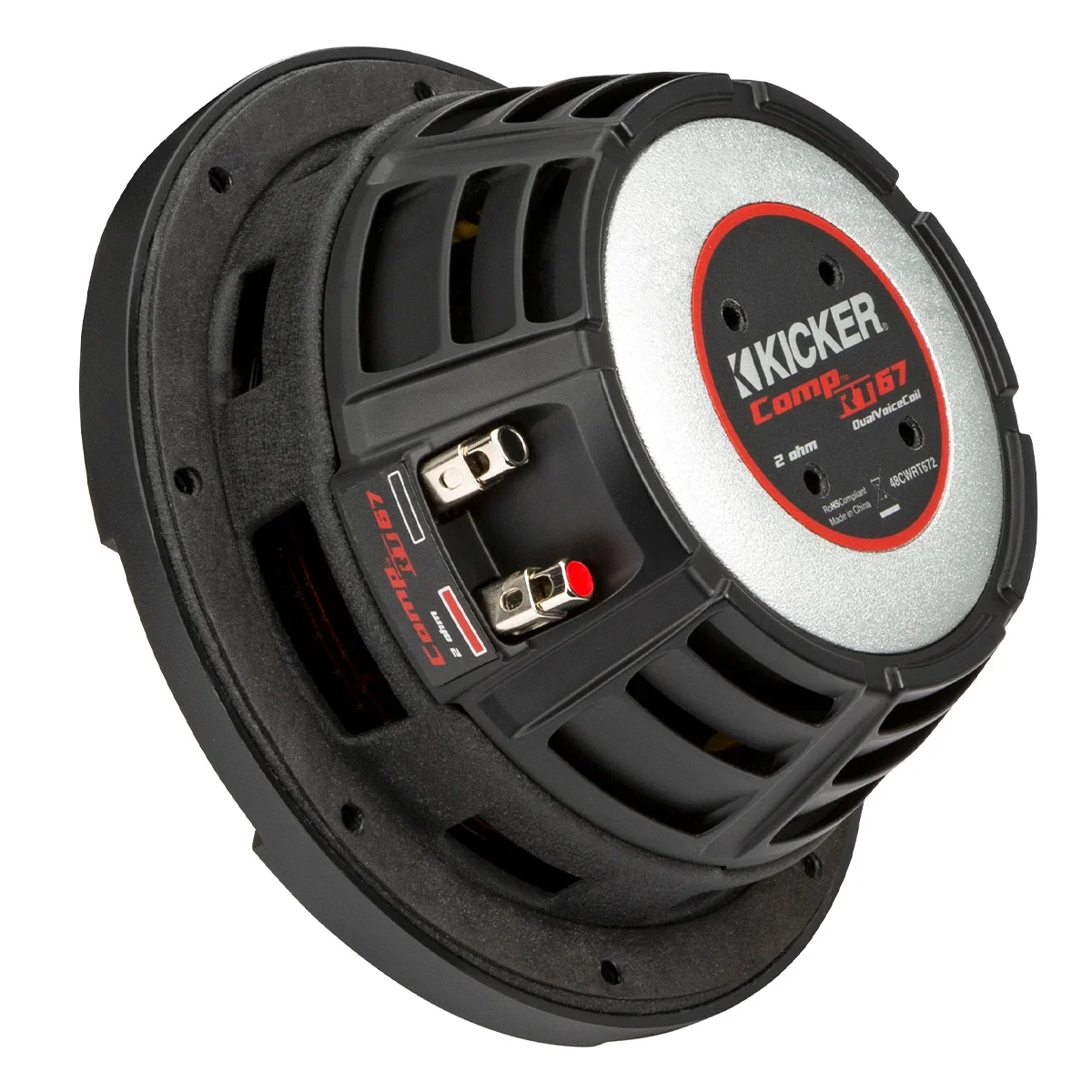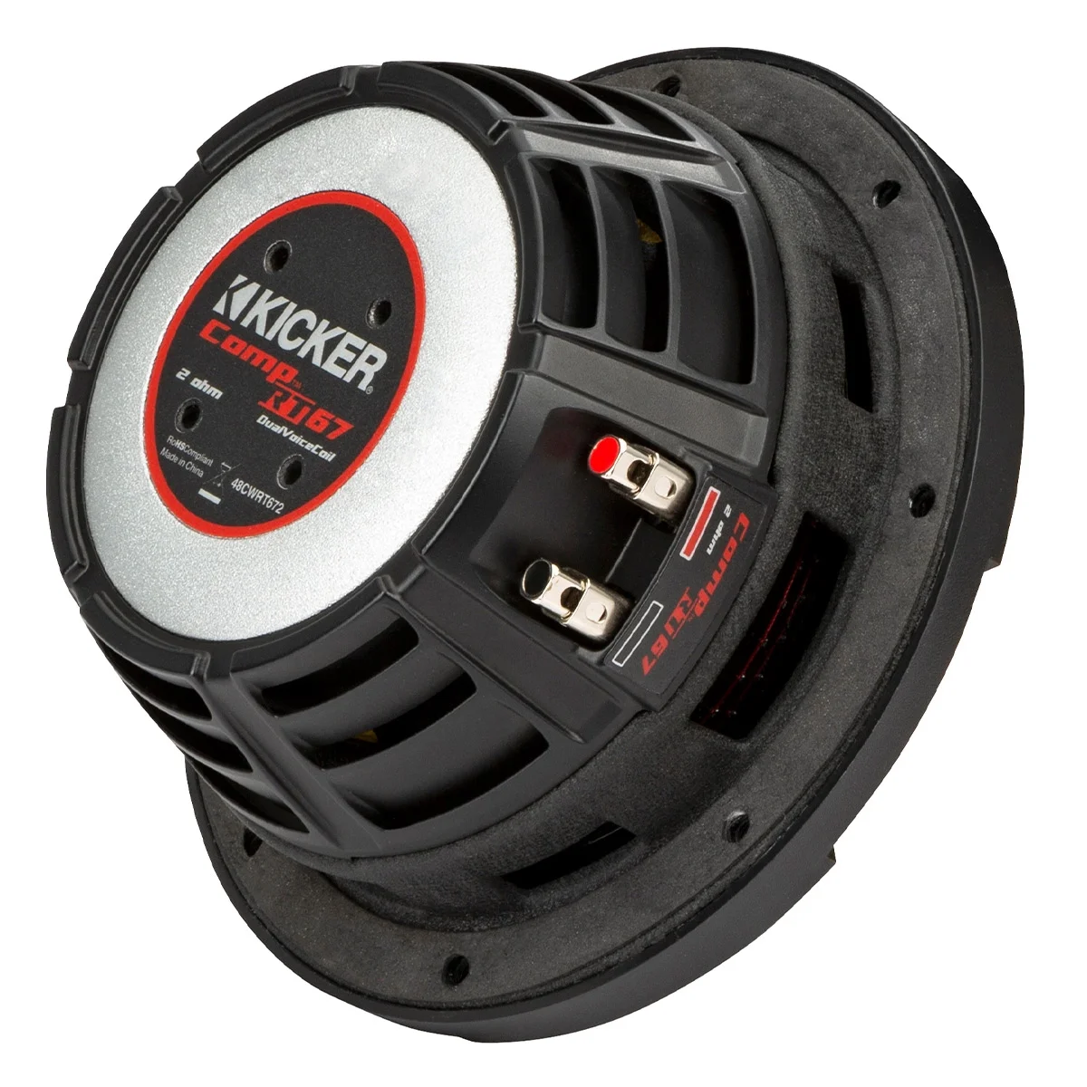 A thick magnet structure reliably delivers huge power handling without affecting mounting depth. The specially designed UniPlate? backplate and solid pole piece serve as a single heat-absorbing unit to provide excellent thermal management. With the custom SoloKon? technology and the CompRT��s unique framework the sub sounds fat �C but keeps it thin! To make their subs even more reliable KICKER engineers
