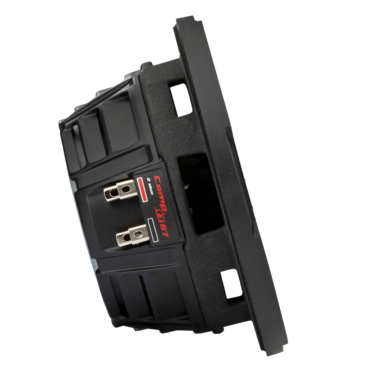 The CompRT 6.75-inch Subwoofer is an all-weather thin subwoofer with a pair of 2-Ohm voice coils. With a mounting depth under four inches and plenty of power handling this go-anywhere sub is as flexible as it is powerful. A UV-resistant cone and surround help make the CompRT sound great wherever the road (or trail) takes you.