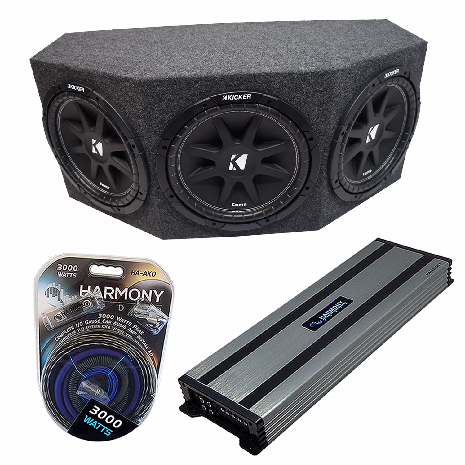 Kicker Comp C12 Triple 12" Subwoofer Loaded 1800 Watt Sub Box Enclosure & Harmony HA-A1500.1 AmpKicker Comp C12 Triple 12" Subwoofer Loaded 1800 Watt Sub Box & HA-A1500.1 Amp