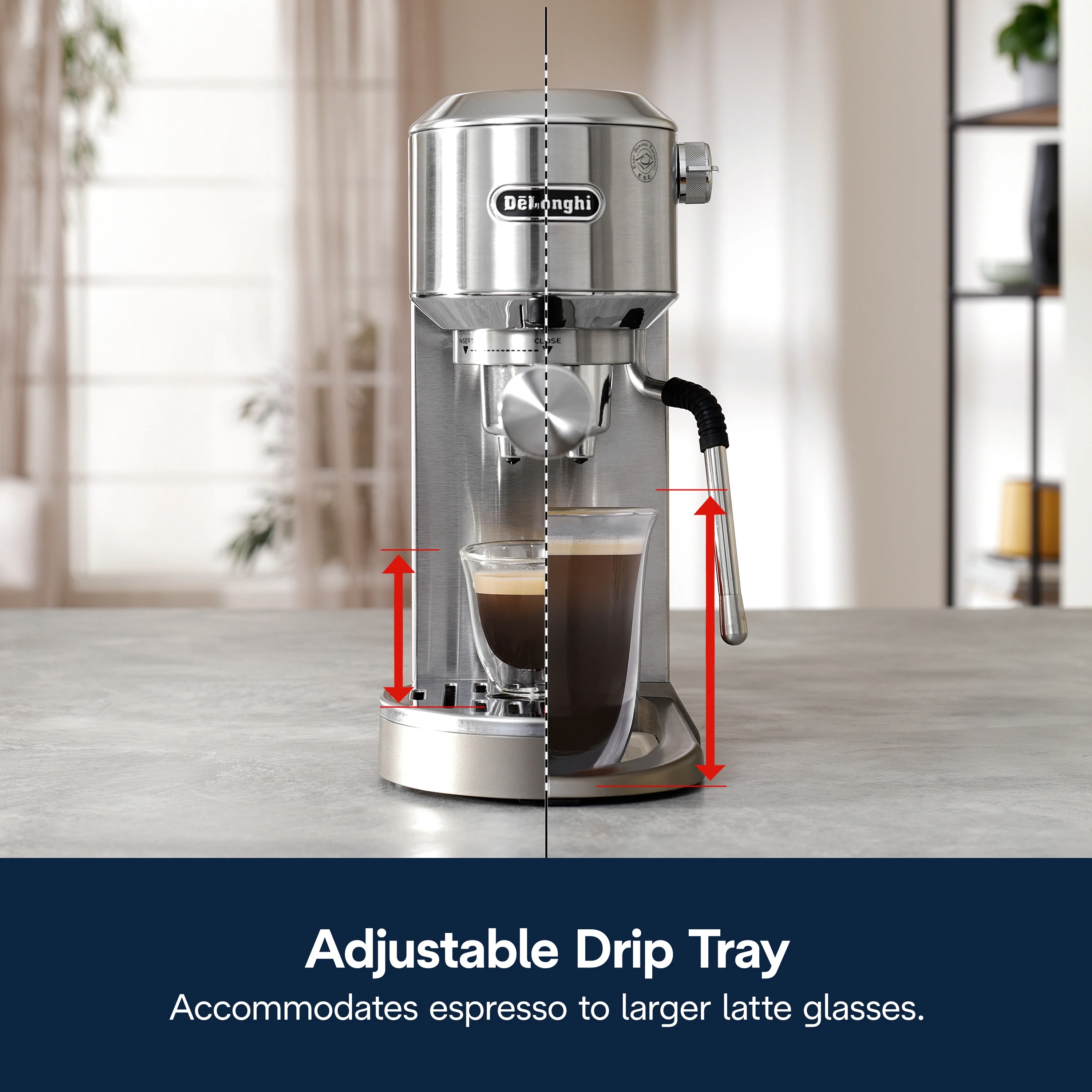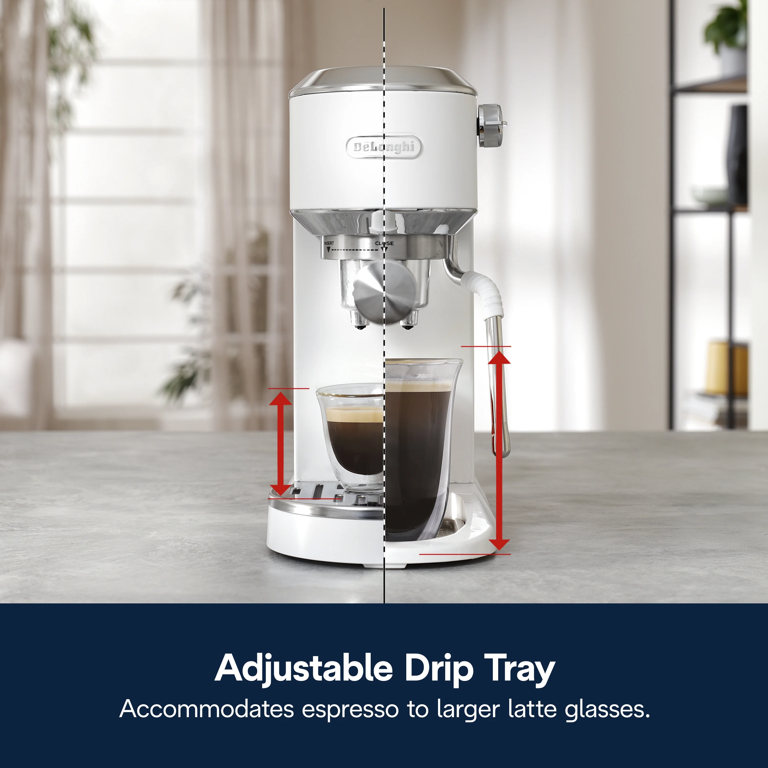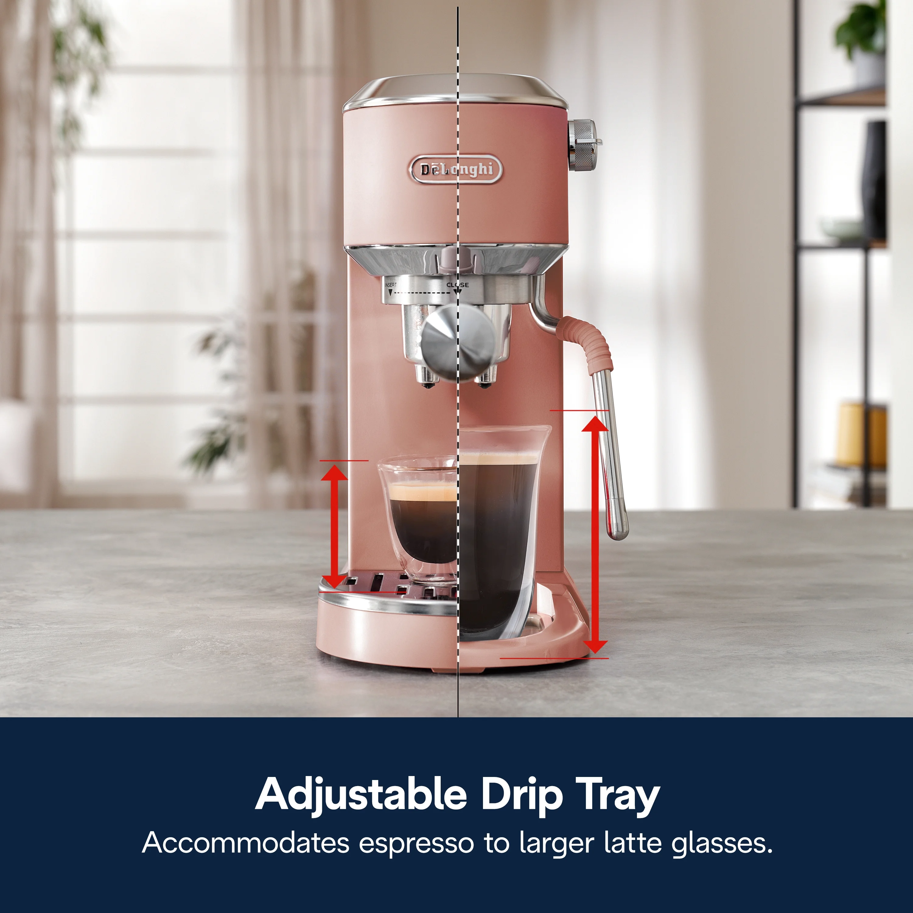 - REMOVABLE DRIP TRAY Fit all your favorite drinkware on the double-height drip tray—from larger latte glasses to single-shot espresso cups.