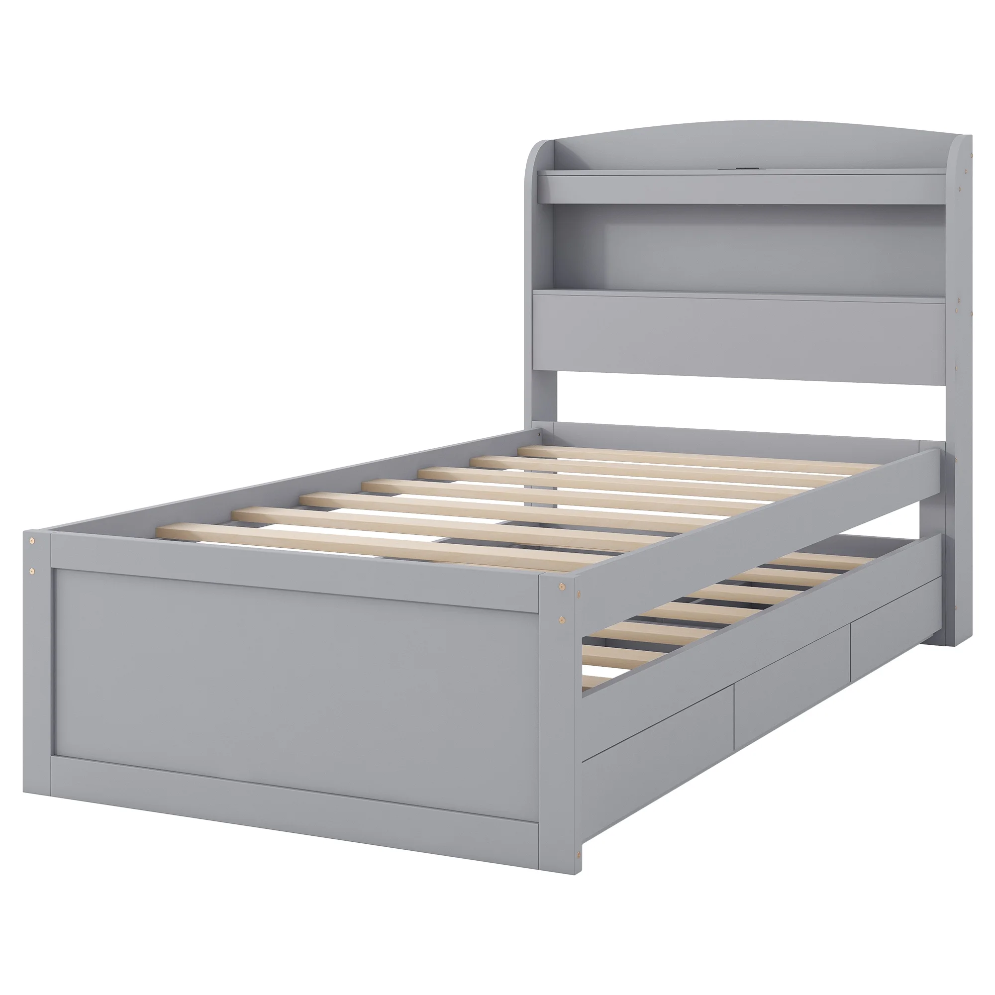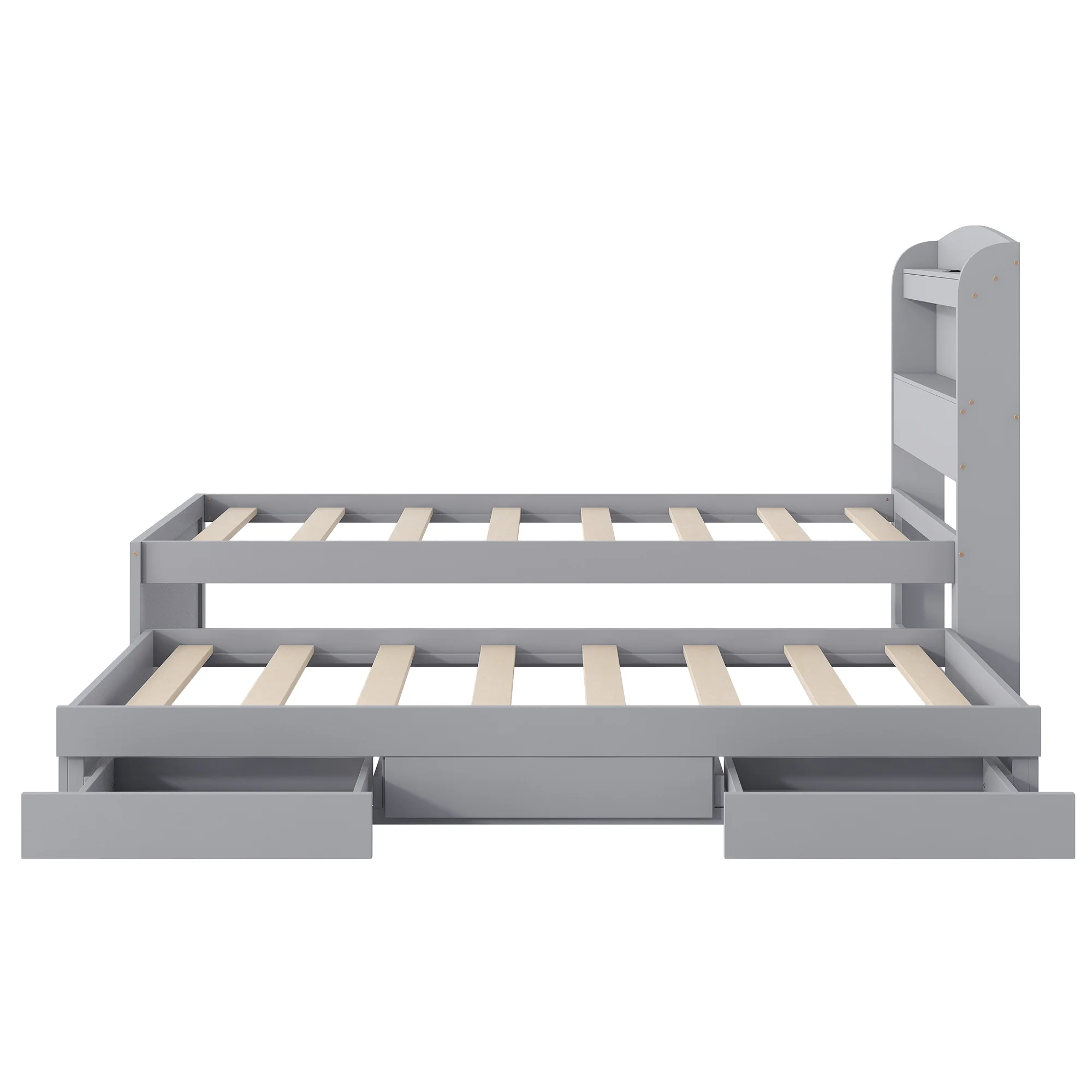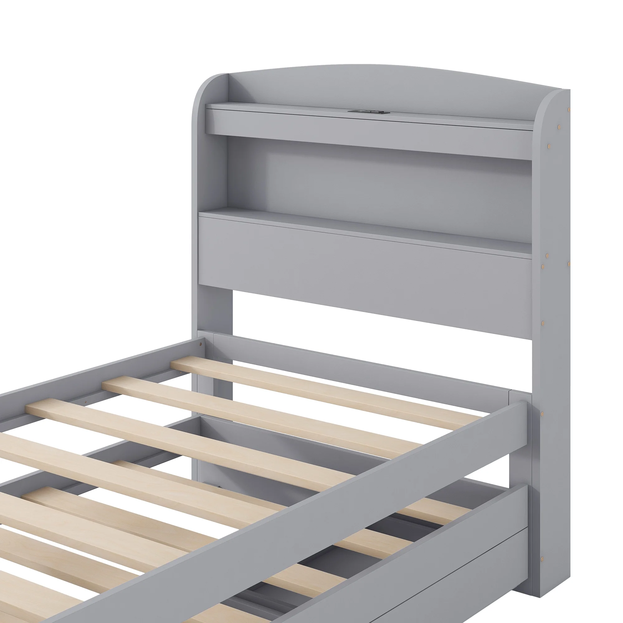 - [Abundant Storage] There are 2 tier storage shelves of the headboard, giving you plenty of storage space. A wealth of storage space for impeccable organization for kids and adults.