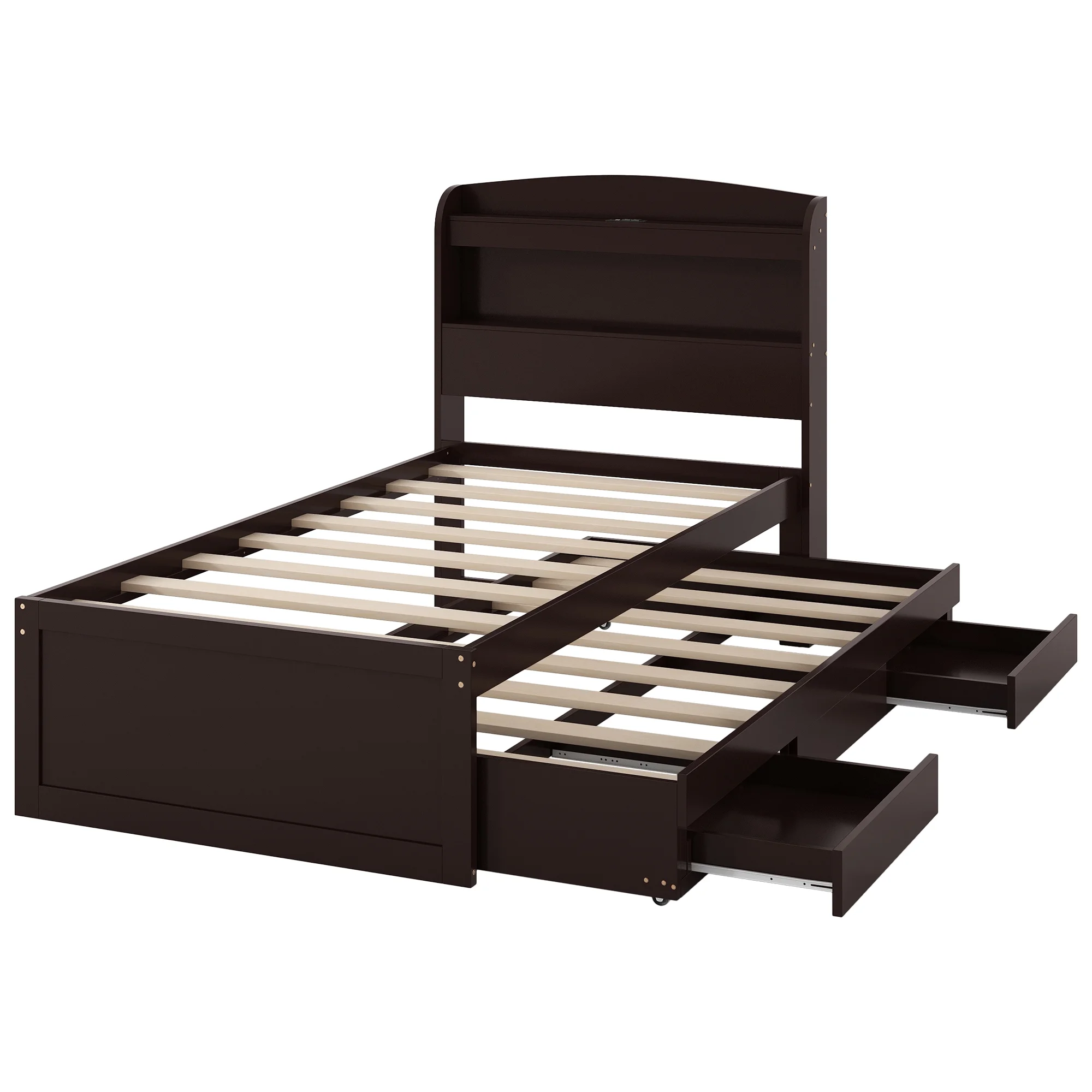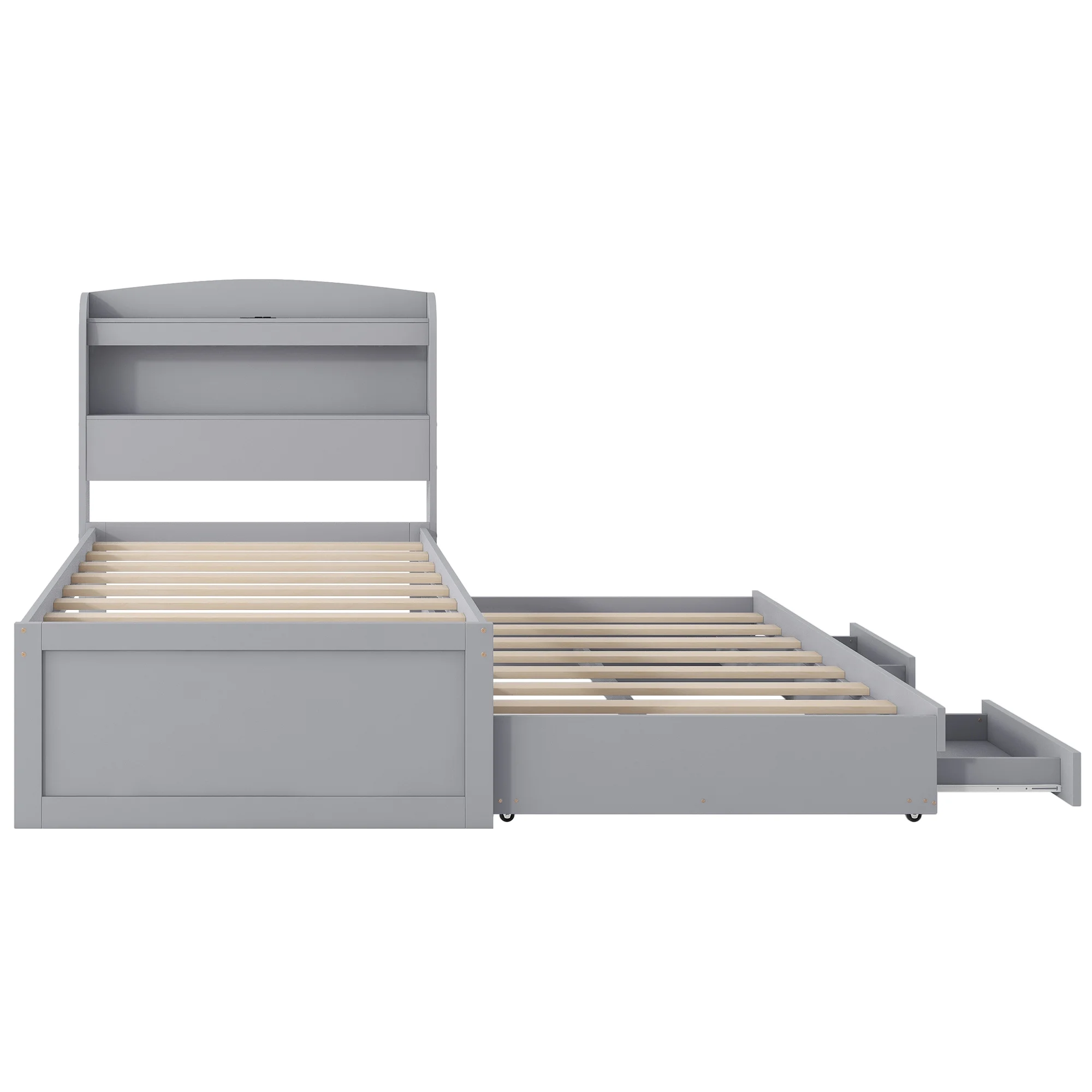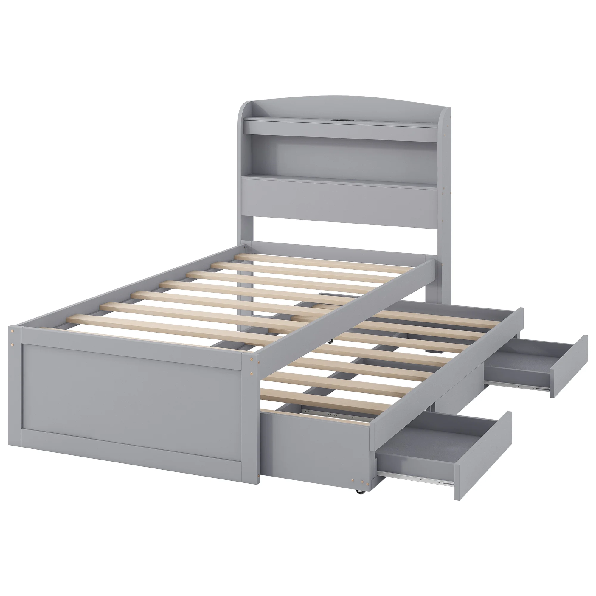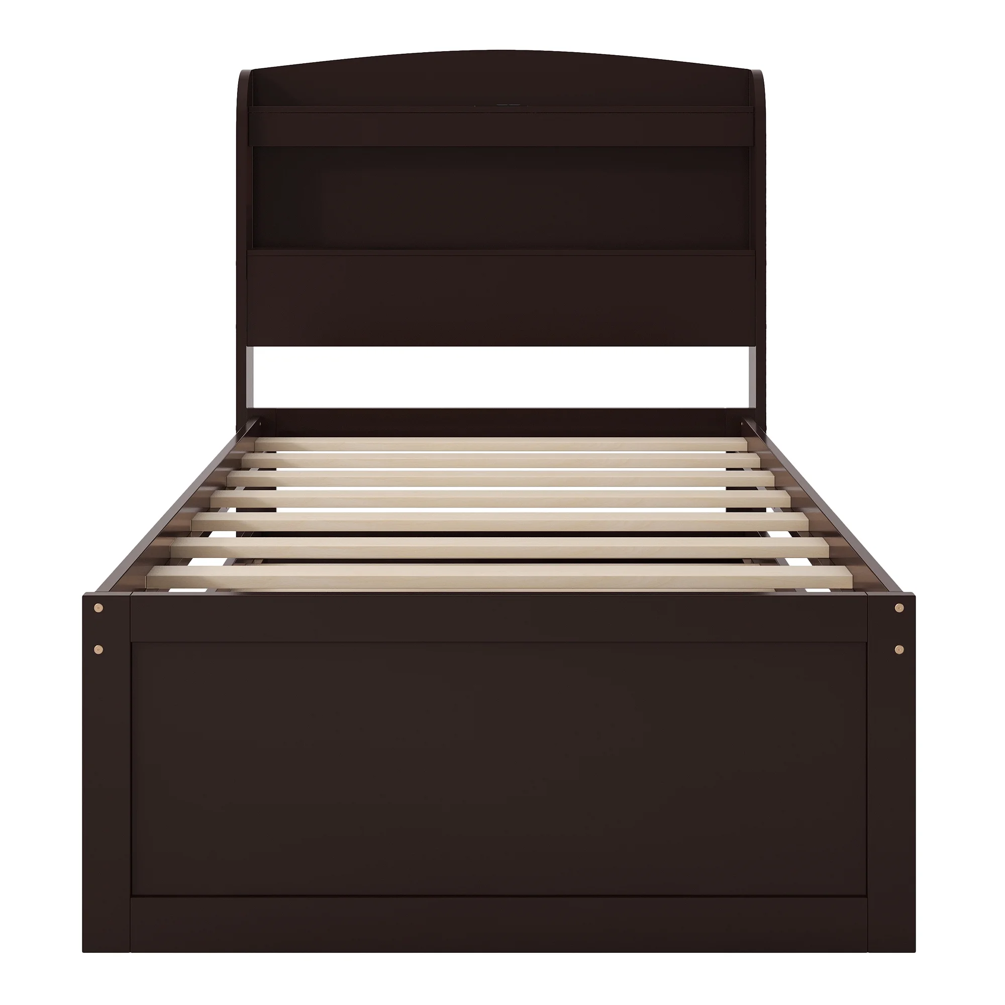- [Abundant Storage] There are 2 tier storage shelves of the headboard, giving you plenty of storage space. A wealth of storage space for impeccable organization for kids and adults.