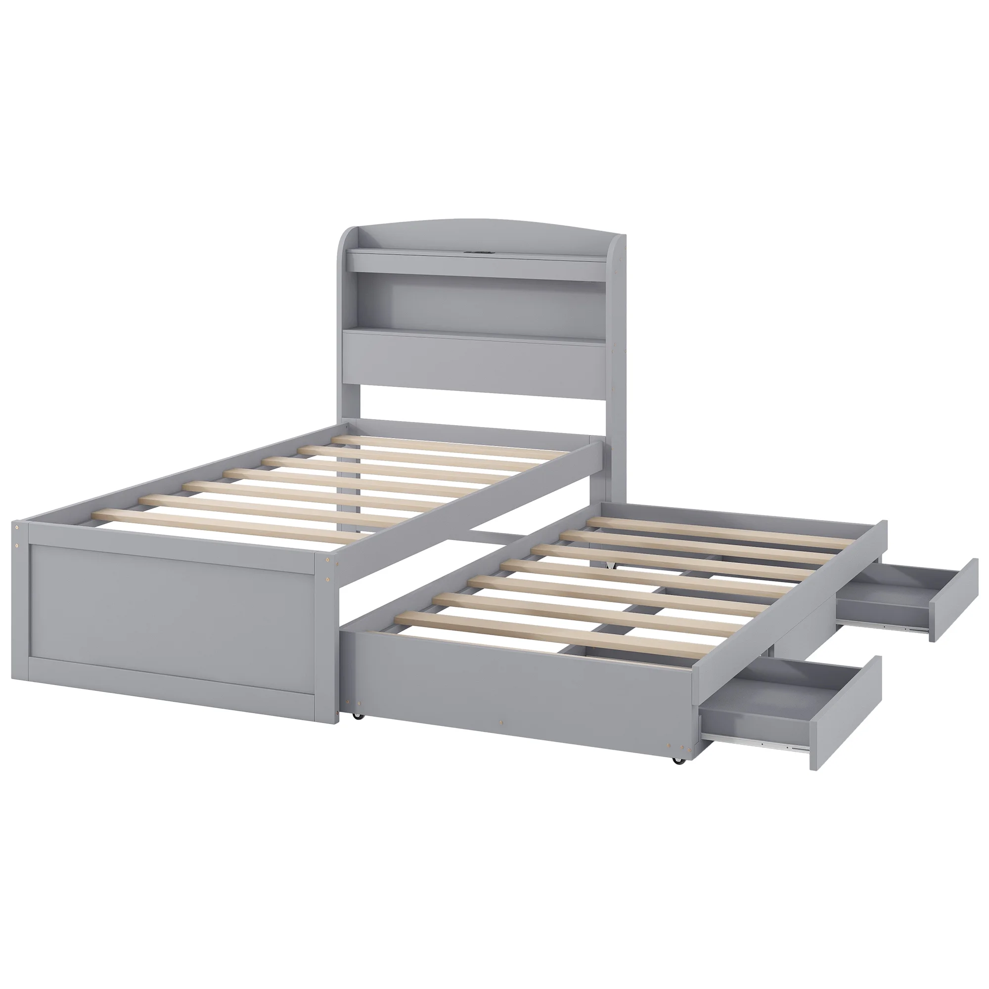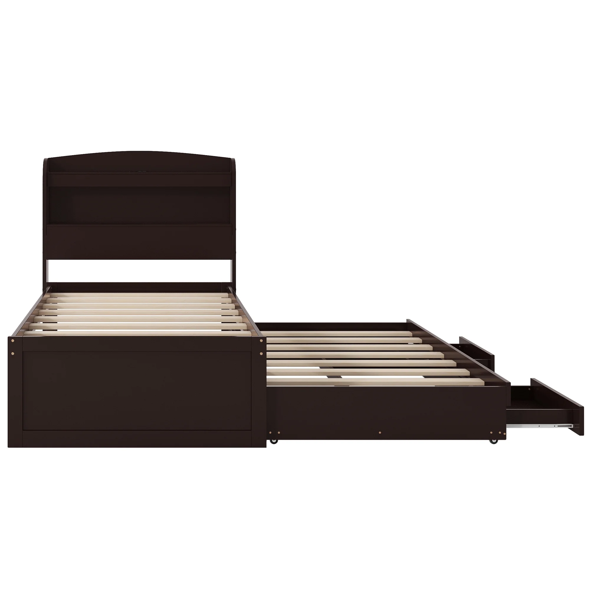 - [Two Drawers and Twin Trundle] The two big drawers and twin size trundle bed efficiently utilizes room space. It can be easily pulled away from the side of the bed, offering extra storage room.