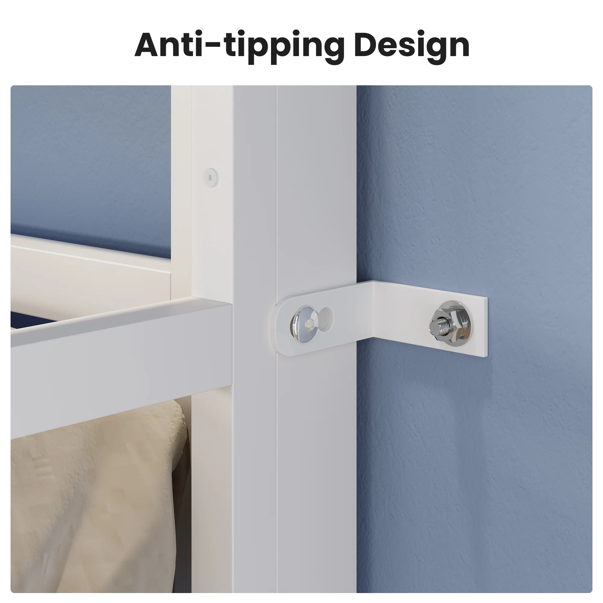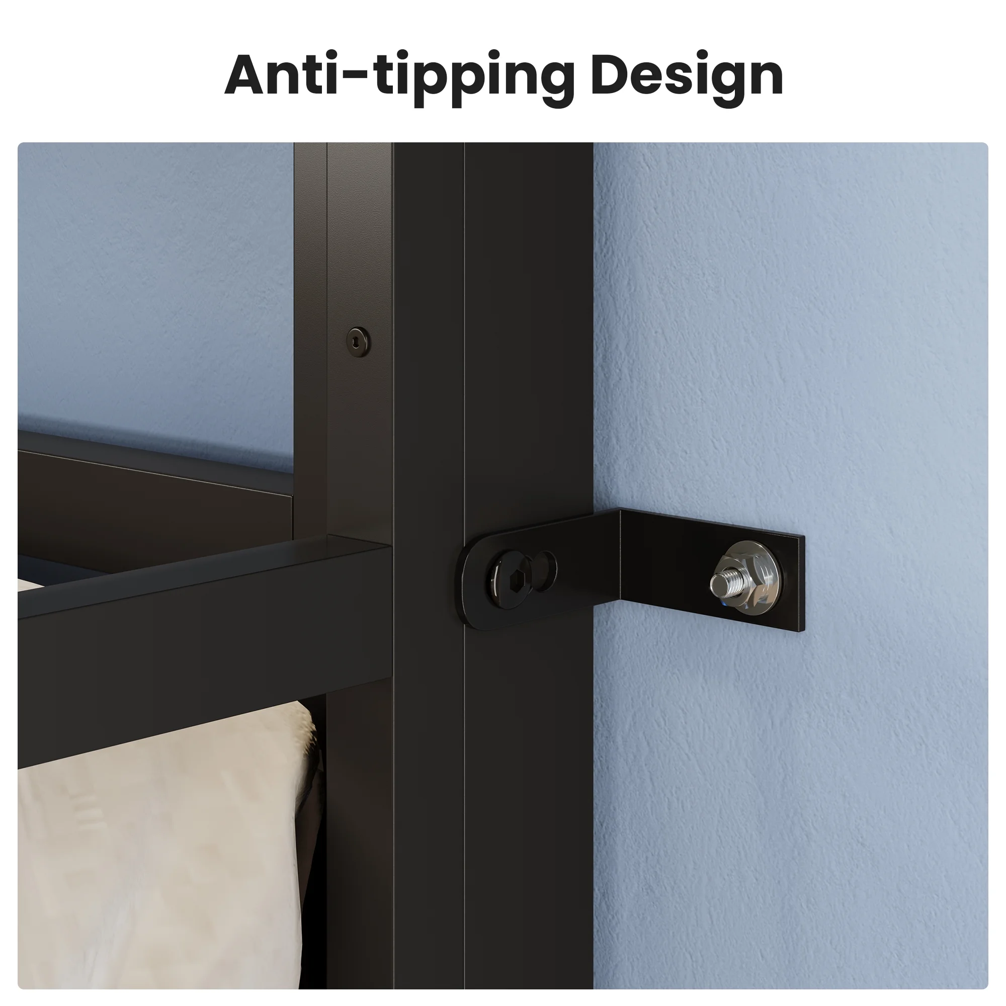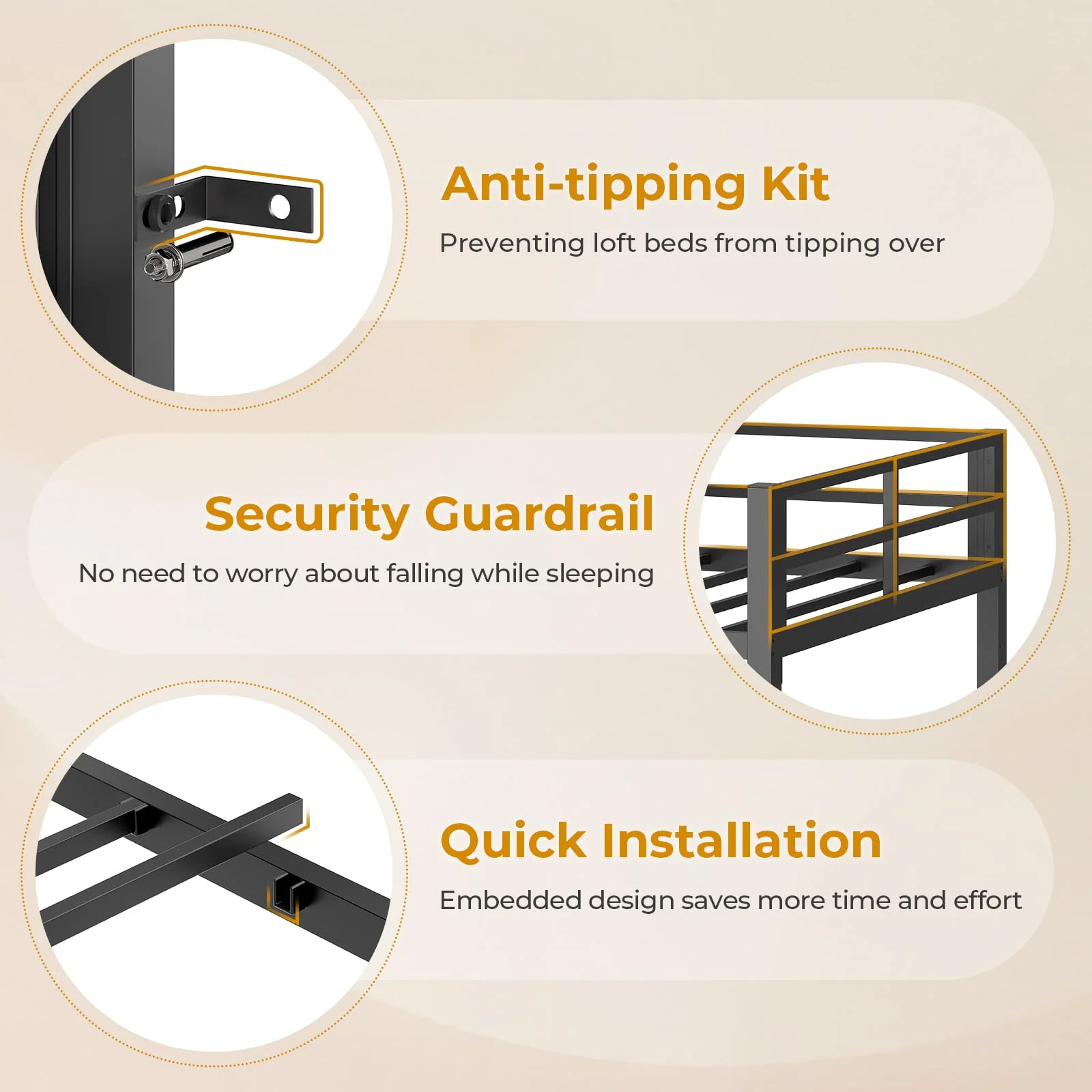 - Our safety loft bed comes with a full-length 13.1" high guardrail on the upper bunk to ensure that sleepers are always protected. This loft bed comes with an anti-tip device for extra stability, ensuring it stays firmly in place. Whether it is for your children or guests, you can rest assured that safety is our top priority