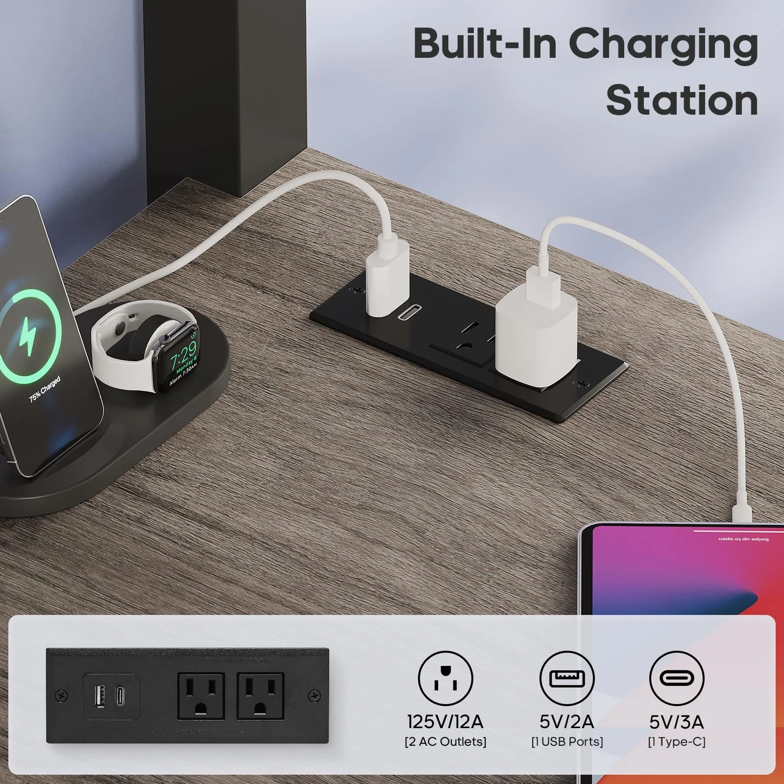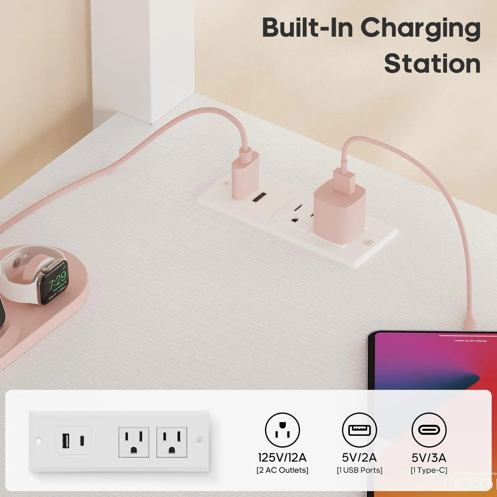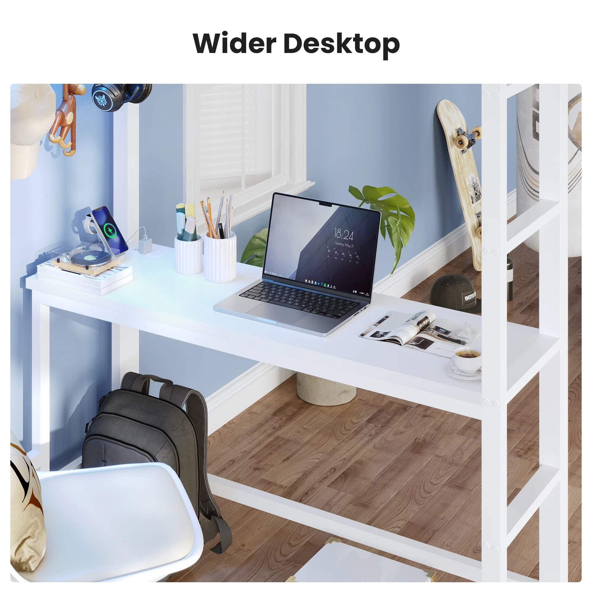 - This loft bed comes with a 39"L * 14.2"W desk for work or study, you can turn the space under the bed into a workstation or reading corner, the built-in charging station in front of the desk includes 2 sockets and 1 USB port and 1 Type-C, convenient for charging your mobile phone, tablet, computer or gaming device