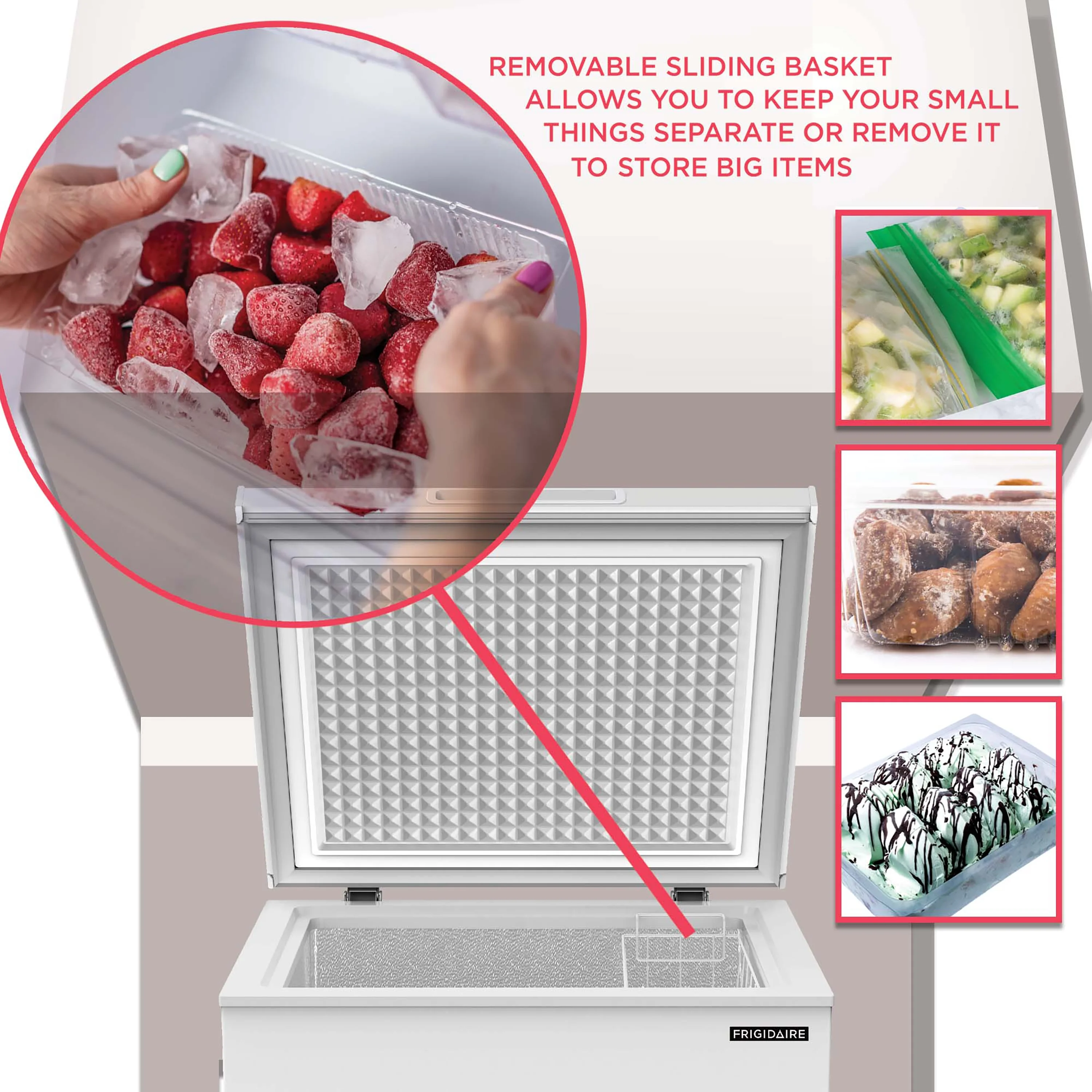 - 5.0 cu. ft. capacity holds all of your family's favorite frozen foods and treats.