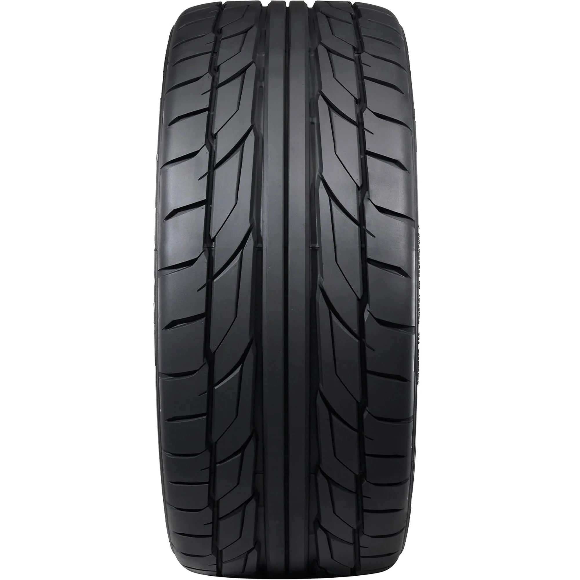 The Nitto NT555 G2 is an ultra-high performance summer tire designed for drivers of modern high-performance vehicles, engineered for increased traction, handling, and wet-braking capabilities. Its cornering performance is enhanced by large, tapered tread blocks that increase stability and grip. For straight-line stability and improved dry traction, the design features twin center ribs. The tire's high stiffness and silica compound, along with reinforced shoulder treadblocks, further improve handling in both wet and dry conditions, while a large circumferential groove aids in hydroplaning resistance.