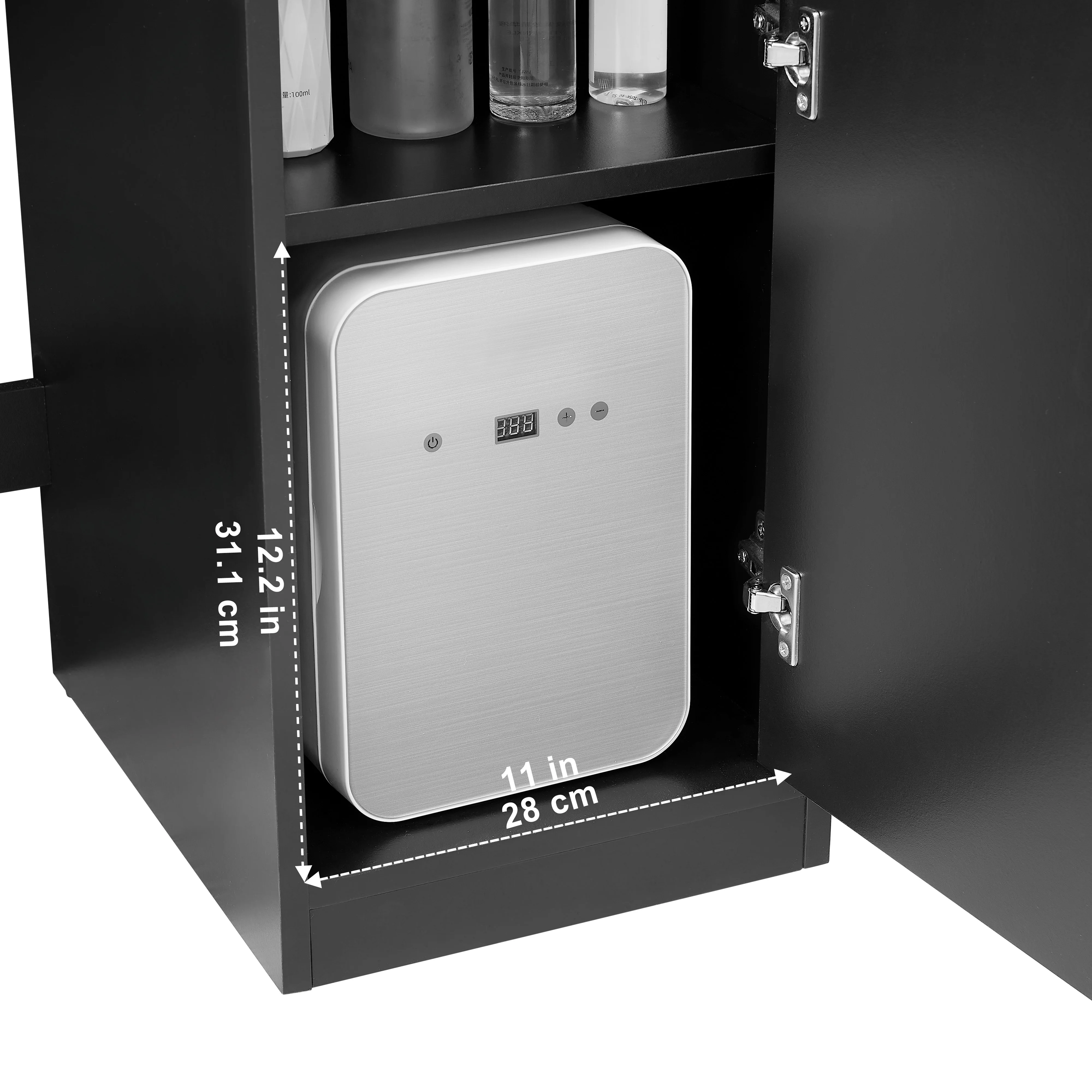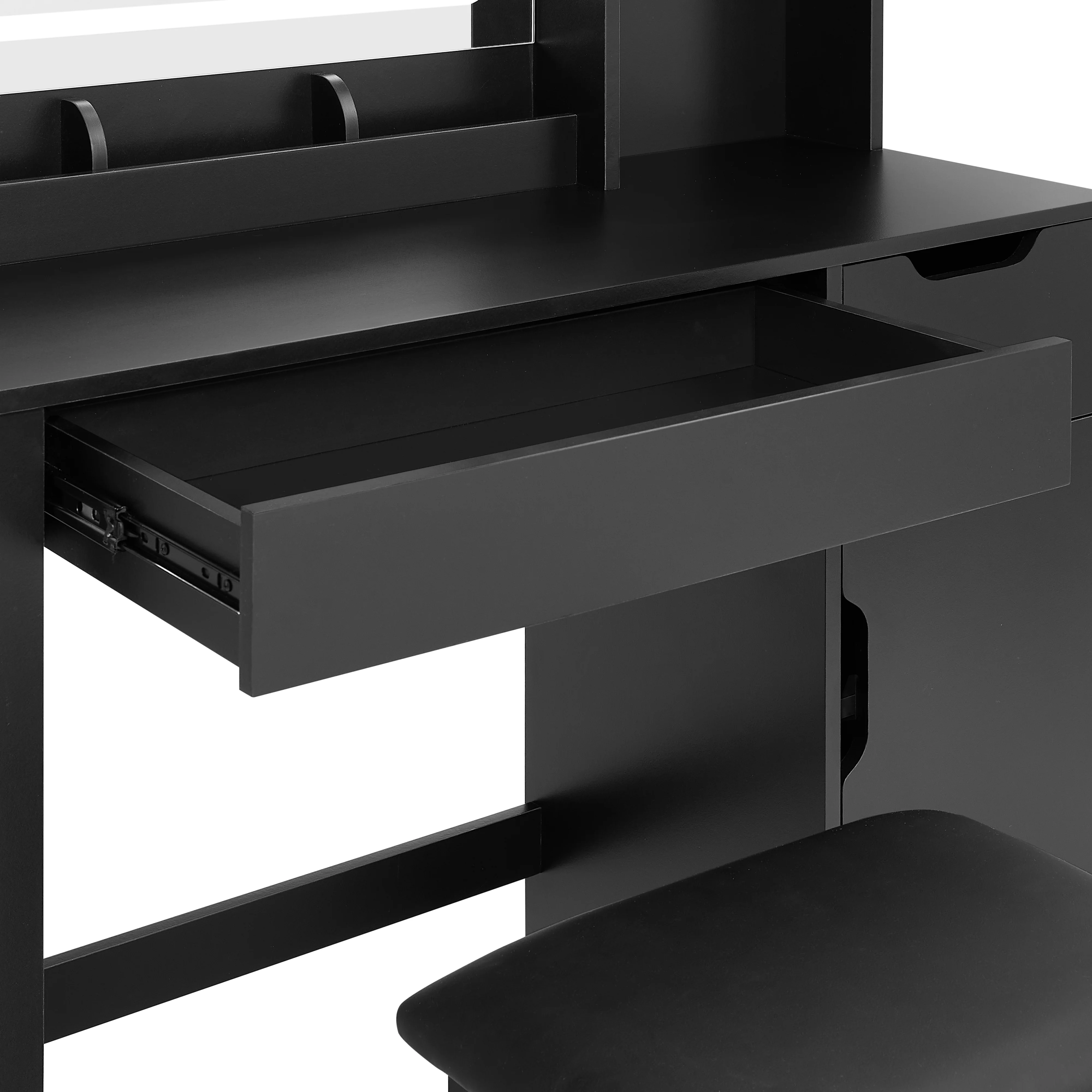 - Ample storage capacity- This Mainstays Get Ready with Me Deluxe Vanity features a spacious tabletop and three small turnable drawers to keep small jewelry or accessories. While open Shelves on table top are a good place to showcase your picture frames, jewelry, flowers and more. Tiered storage in the cabinet makes items easy to find. Built with a drawer, a open shelf storage, and a cabinet, staying organized has never been so easy.