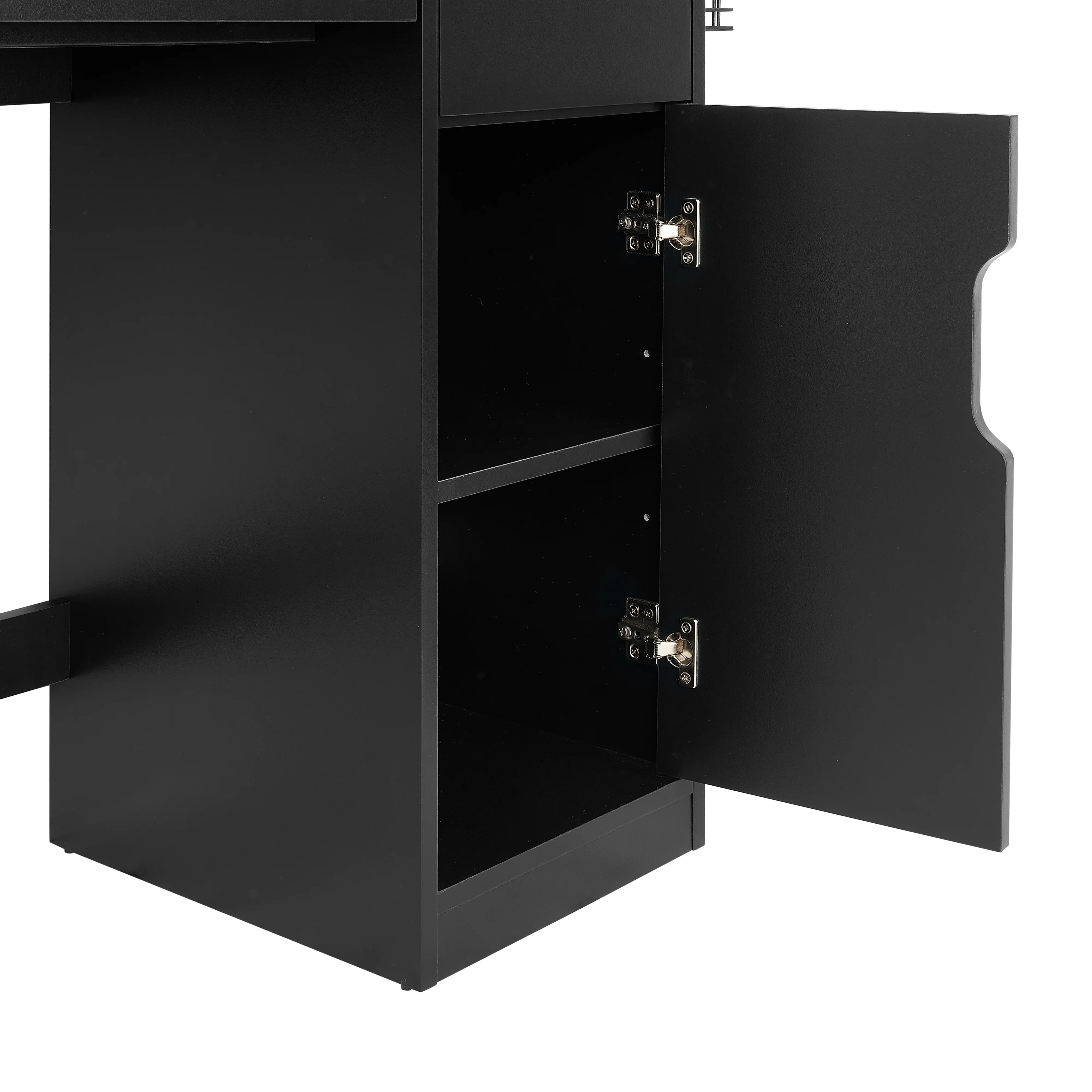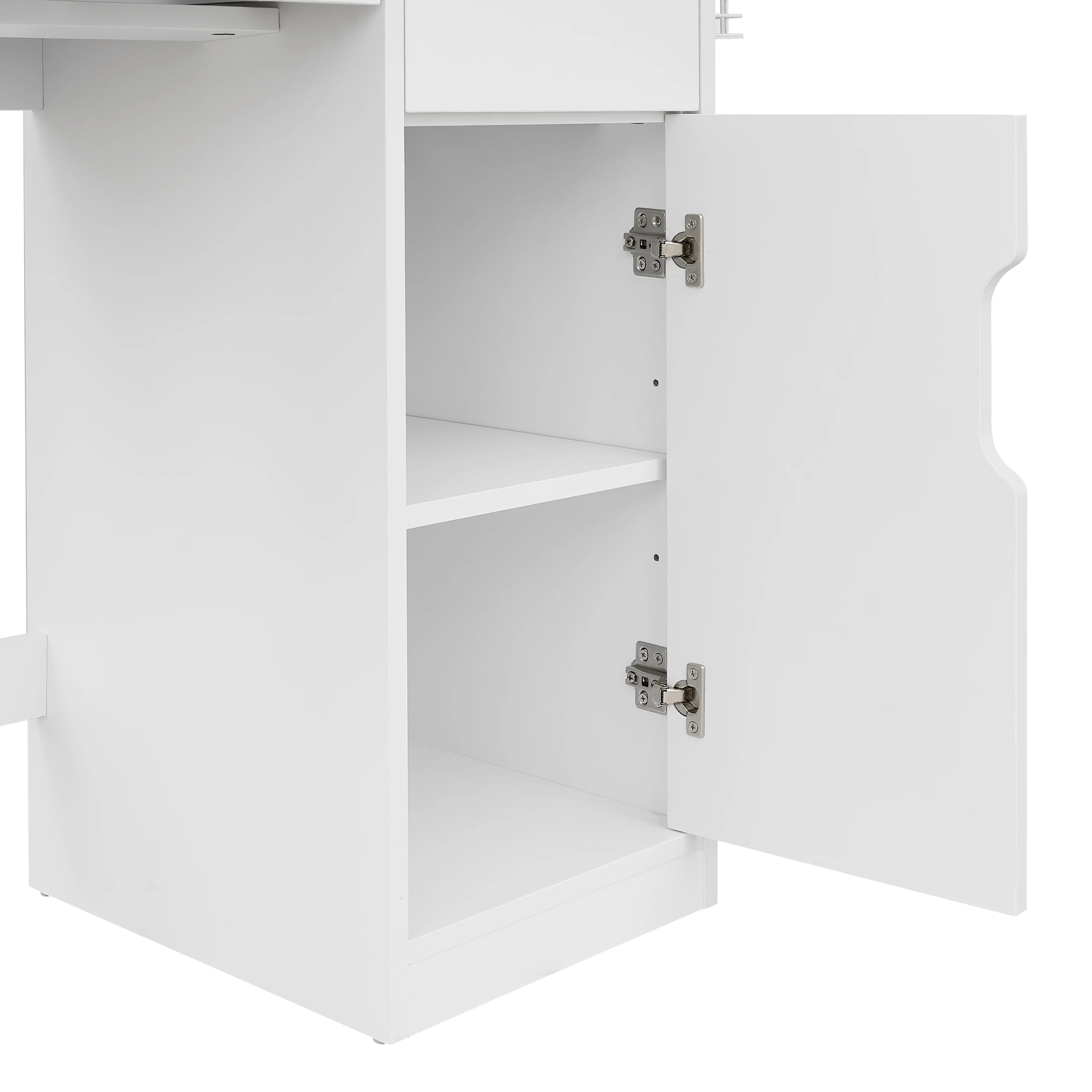 - Right-Side Storage: Shelves and cabinet are conveniently located on the right side for easy access.