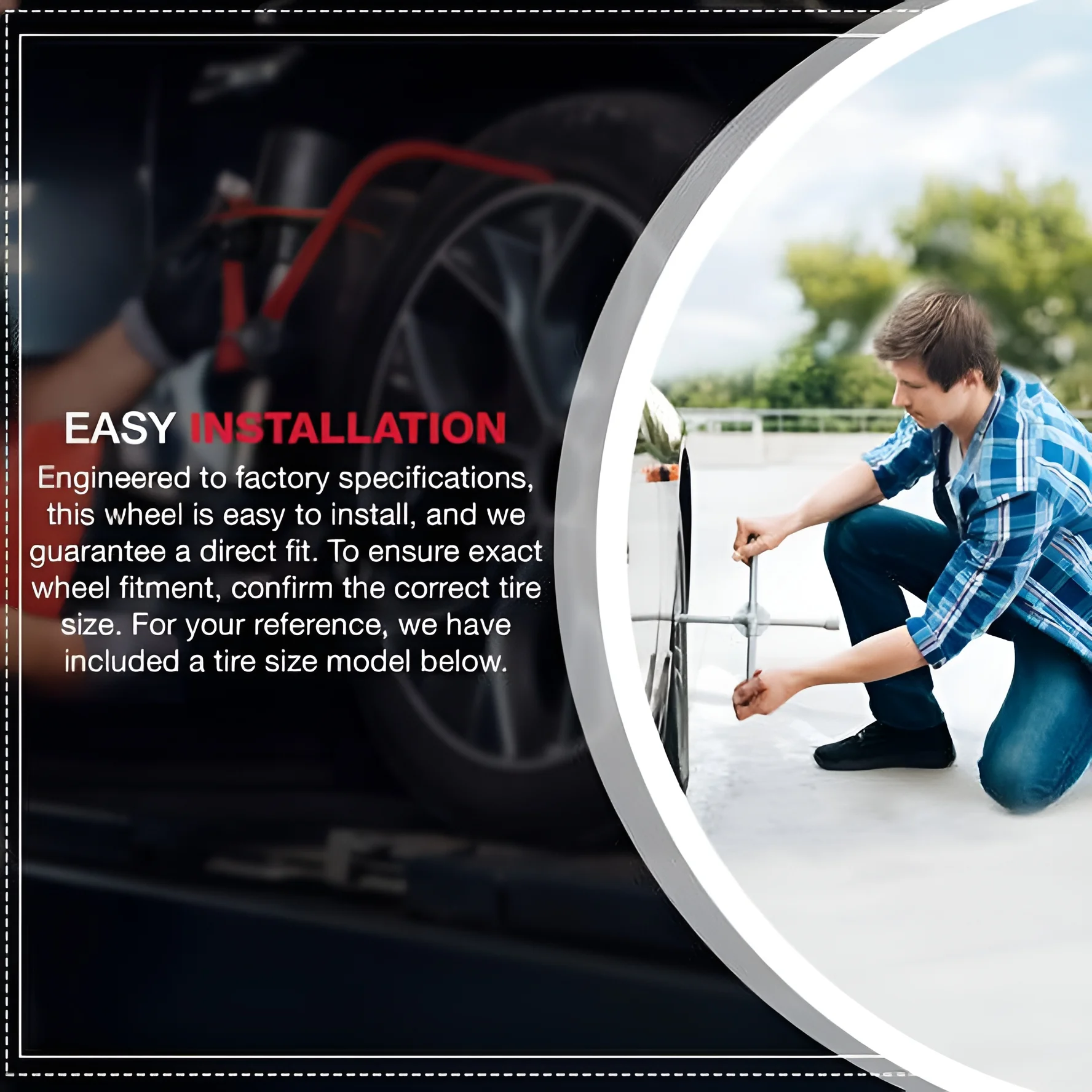 - EASY INSTALLATION - Engineered to factory specifications, this wheel is easy to install.To ensure exact wheel fitment, confirm the correct tire size. For your reference, we have included a tire size model below.