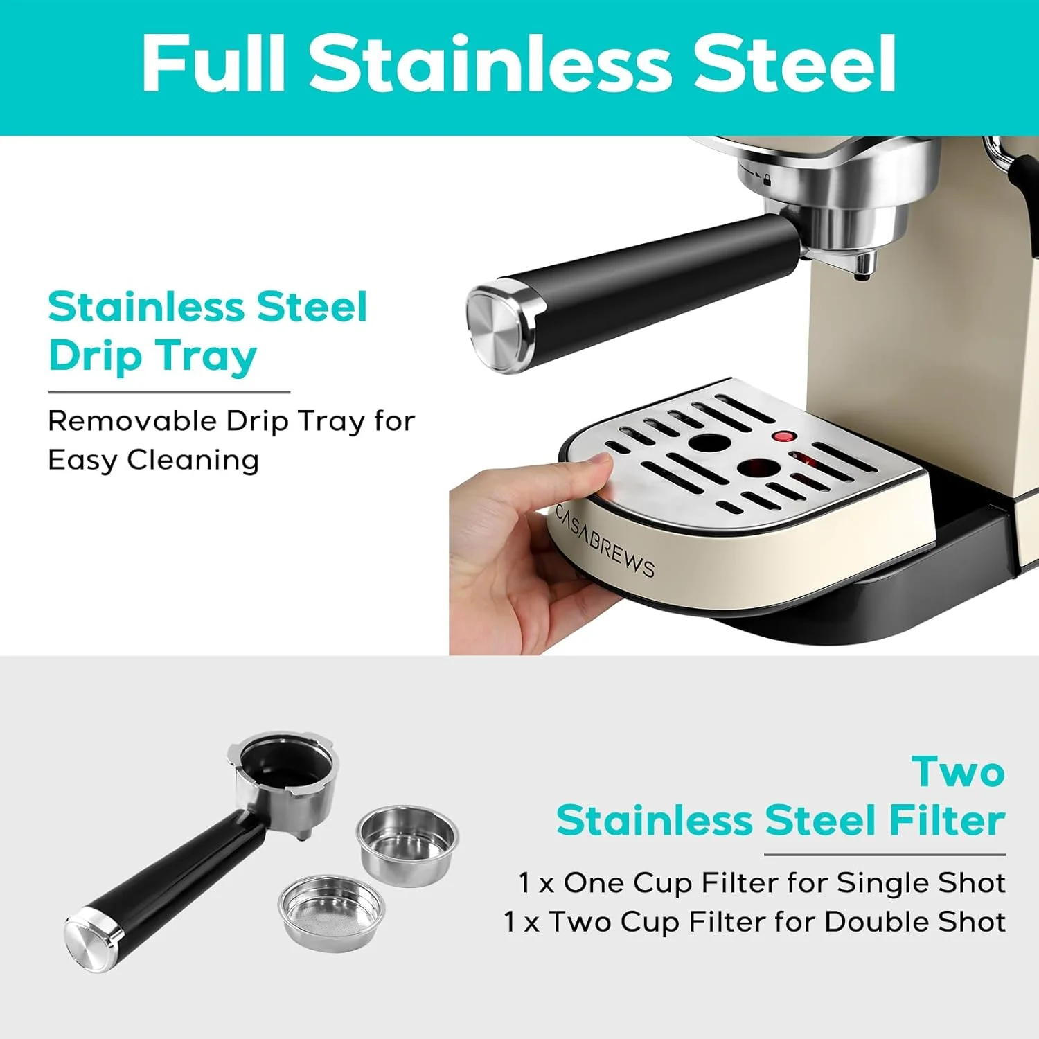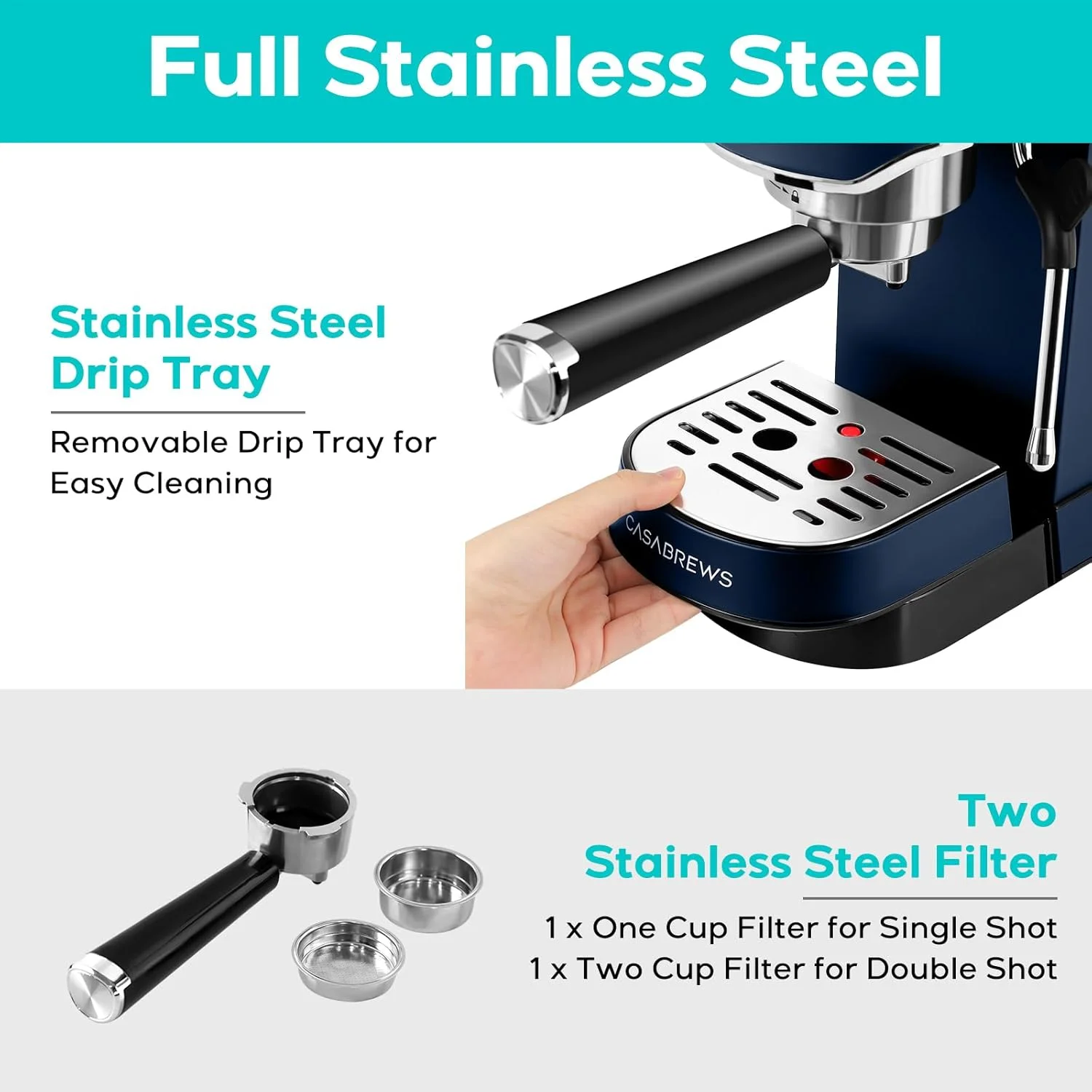 - �?BE YOUR HOME BARISTA: Create your own delicious espresso at home with the CASABREWS espresso maker. Combining professional capabilities with intuitive usability in an elegant, space-efficient design, it's a perfect fit for any kitchen.
