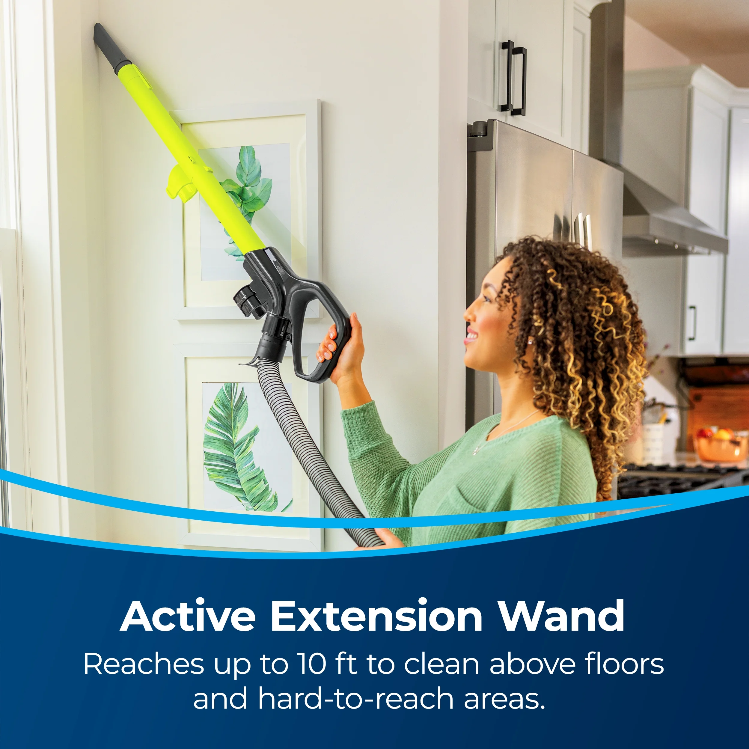 - Active Extension Wand. Clean above floors and hard-to-reach areas in one easy step, with up to 10 ft reach.