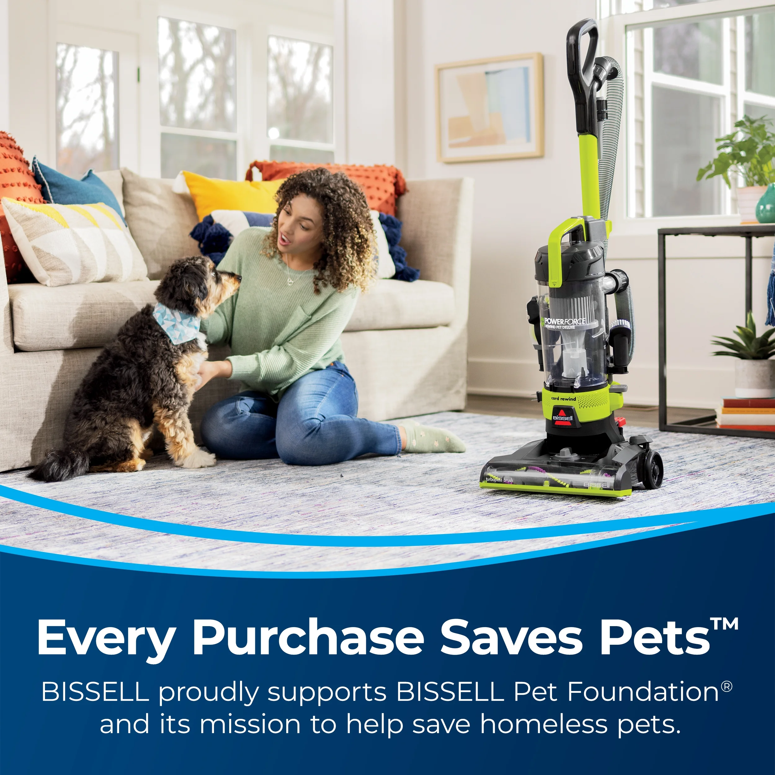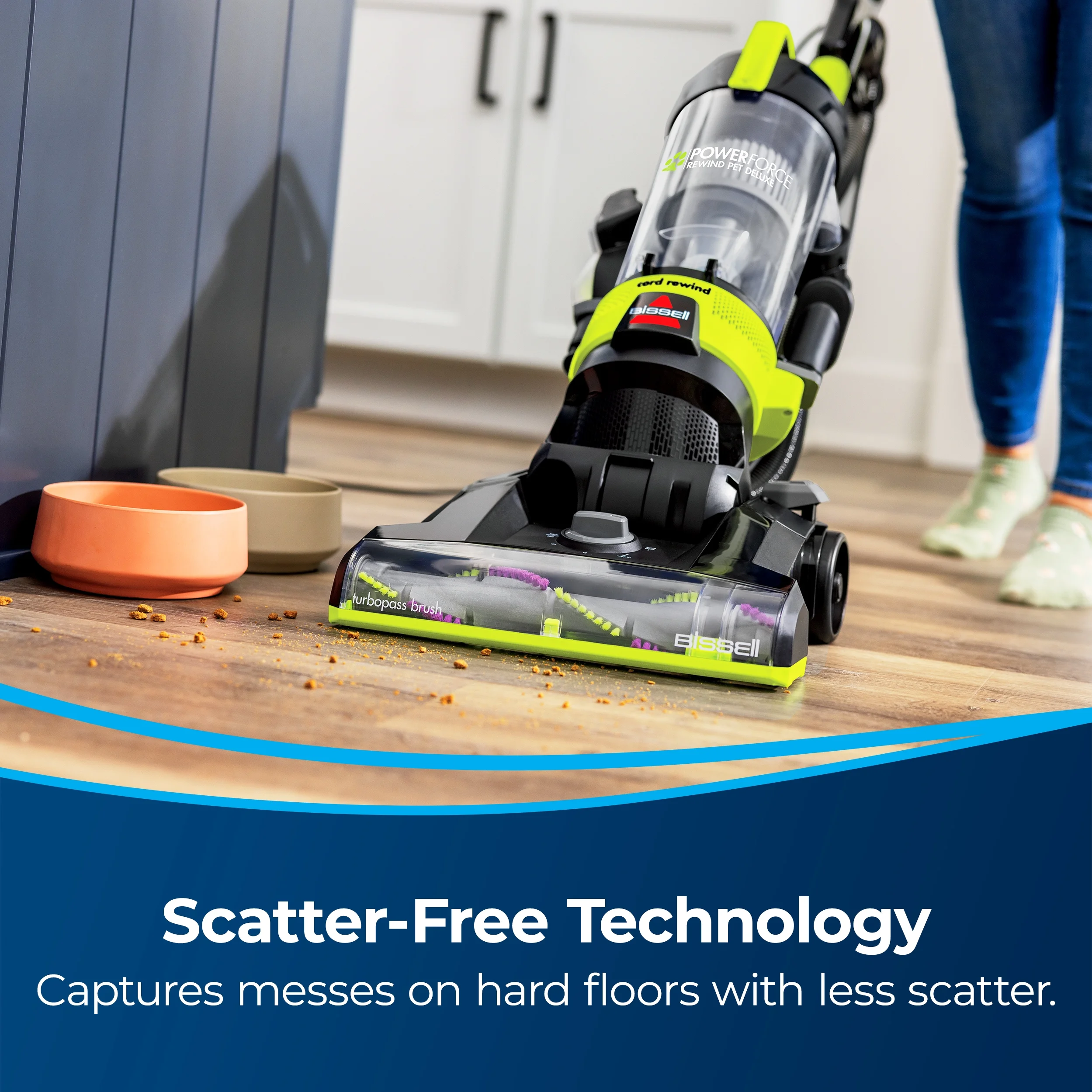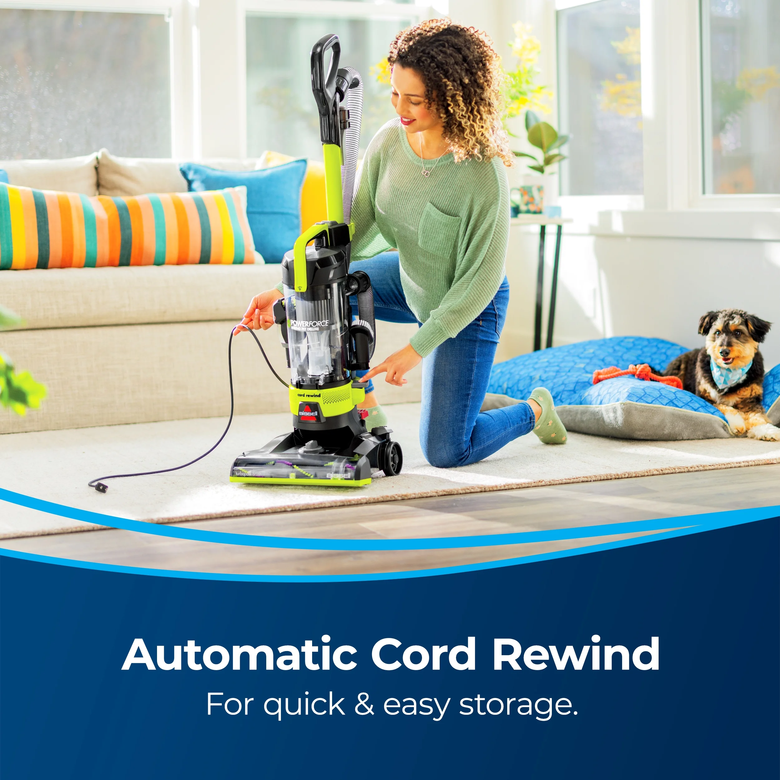 BISSELL Bagless Upright Vacuum, Powerforce Helix Rewind, Pet Deluxe, Live Extension Wand, Scatterfree Tech, Pet Turbobrush, Dusting Brush, Crevice Tool, XL Dust Cup, and Corded Rewind, 3335, Green