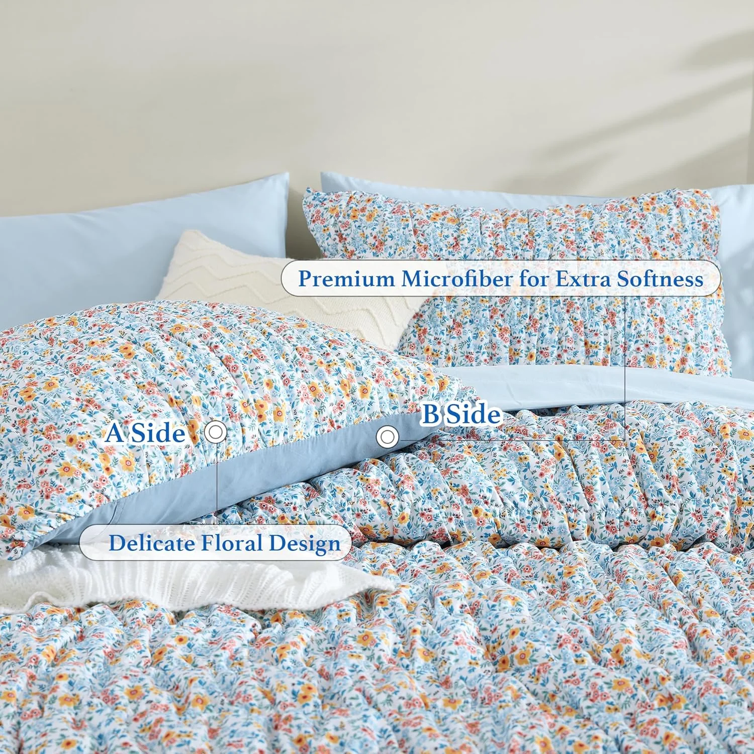 - Unique Design: This queen bedding set features a charming wildflower design, seamlessly blending delicate flowers with cloud like loftys puff texture. Take your bedroom decor to new heights with this stunning puff comforter.