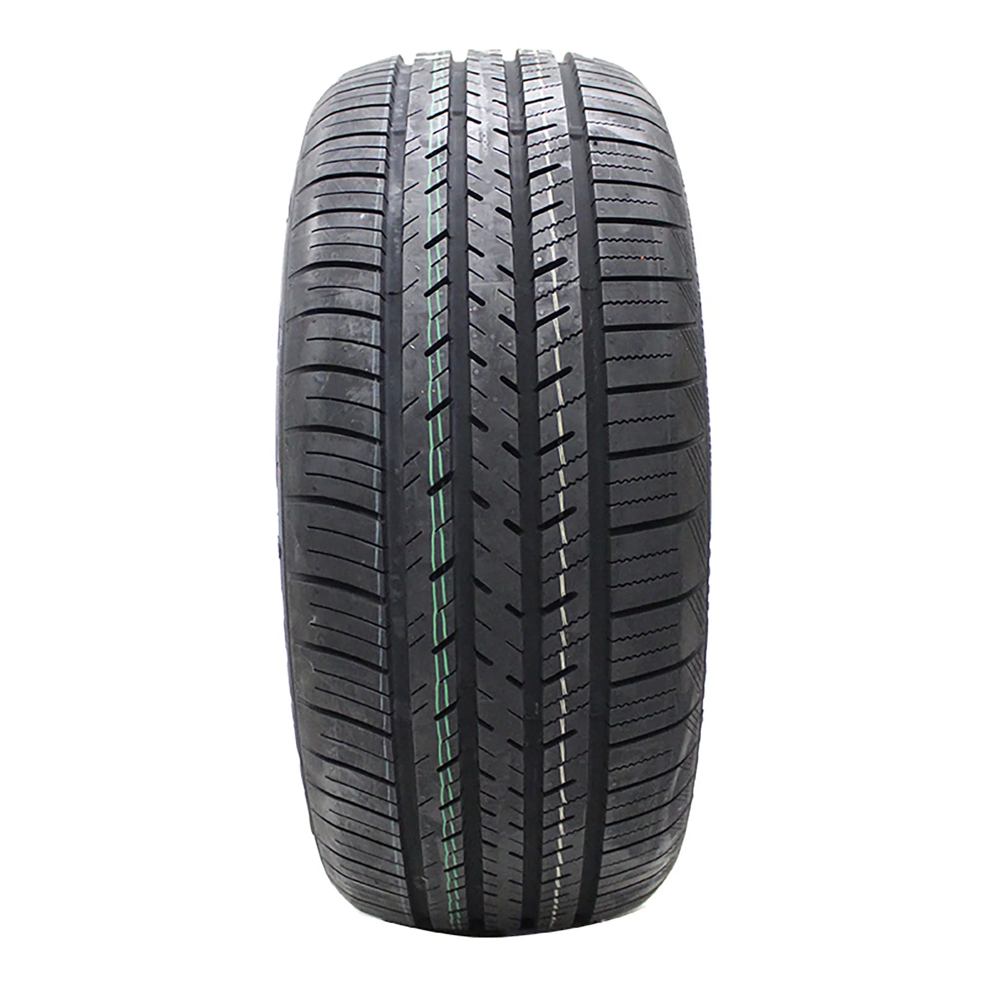 - Dual-zone tread pattern with wet-weather traction pattern at center and dry-weather design at edges allows for consistent performance in wet and dry conditions