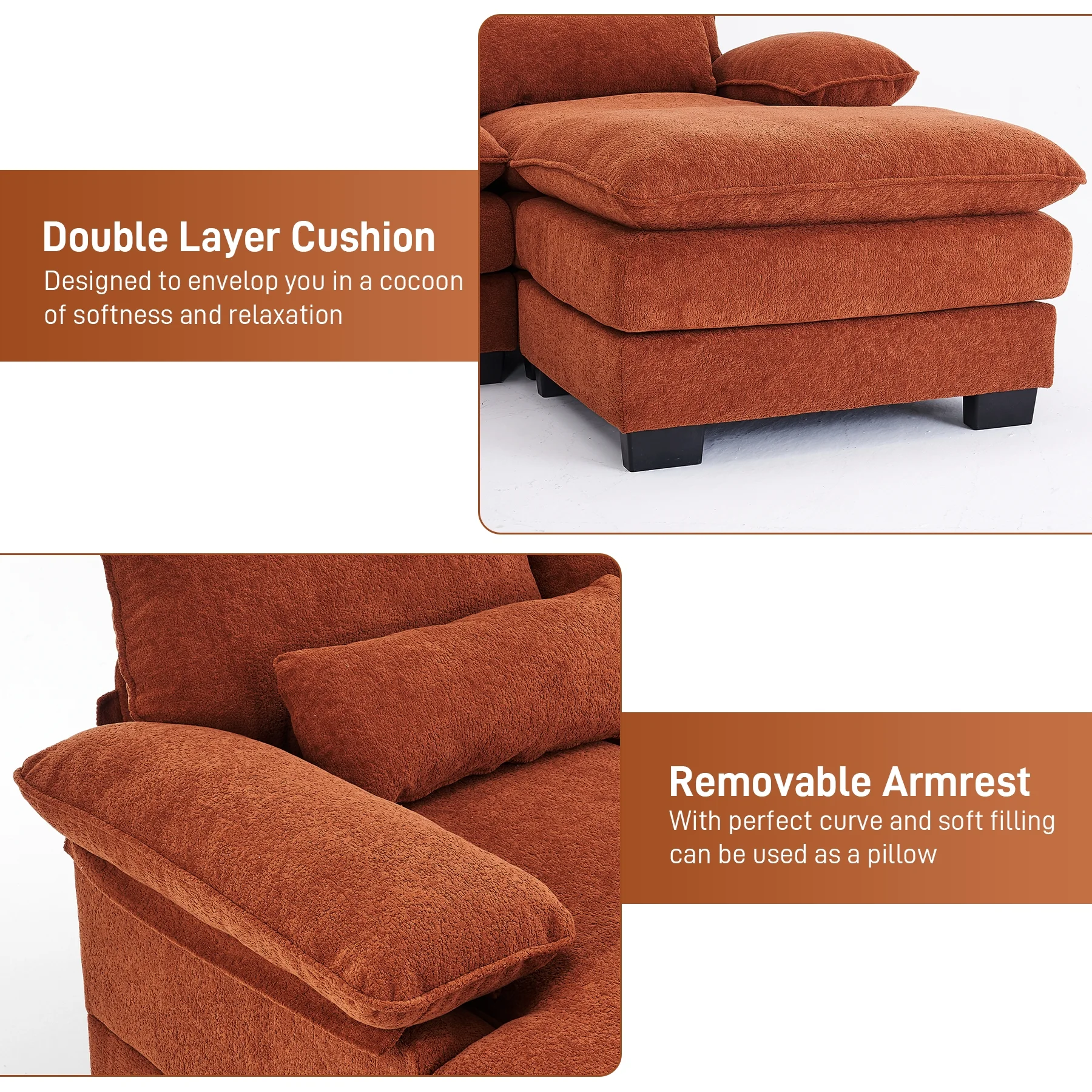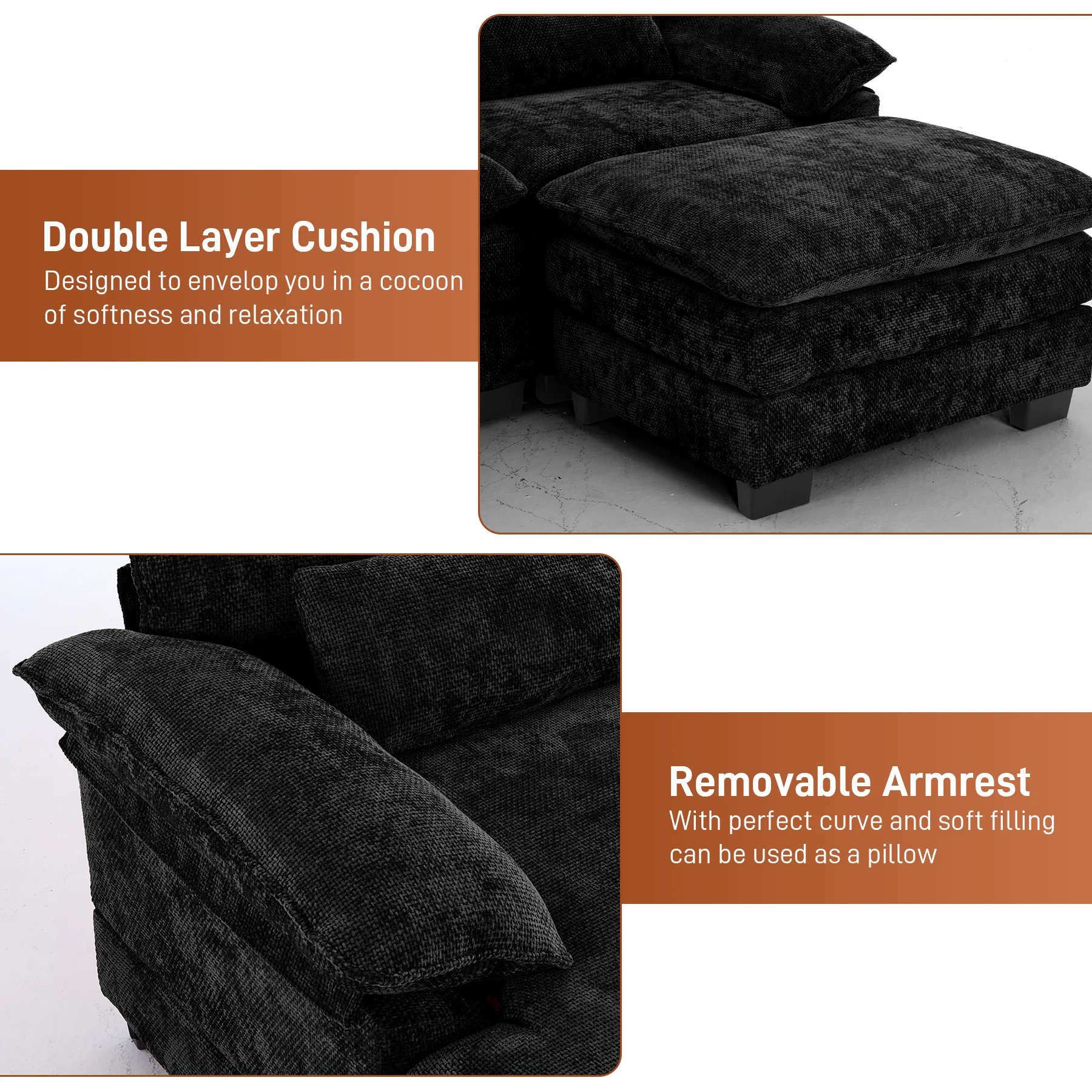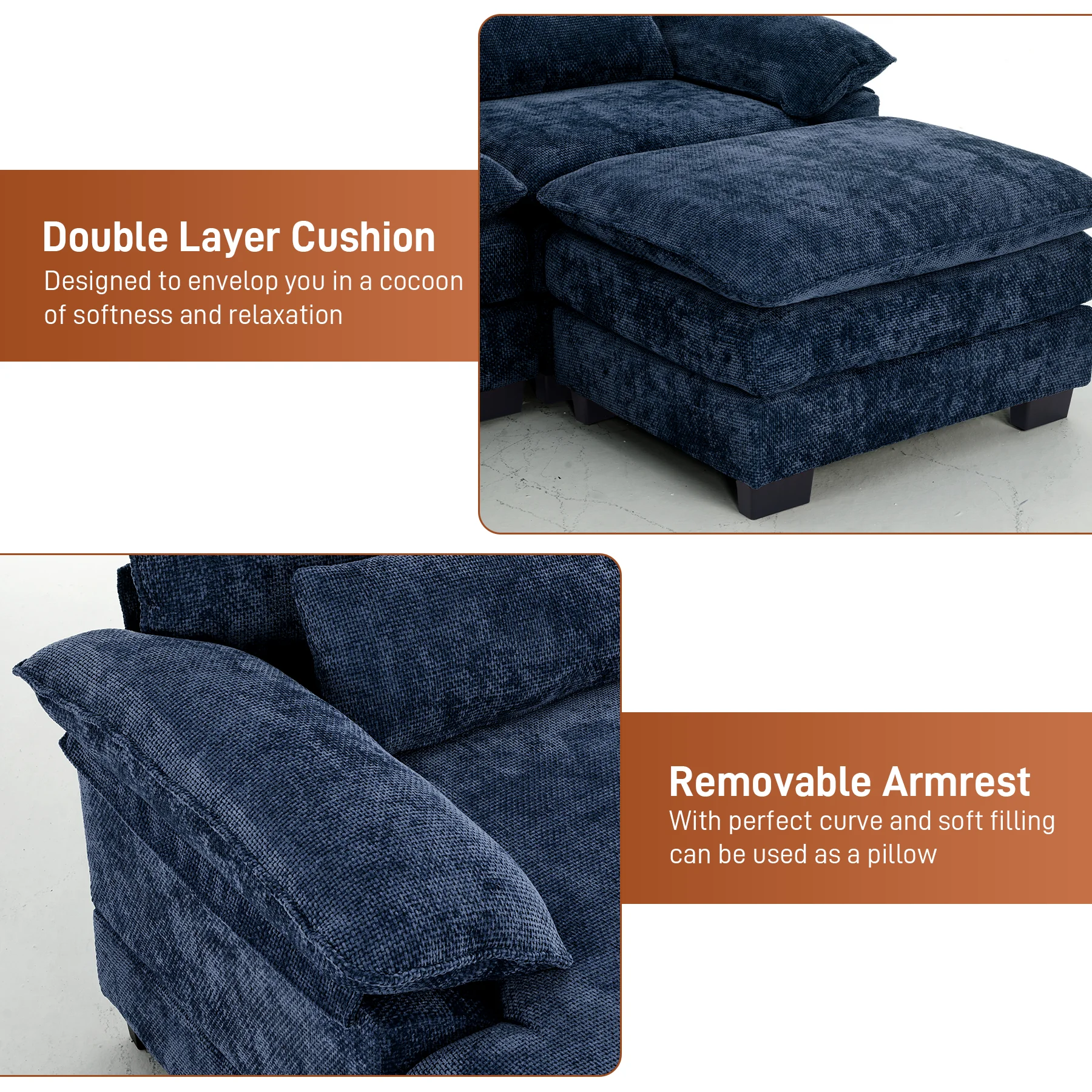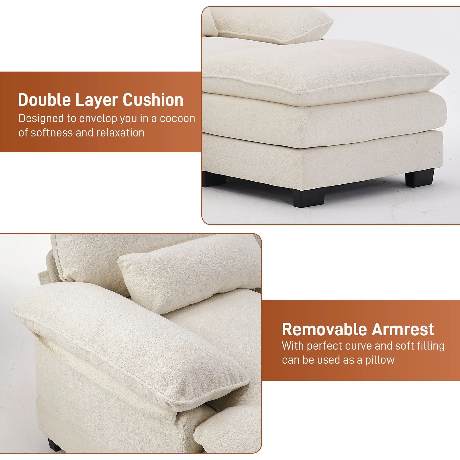 Includes: 2-Seat Sofa + 1 Single Sofa + 1 Chaise + 1 Ottoman + 4 Pillows -