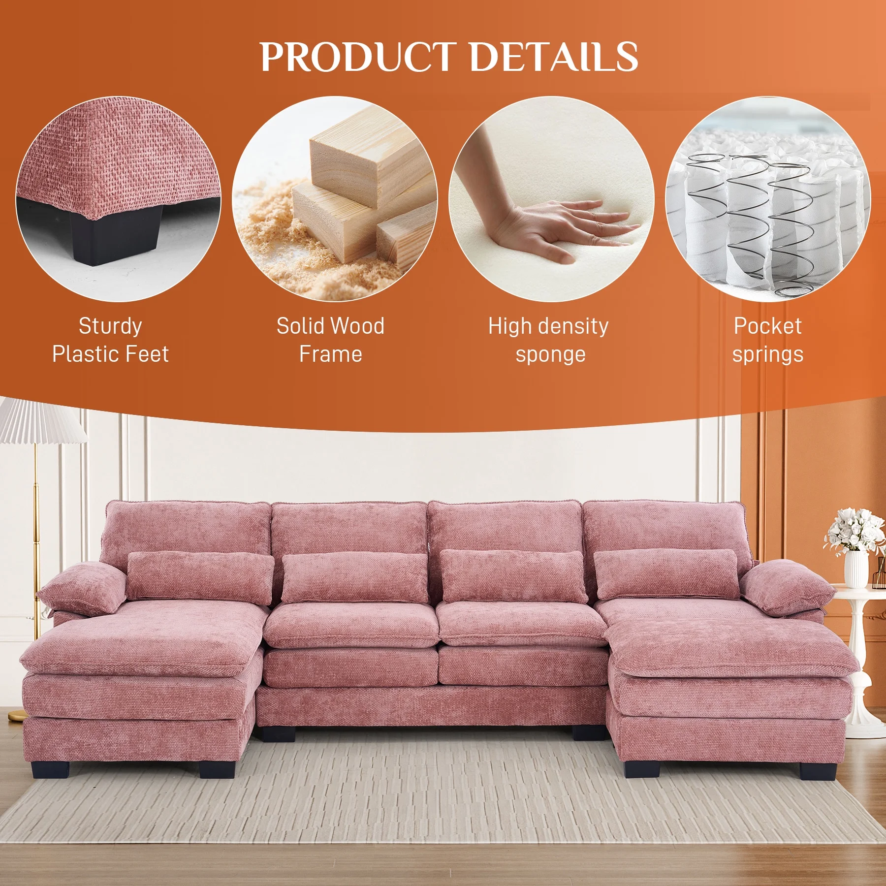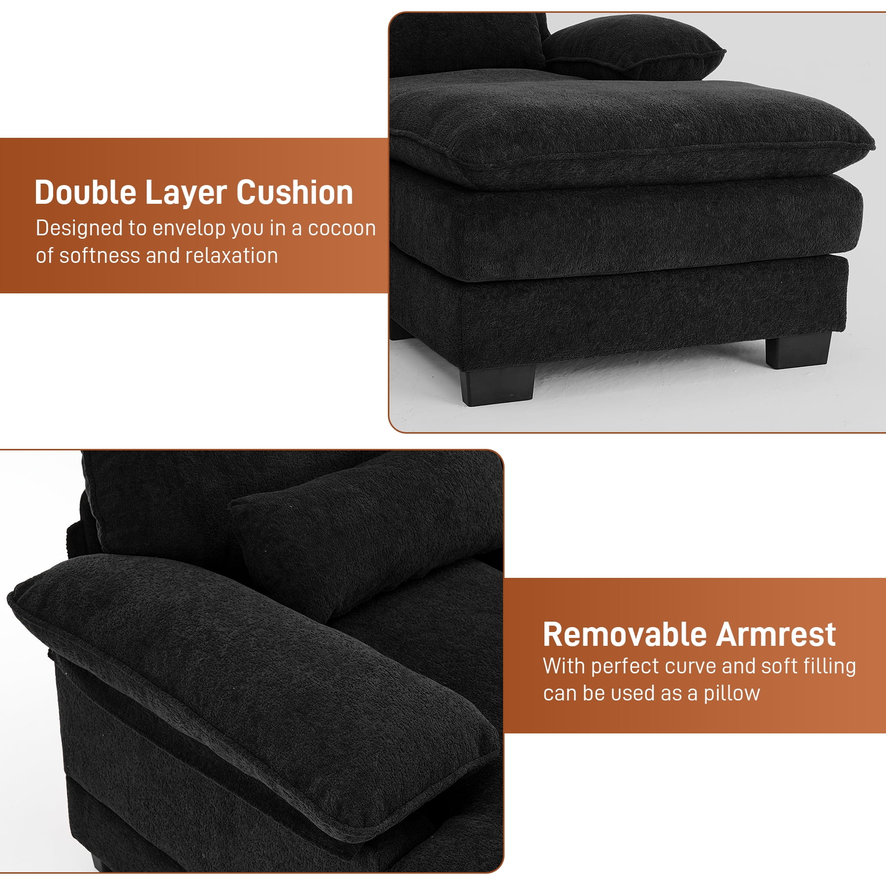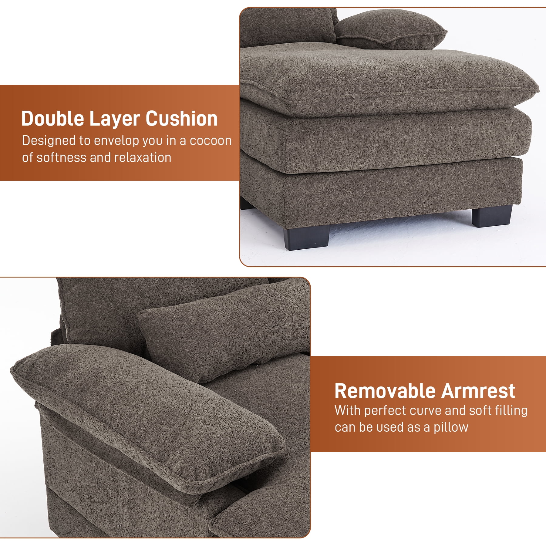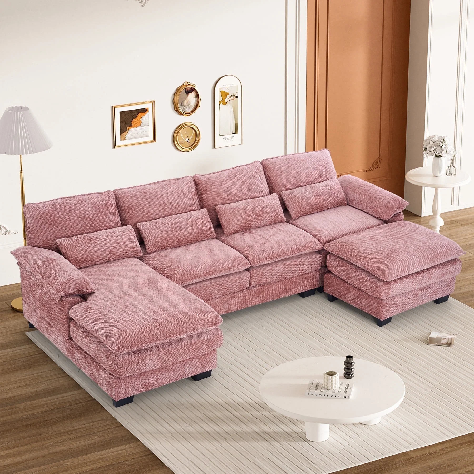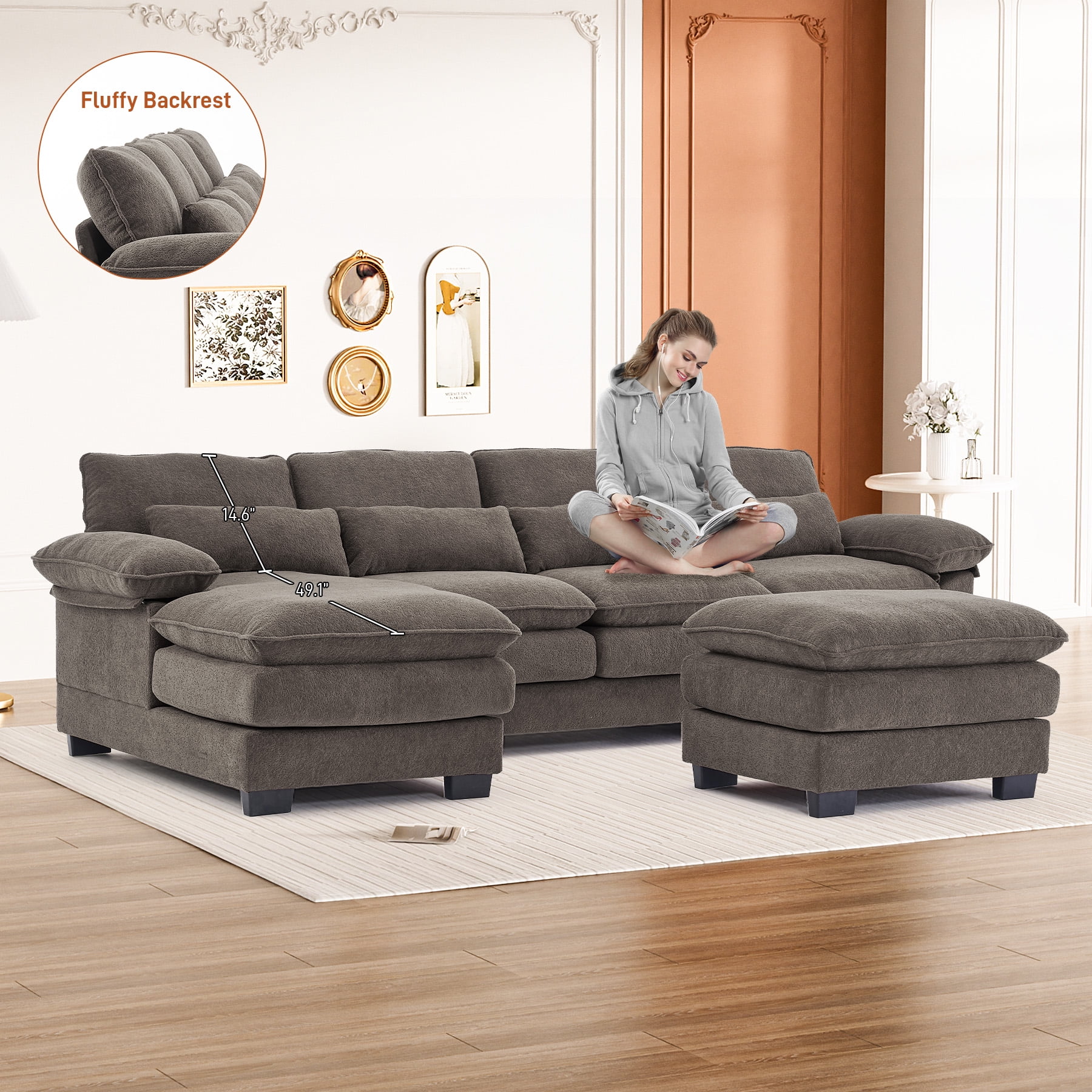 Includes: 2-Seat Sofa + 1 Single Sofa + 1 Chaise + 1 Ottoman + 4 Pillows -