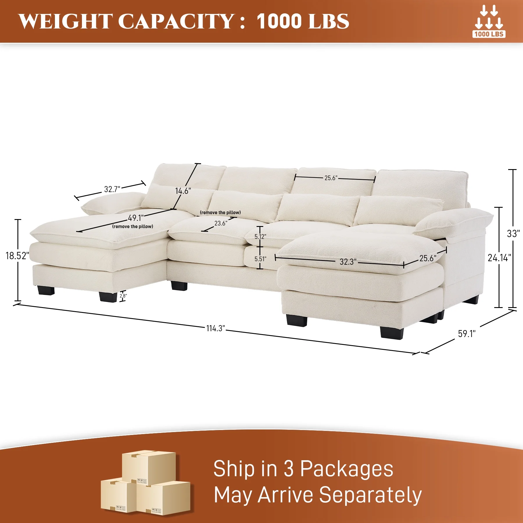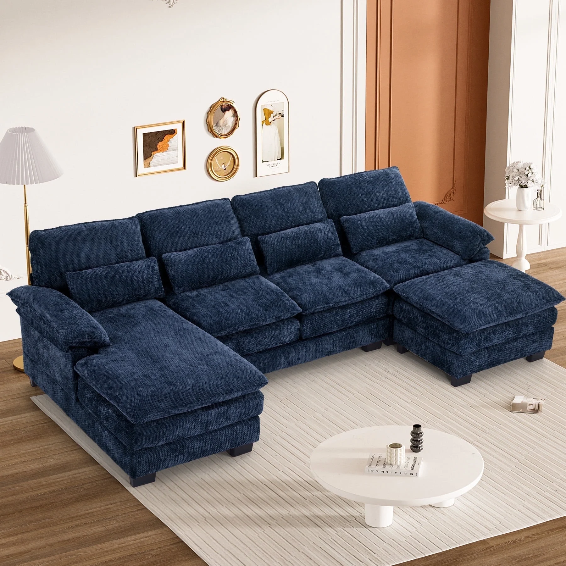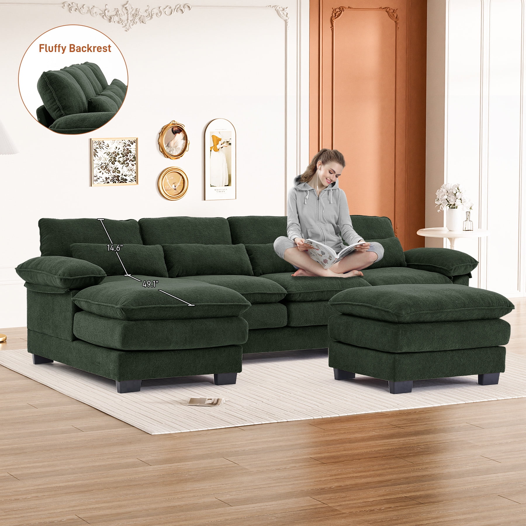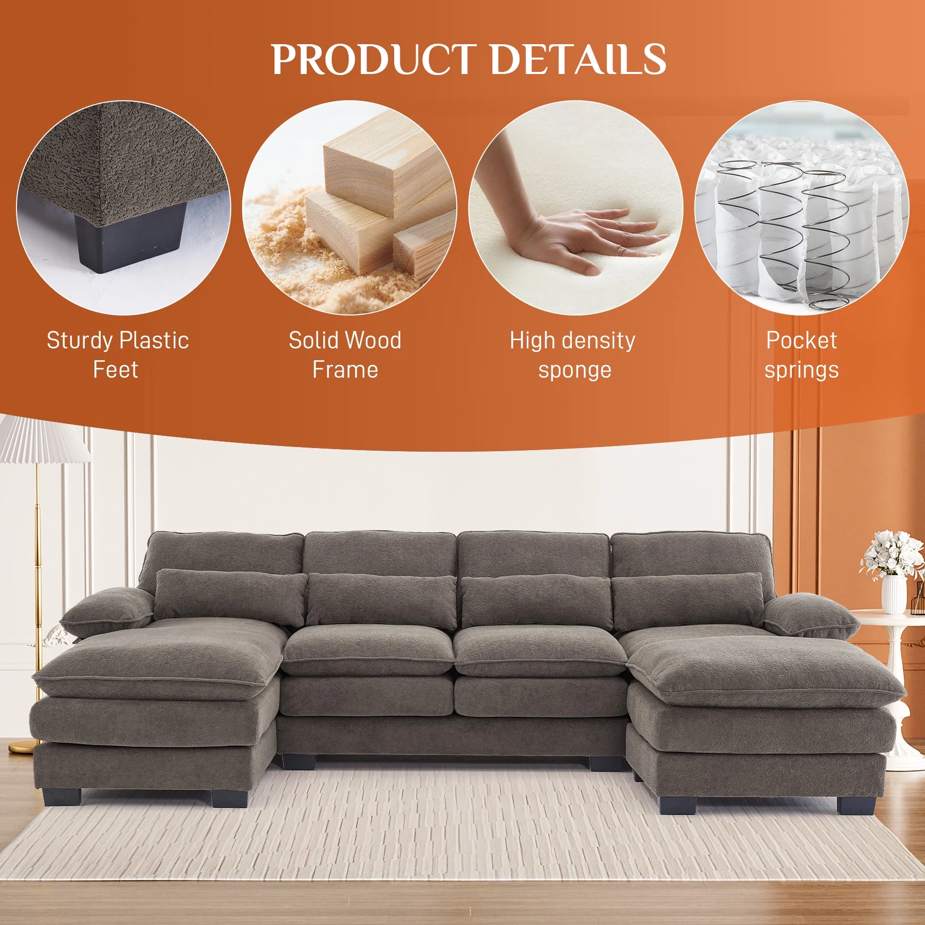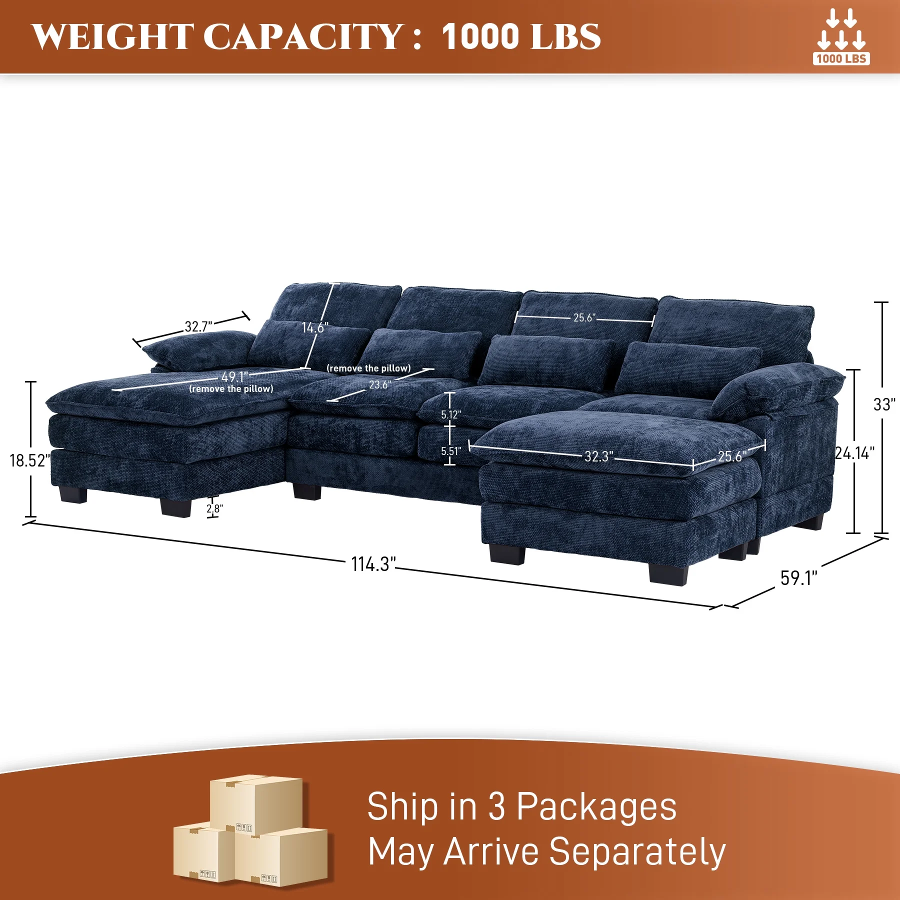 Includes: 2-Seat Sofa + 1 Single Sofa + 1 Chaise + 1 Ottoman + 4 Pillows -