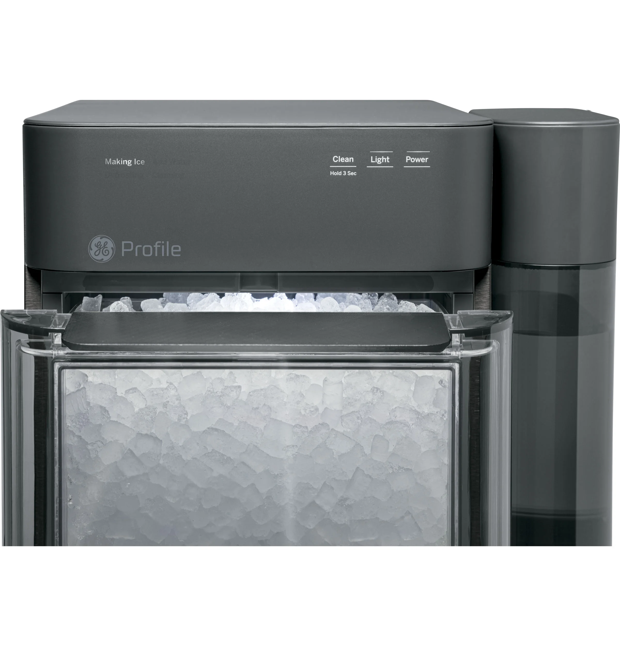 GE Appliances 38 lbs Capacity Built-In Ice Maker, Black Stainless Steel