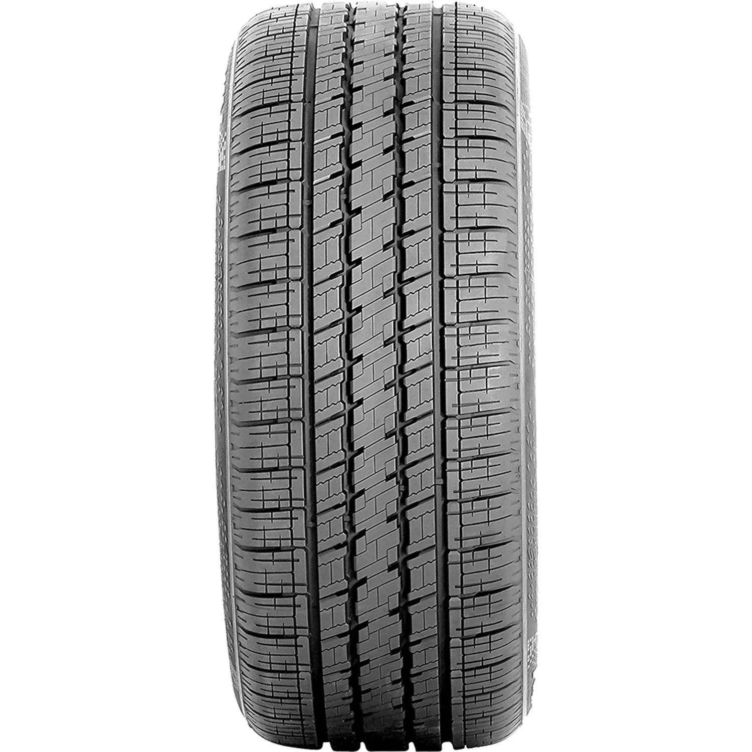 The tire promotes excellent all weather traction. The special tread pattern and the all season tire compound work together to increase the dry, wet and winter weather road gripping ability. The tread design also features wide circumferential and lateral grooves that enhance the hydroplaning resistance. They disperse water and slush from below the tire's footprint and actively prevent hydroplaning. The improved all weather traction and the hydroplaning prevention ensure first-rate year round driving safety.