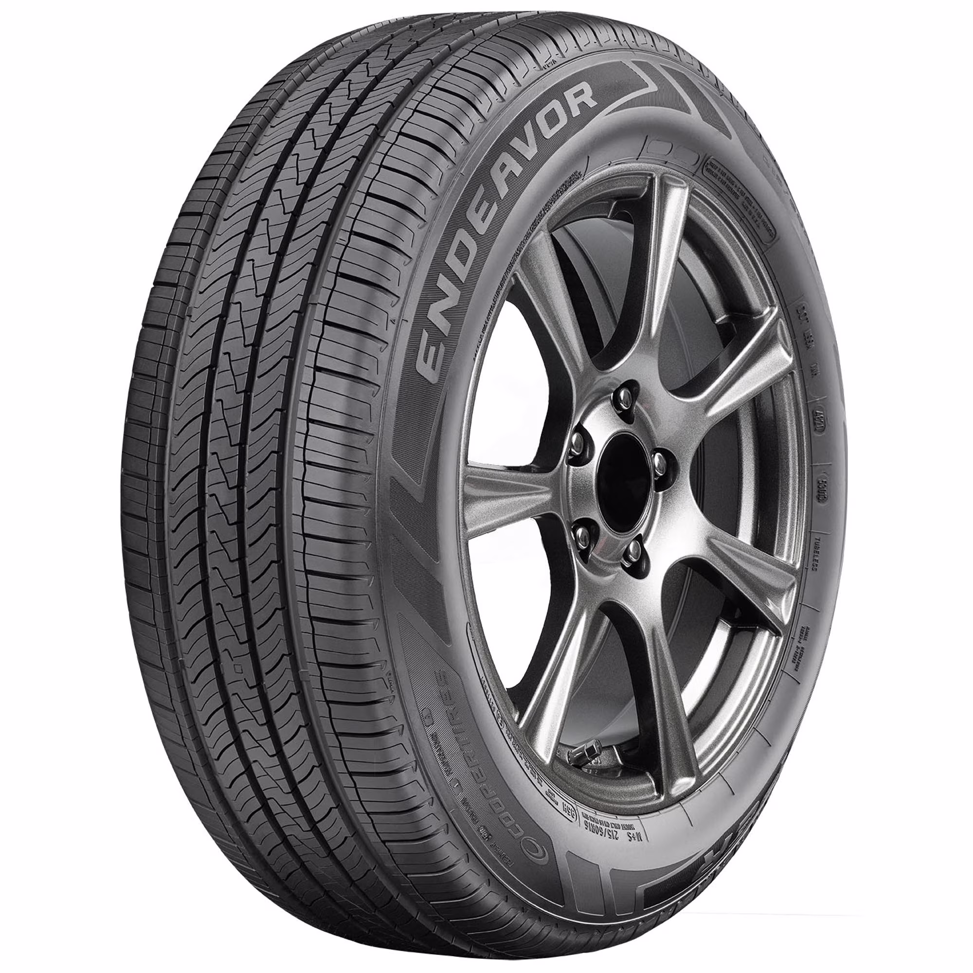 The Cooper Endeavor is an all-season tire for drivers of coupes, sedans, CUVs, SUVs, and minivans. A silica-enhanced rubber compound and 3D interlocking sipes increase traction and performance in dry, wet, and light winter weather conditions, and the Endeavor utilizes a five rib tread pattern and wide shoulder to improve acceleration, braking, and handling performance.