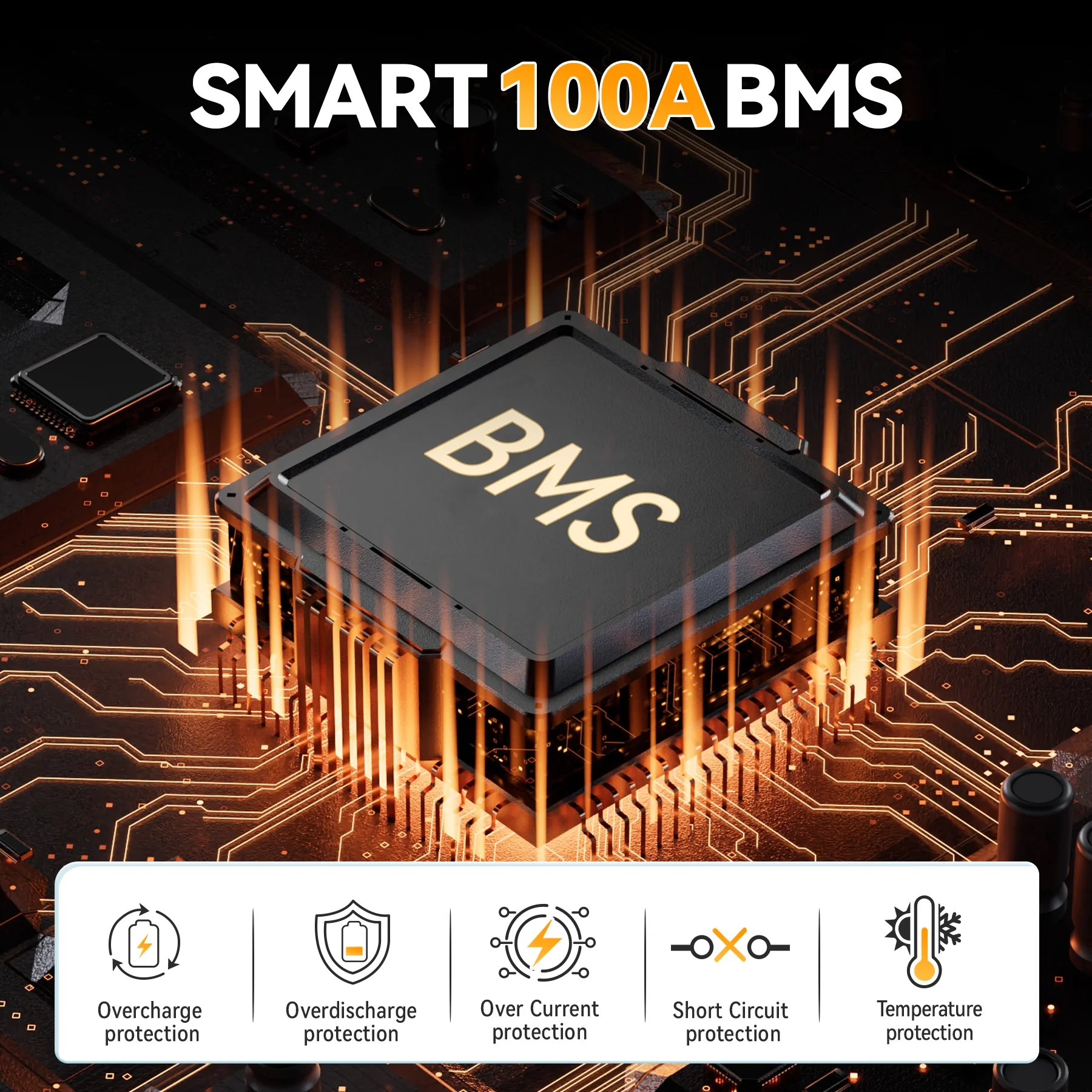 - ��Built-in 100A BMS Protection �� To maintain the voltage of every cell and protect it from overcharge, over-discharge, overload, overheating and short circuit.lithium iron phosphate batteries are very safe and the materials used are all environmentally friendly materials, while lead-acid batteries have no protection against ground faults.