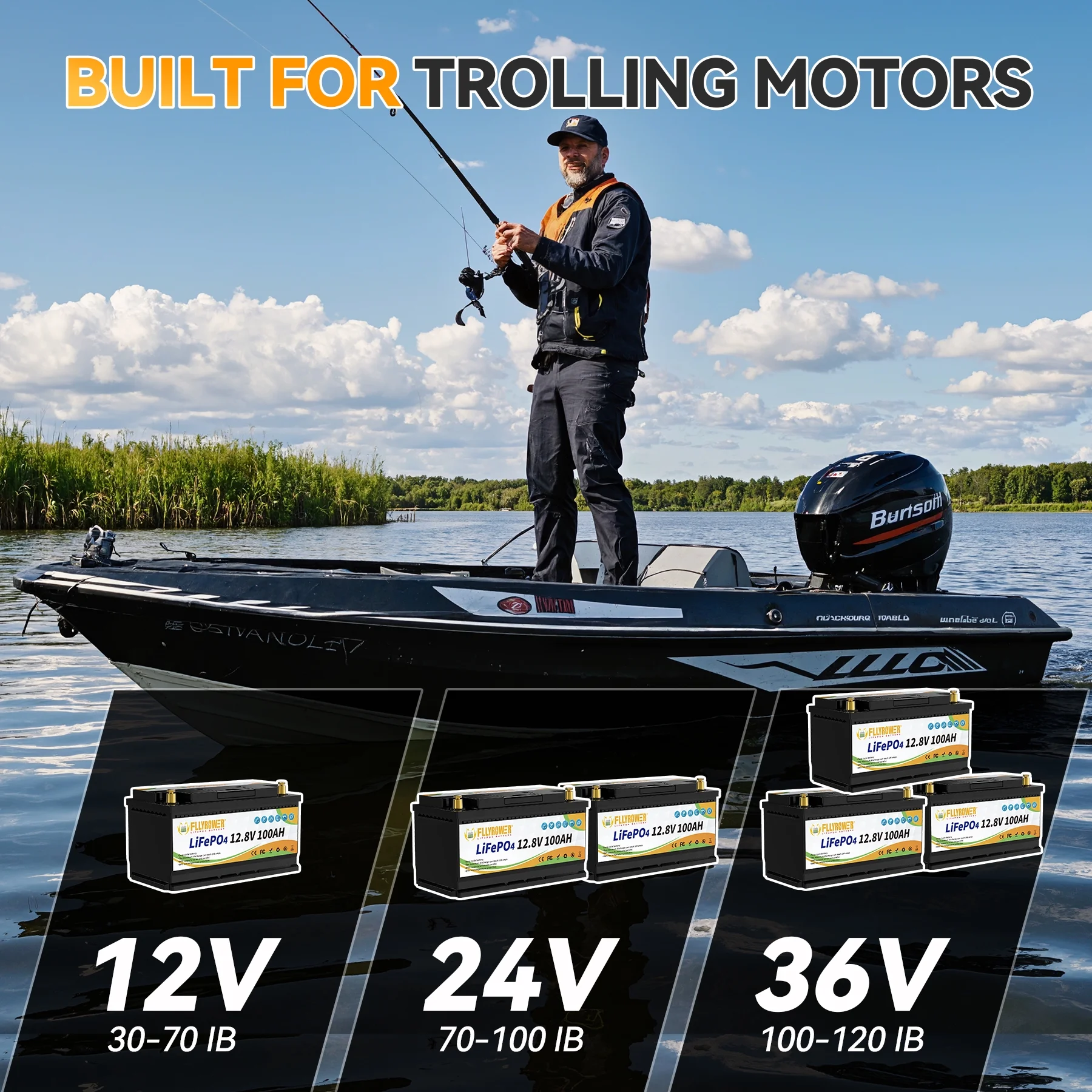 - ��Wide Applications ��Eco-friendly lifepo4 battery for trolling motor battery, solar battery, back-up battery, marine battery, golf cart battery, RV battery, lawn mower battery, sump pump battery and so on.
