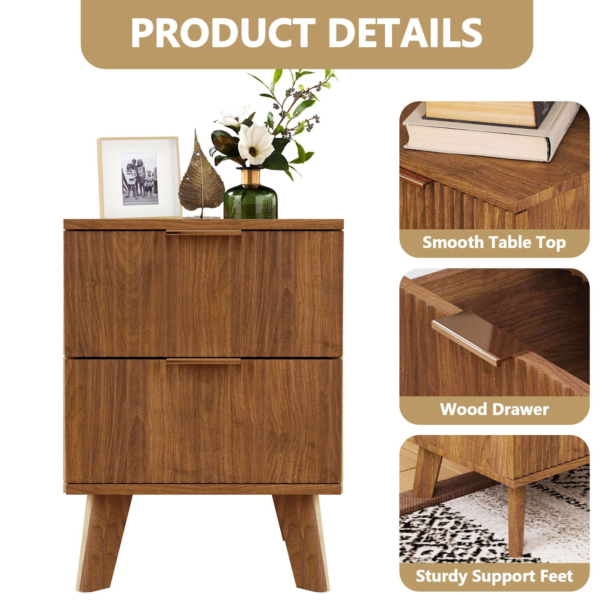 YOCWO Nightstand Set of 2, Wood End Tables with Drawers, Bedroom Bedside Table Storage Side Table for Bedroom