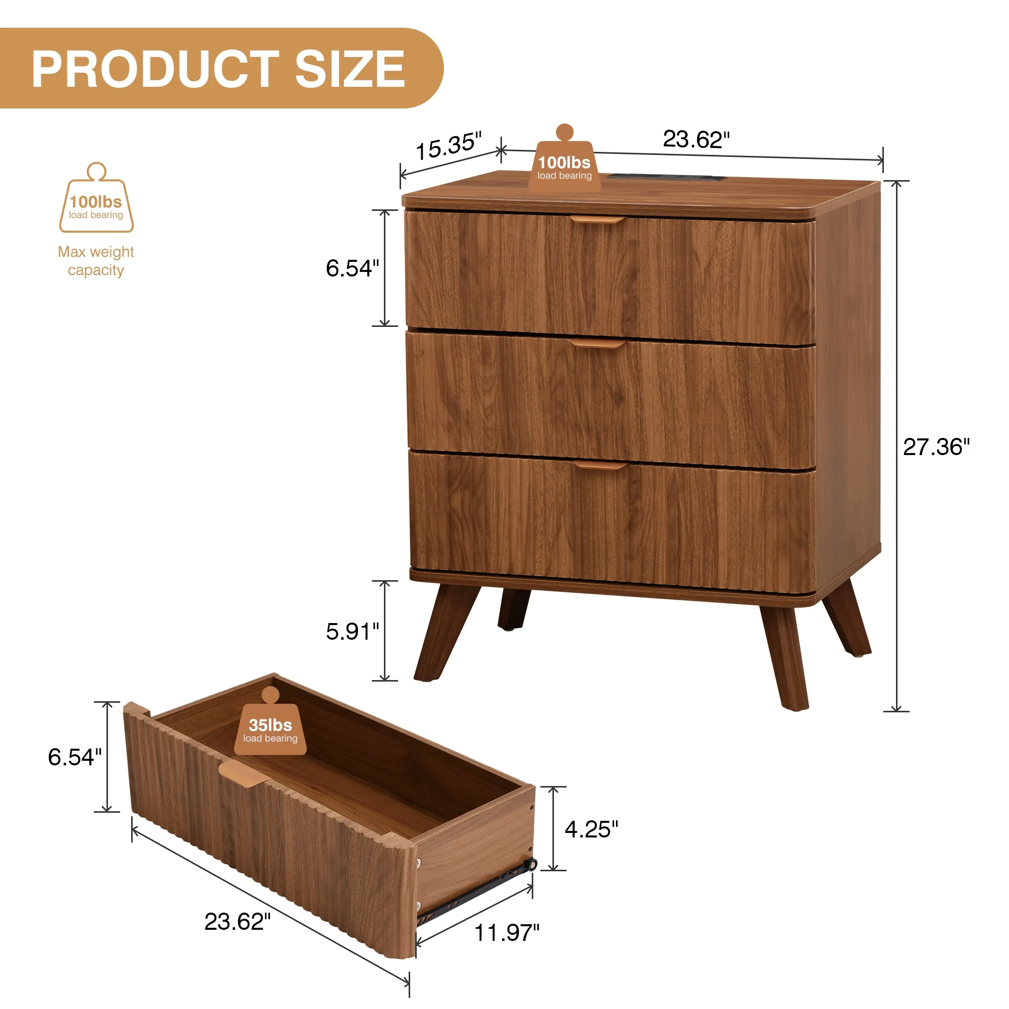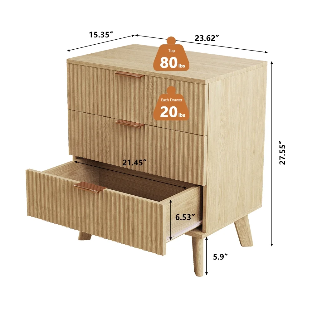 MODERN DESIGN: wave pattern design, smooth rails, solid wood legs, silver handle add appealing detail to this modern nightstand, making it easy to adapt to any decorating style and creating a spacious look for your space.