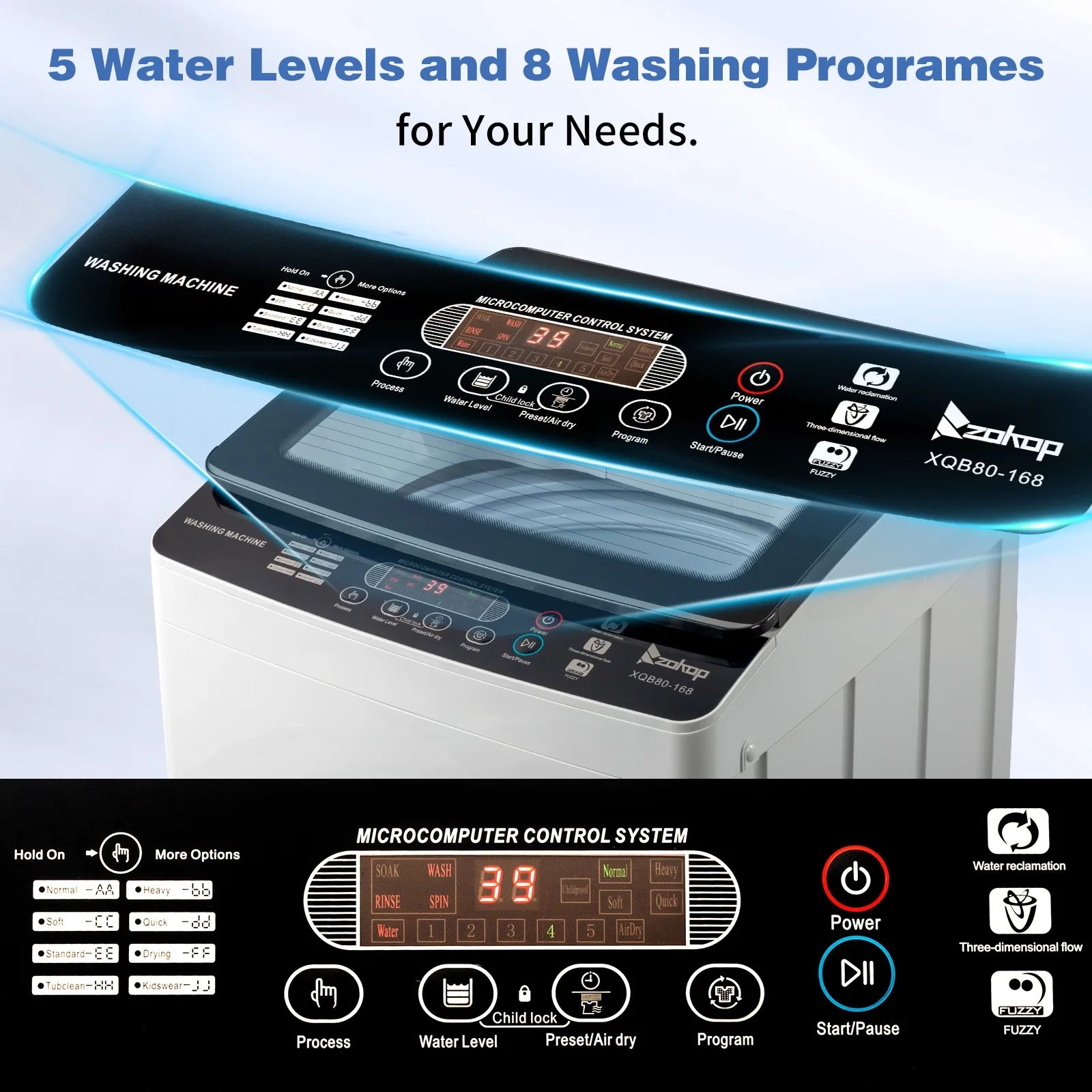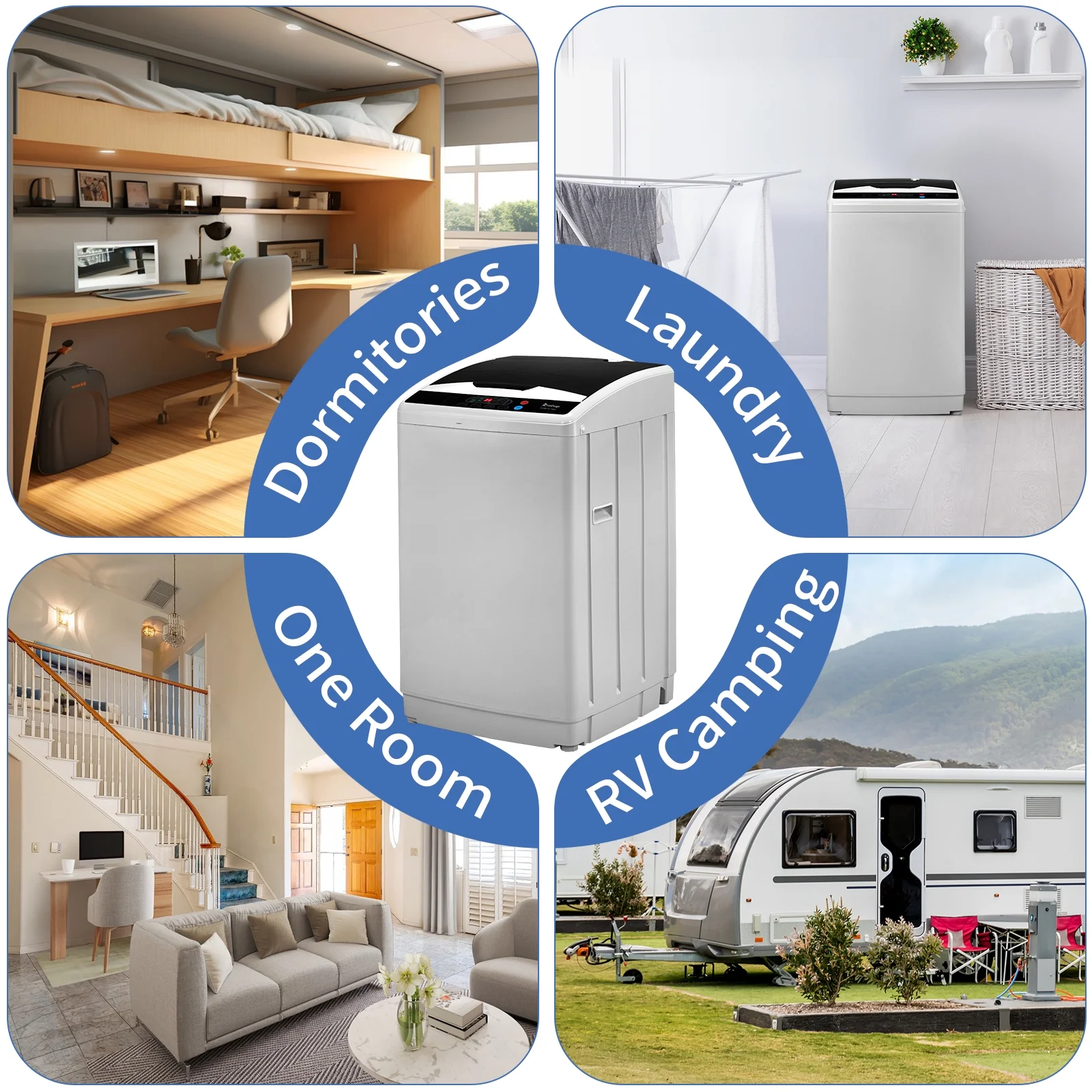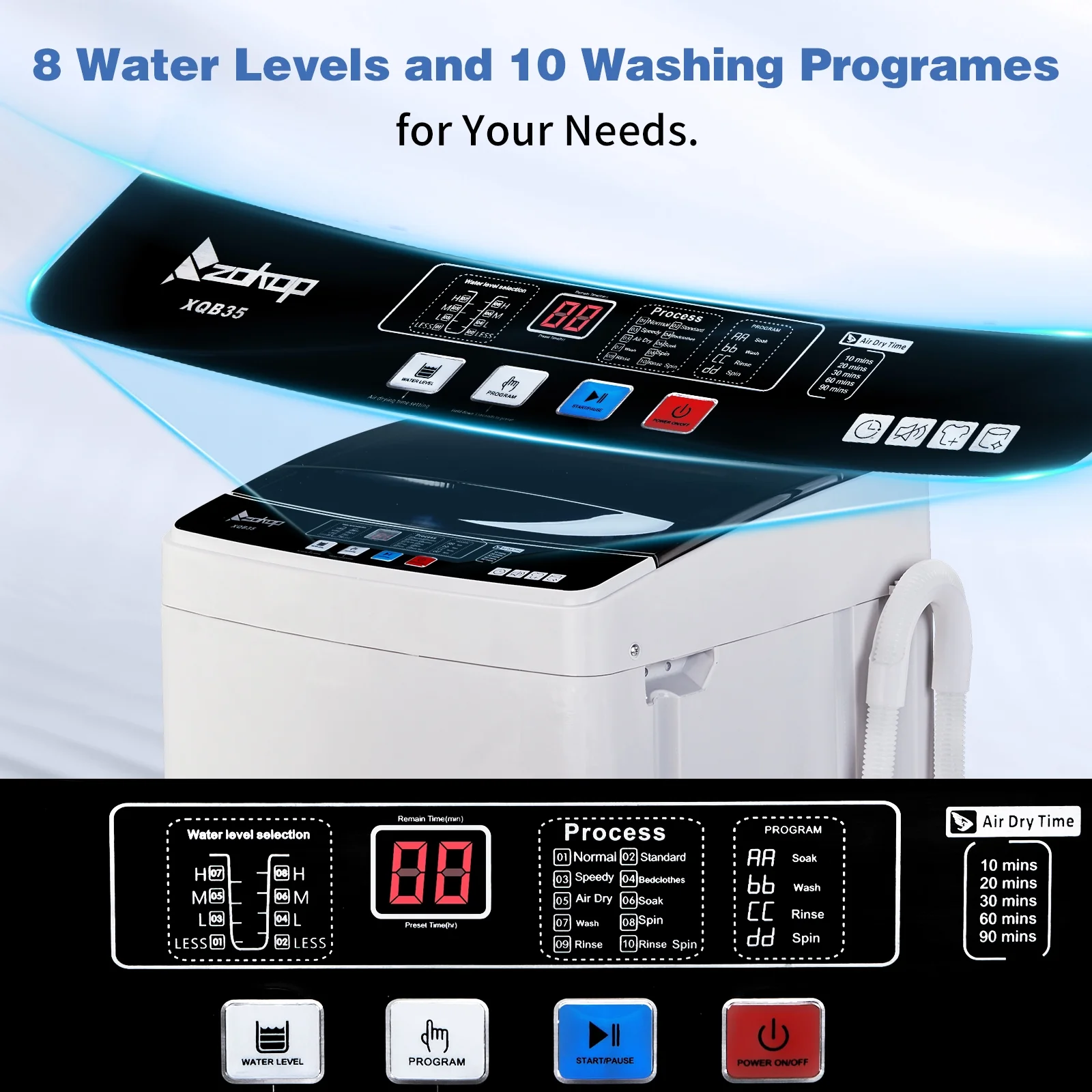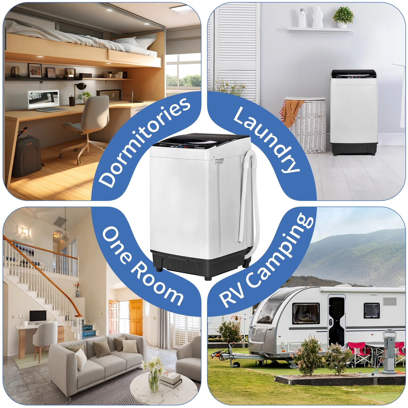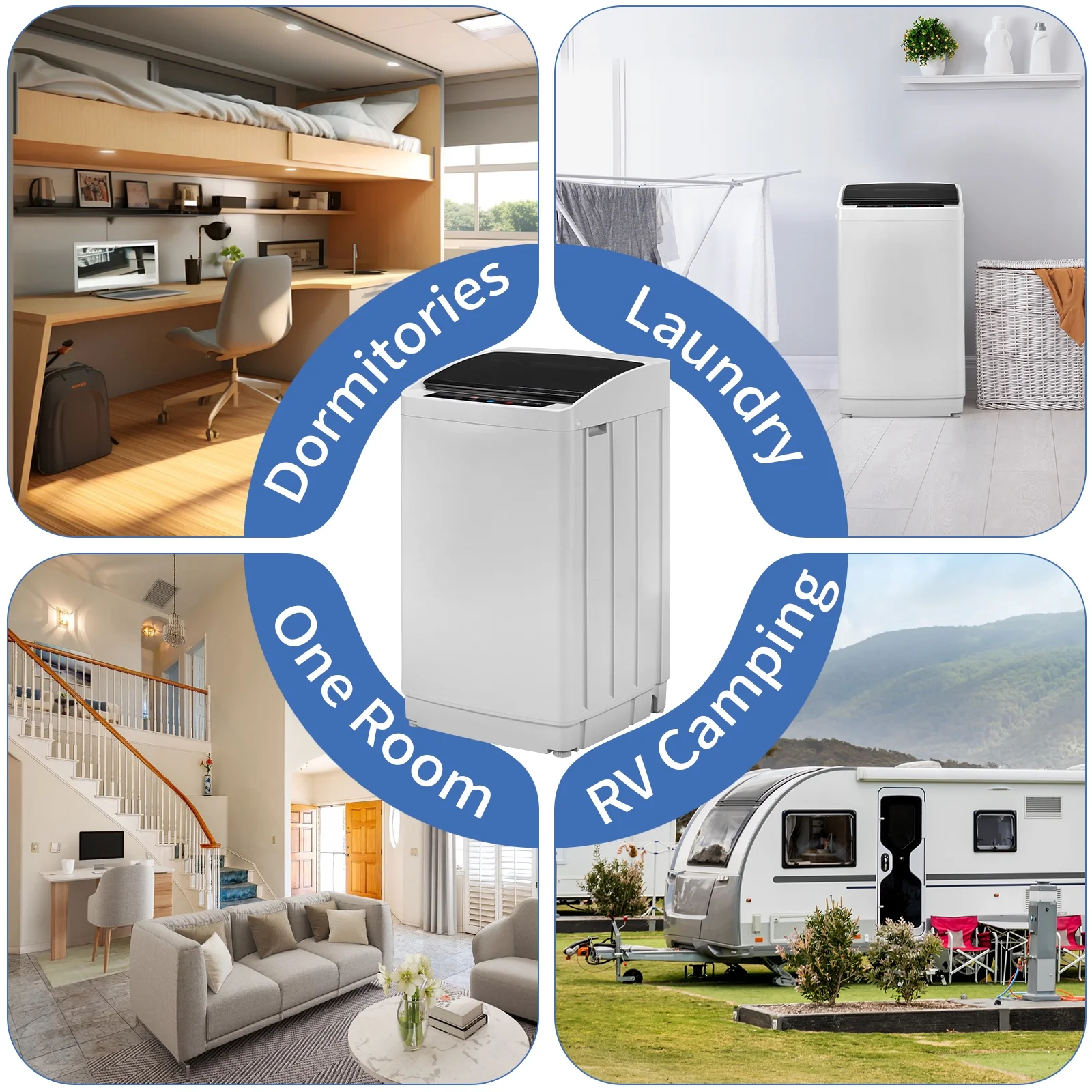 ✅【Easy to Operate�?- The apartment washer is easy to operate. The control panel is equipped with 10 programs, 8 water level selections and an LED display. You only need to select the desired program and you can complete the entire process of washing, drying and draining alone. It is also equipped with 2-24 hours intelligent delayed washing function.