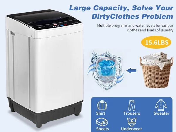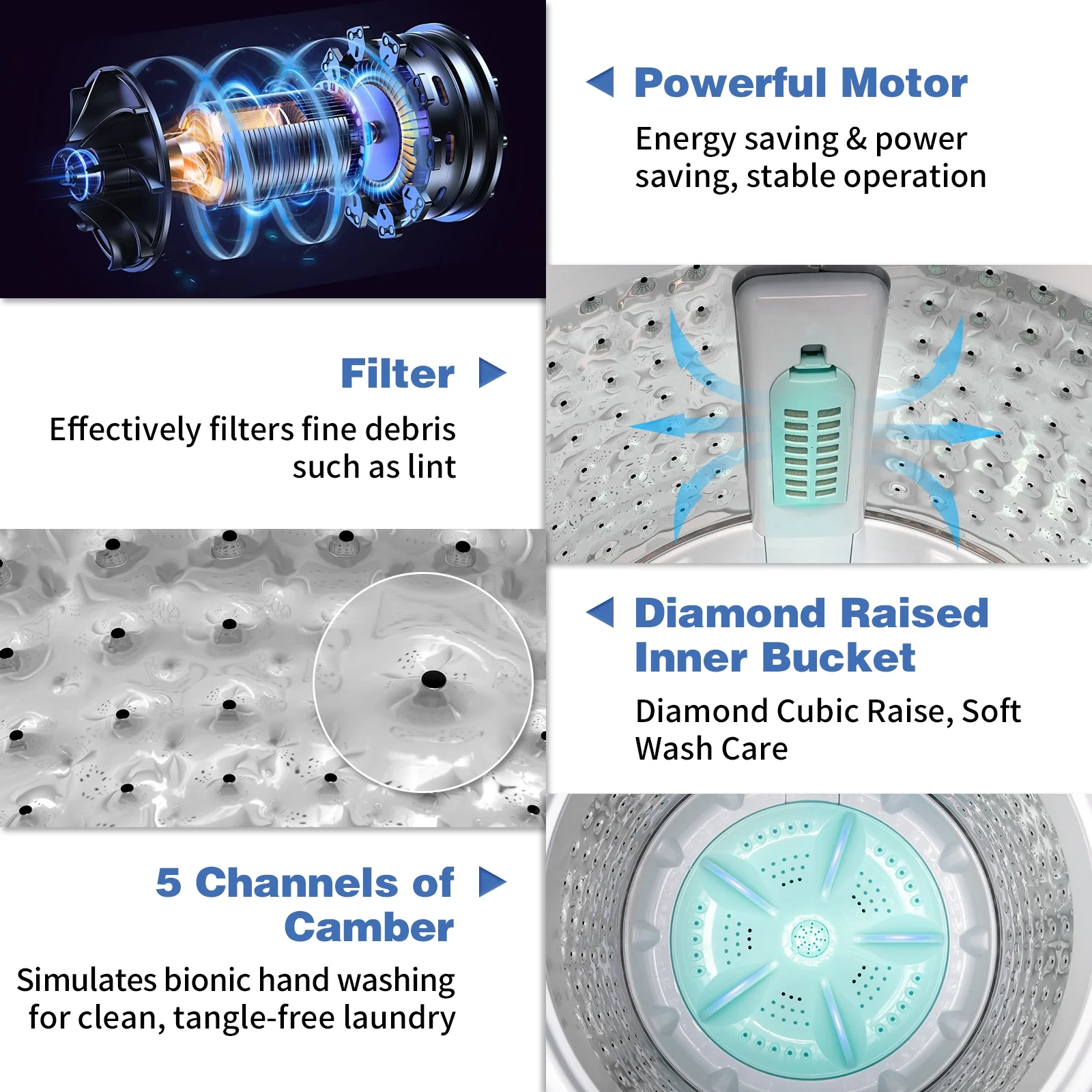 ✅【Large Capacity & Compact Design�?- Fully automatic washing machine features a stainless steel inner tub that can wash up to 17.6 pounds of laundry at a time, allowing you to wash many different types of laundry, completely hands-free.