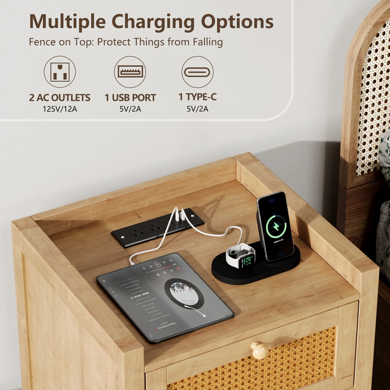 - ��Upgraded Type-C Port��This rattan nightstand with 2 Power Outlets, 1 Type-C Port, 1 USB Port will fully satisfy your charging needs.