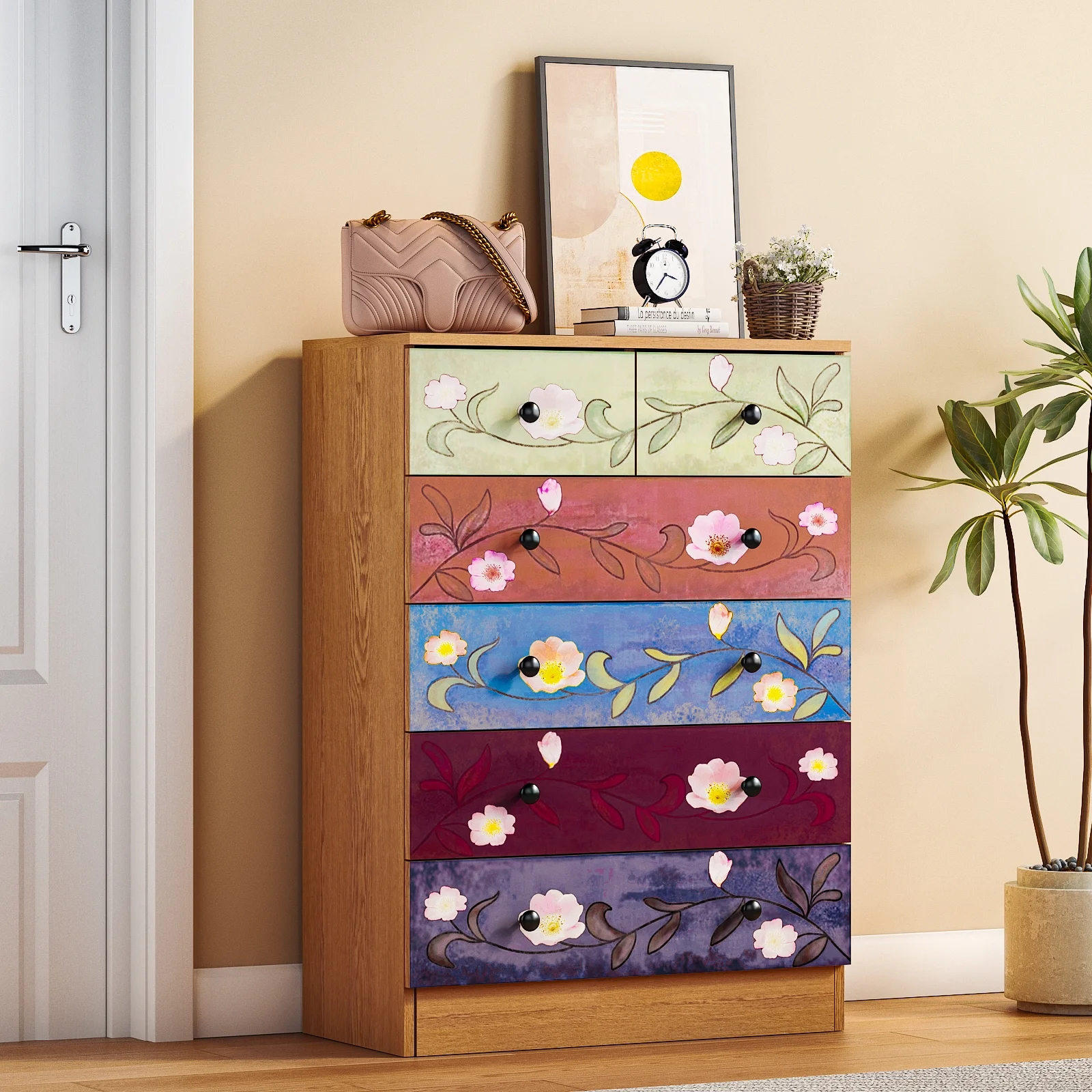 Generous Storage Capacity: This 5-layer, 6-drawer cabinet provides plenty of space to organize clothes, accessories, toys, or office supplies, keeping your belongings neatly stored and easily accessible.