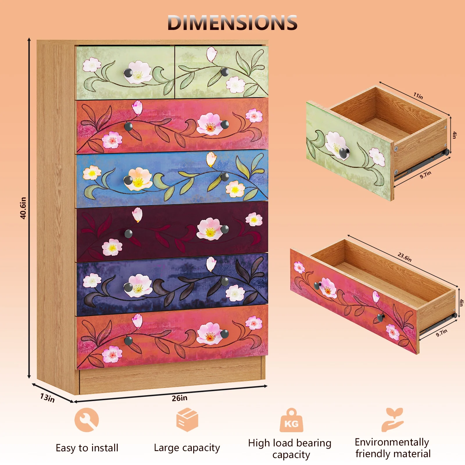 Deep, Roomy Drawers: Designed with 6 deep drawers, this dresser ensures maximum storage for all your essentials, making it perfect for decluttering any room.