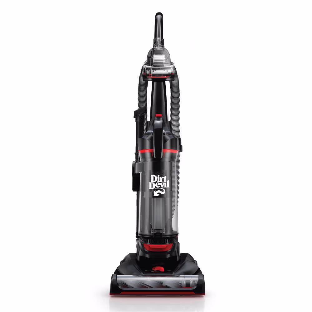 Experience a high-performance clean on hard floors and carpets with the Dirt Devil Multi-Surface Total Pet+ upright vacuum. MaxPower. Technology helps capture large debris, fine particles, and deeply embedded dirt more quickly and efficiently while preventing potential clogging. PowerPass. Technology reduces vacuuming time by preventing dust and dirt from scattering across hard floors. The versatile Pet Tool Kit is designed to help easily remove pet hair throughout the home using versatile tools and extra cleaning reach. The 4-level height adjustment helps to smoothly transition between varying floor types with the turn of a dial. Click Lock. tools like the 12" Extension Wand, 11" 2-in-1 Crevice/Dusting Brush, Pet Upholstery Tool, and Turbo Tool. attachment helps target messes for above-floor cleaning. Once finished, easily empty the large dirt cup with a one-touch button. Convenient, onboard storage provides a single location to keep all the tools organized and accessible.