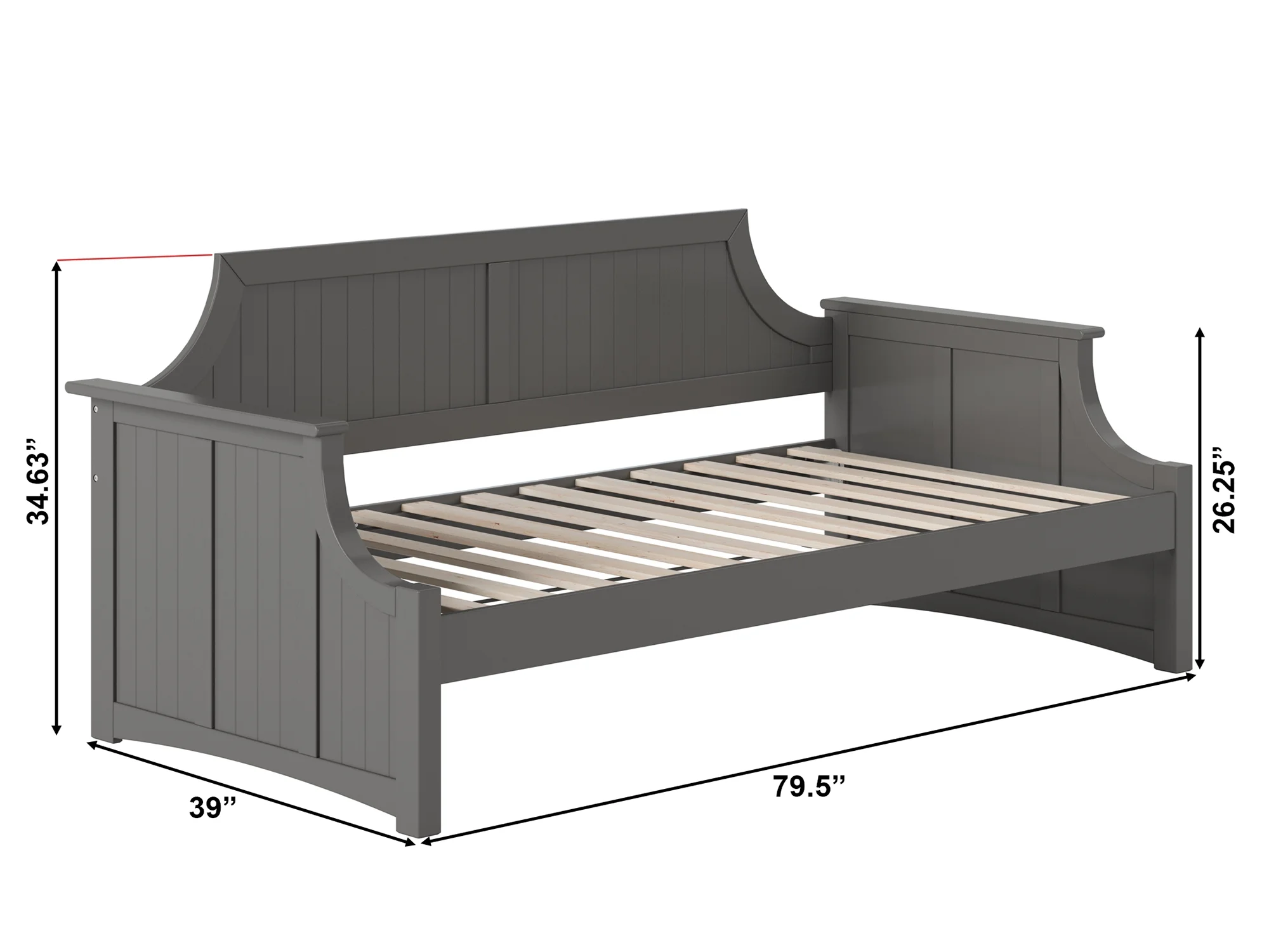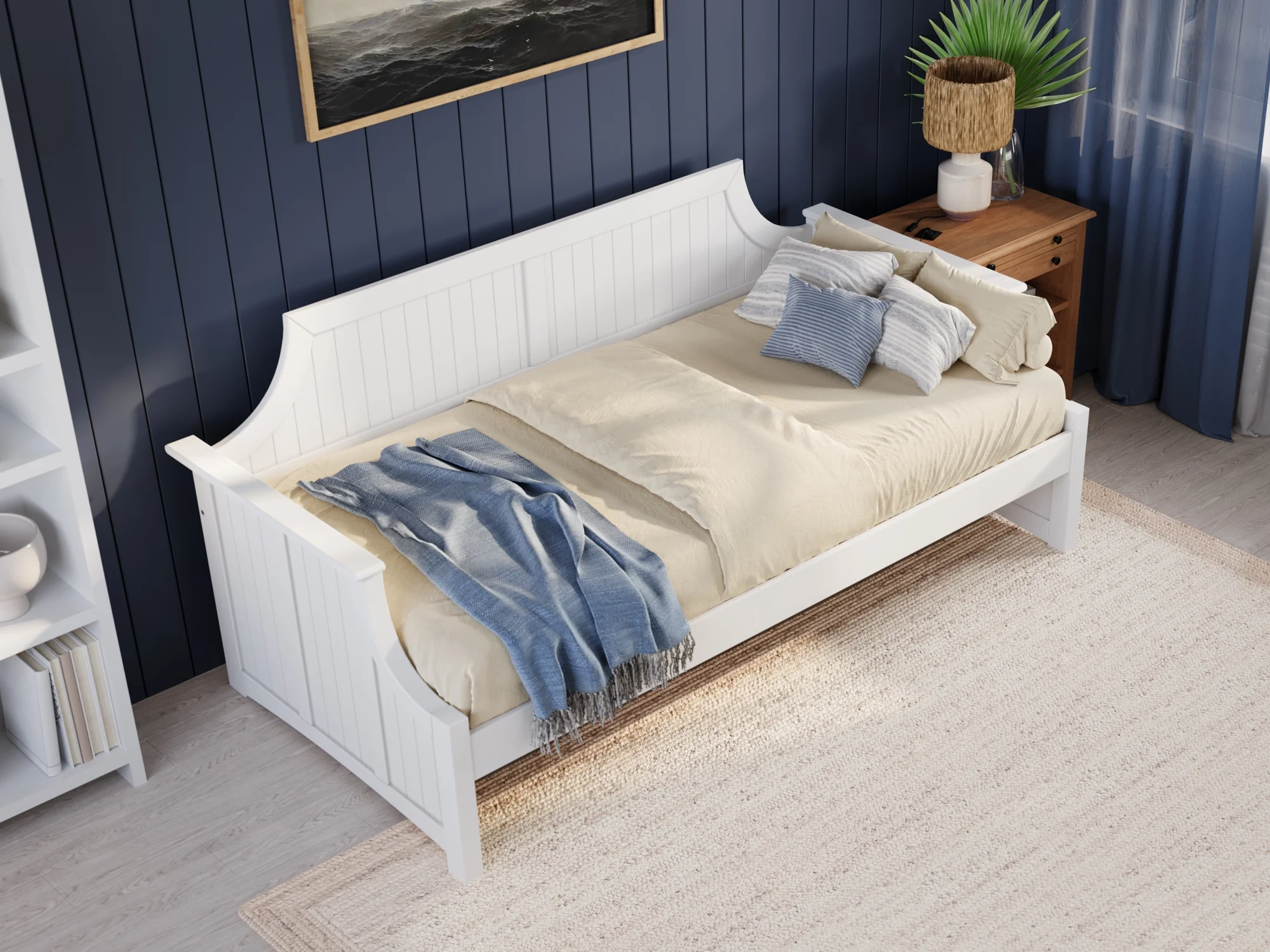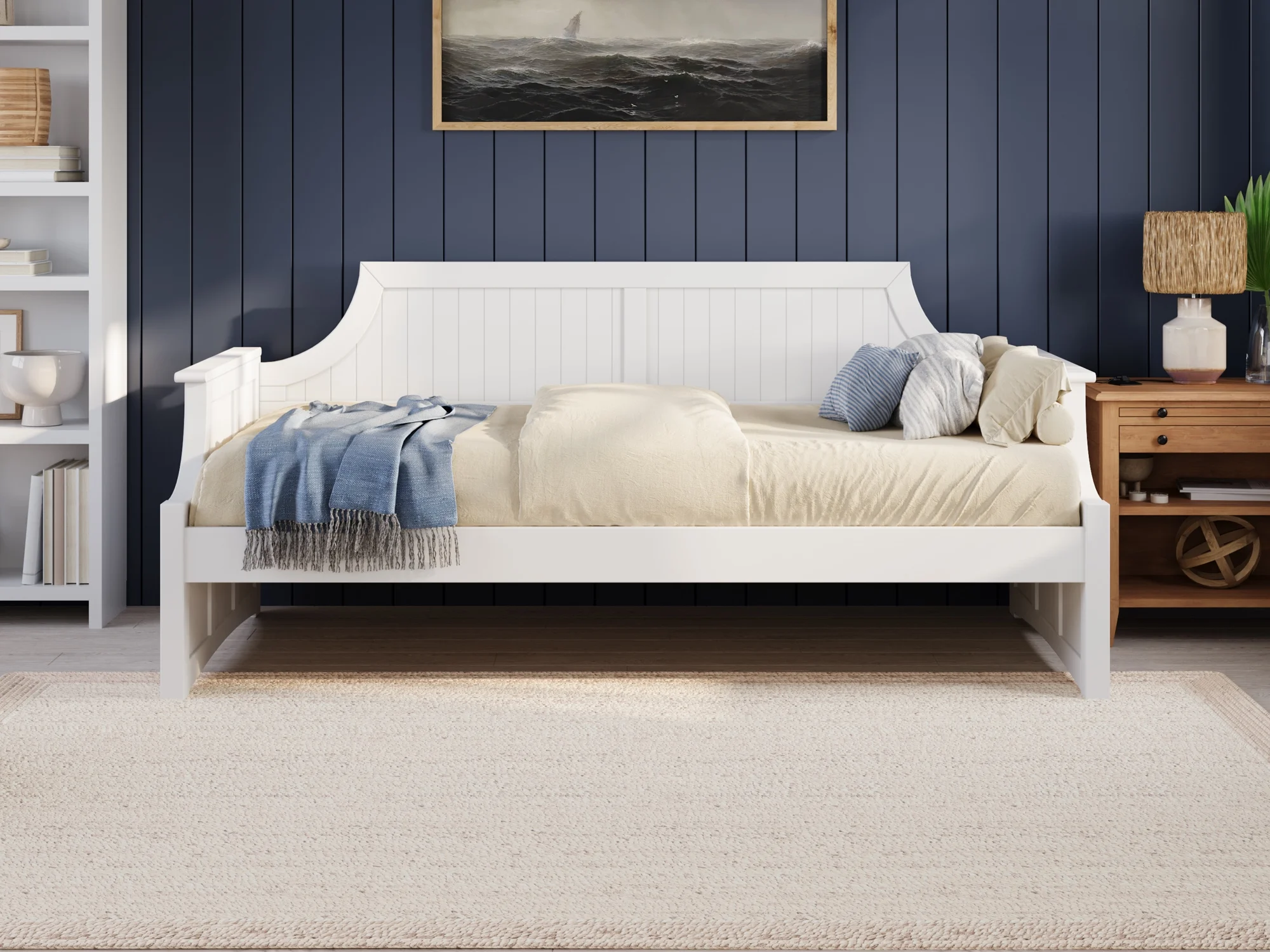 - The Cambridge Twin Size Solid Wood Daybed: Features a unique curved back board with tongue and groove beadboard design that is perfect for any room in your home!