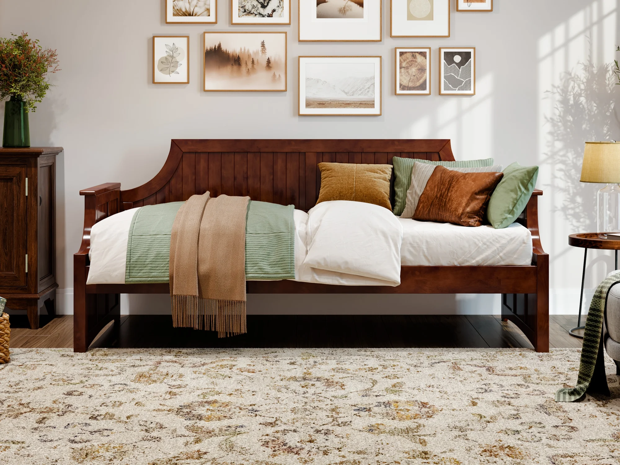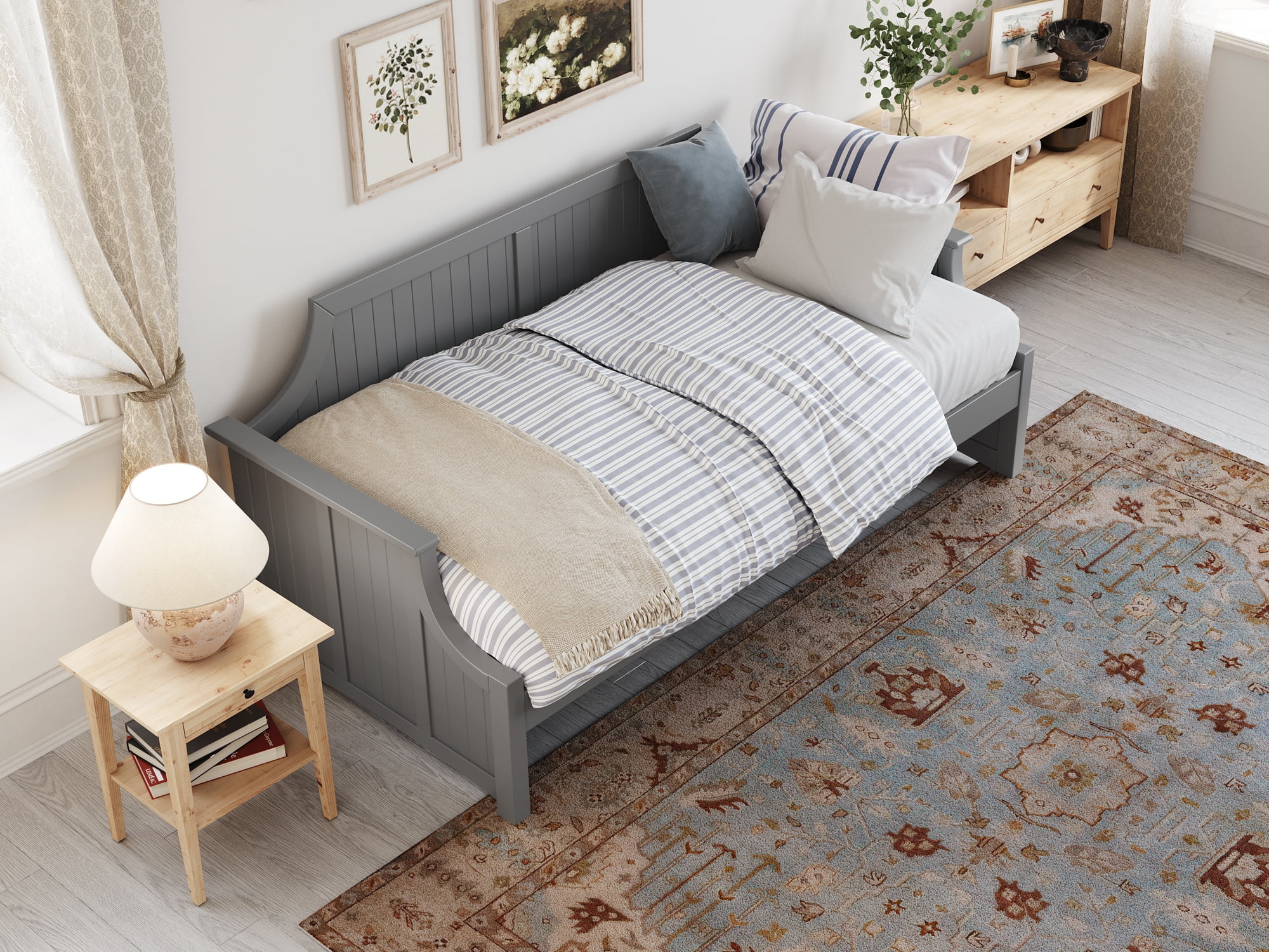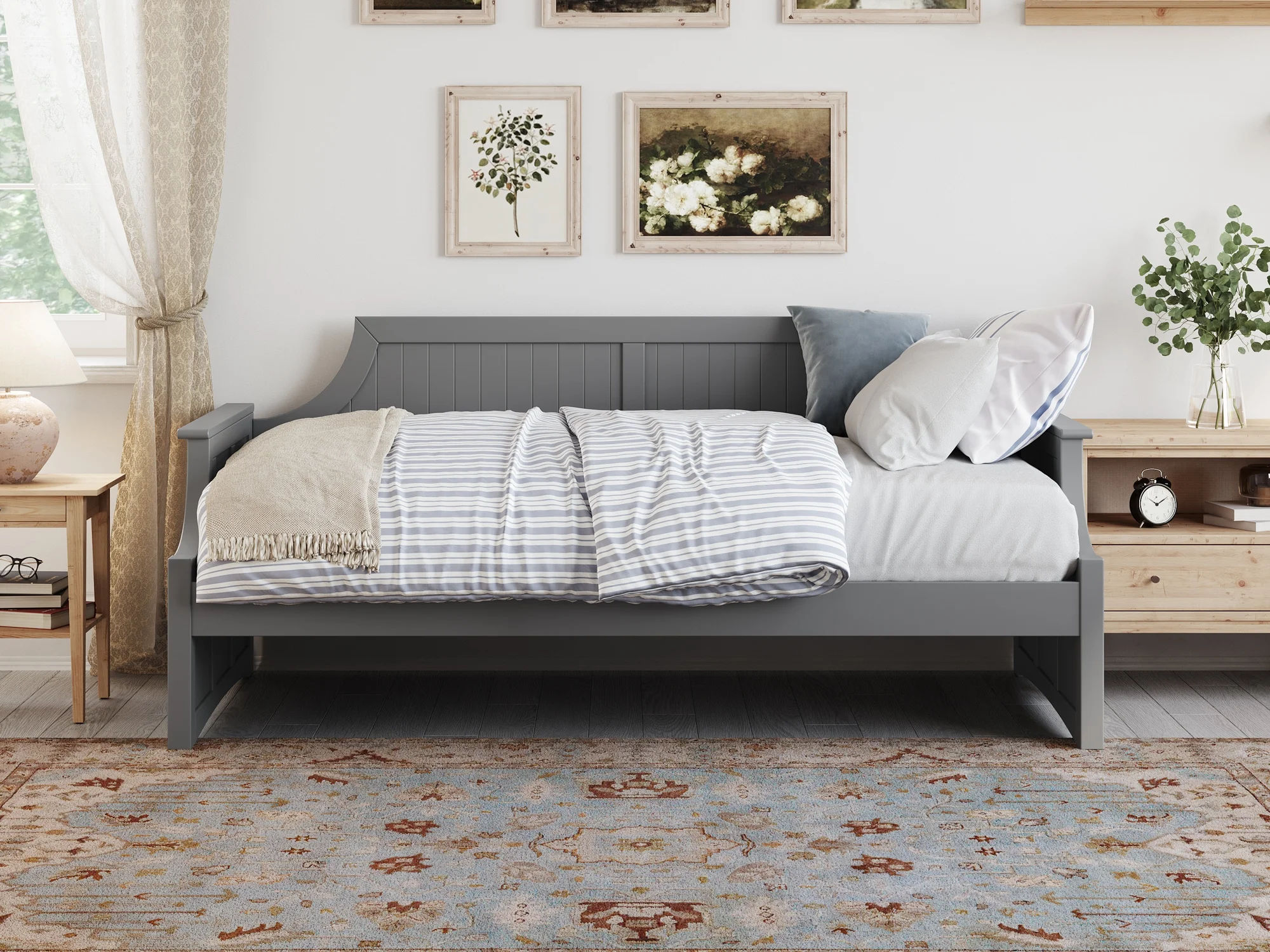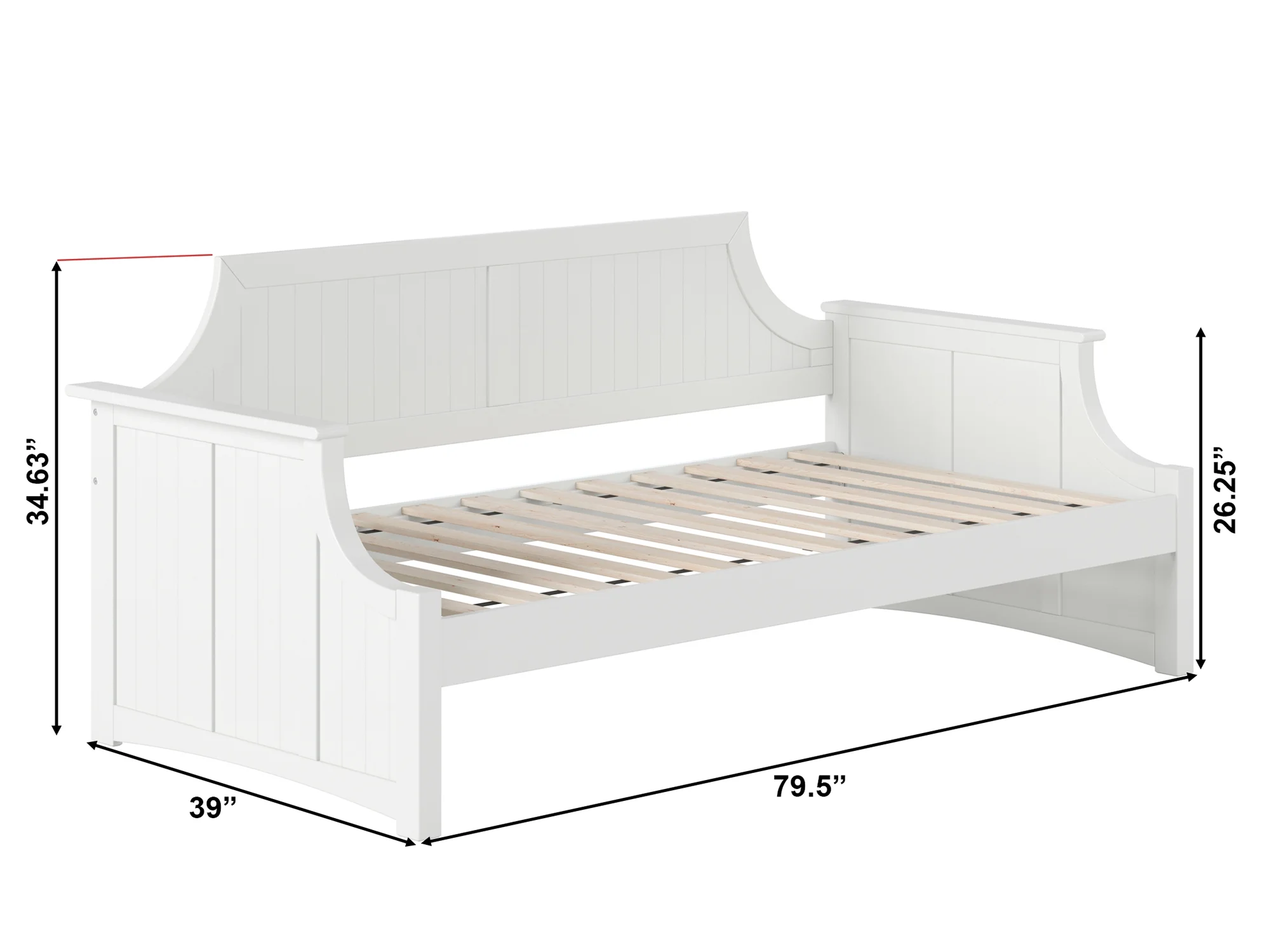 - The Cambridge Twin Size Solid Wood Daybed: Features a unique curved back board with tongue and groove beadboard design that is perfect for any room in your home!