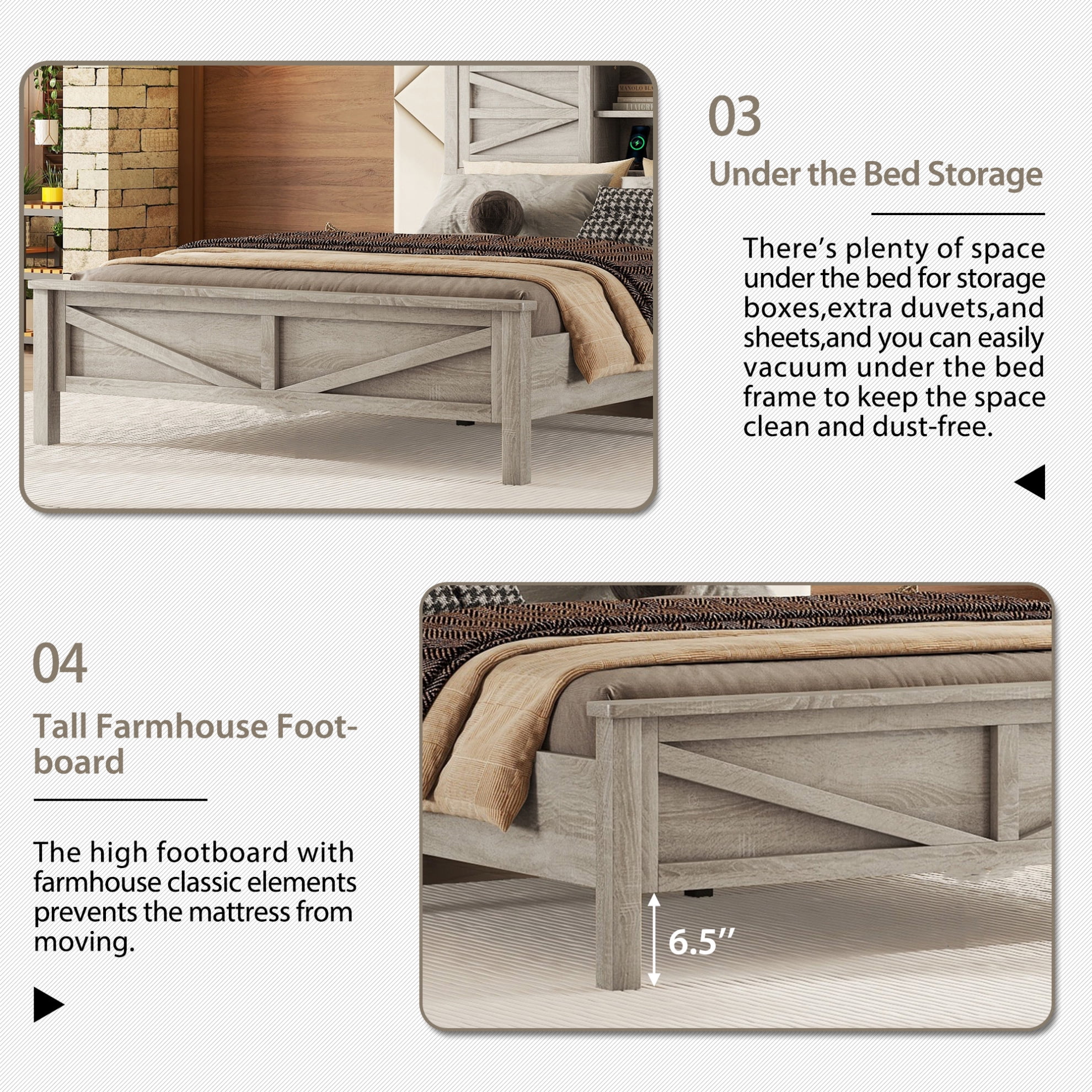 - Platform Bed Dimension: 83.6"L X 56.3"W X 40.3"H