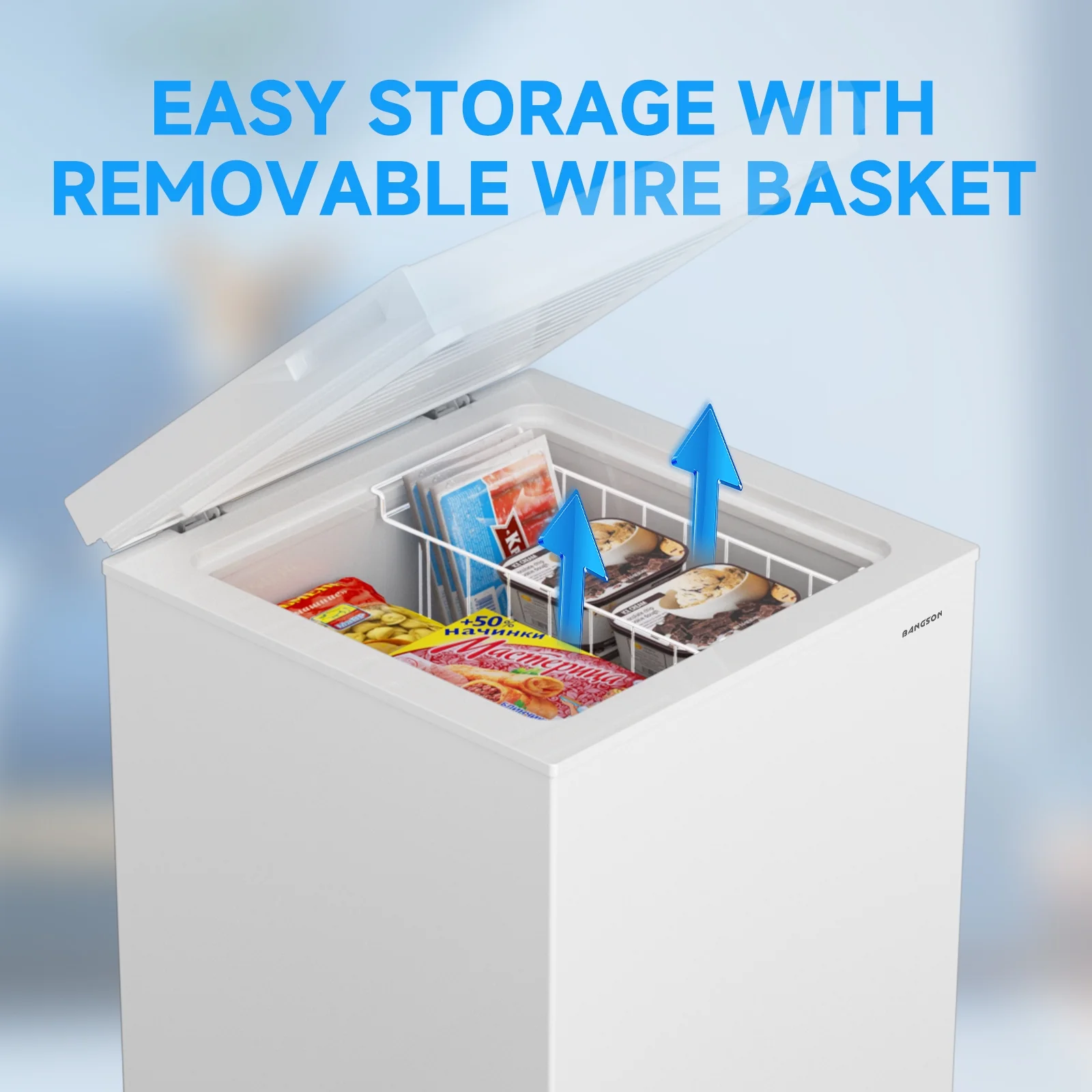 • BANGSON 3.5 Cubic Feet Chest Freezer, Deep Freezer with Removable Basket, Adjustable Temperature for Home/Dorms/Apartment/Office