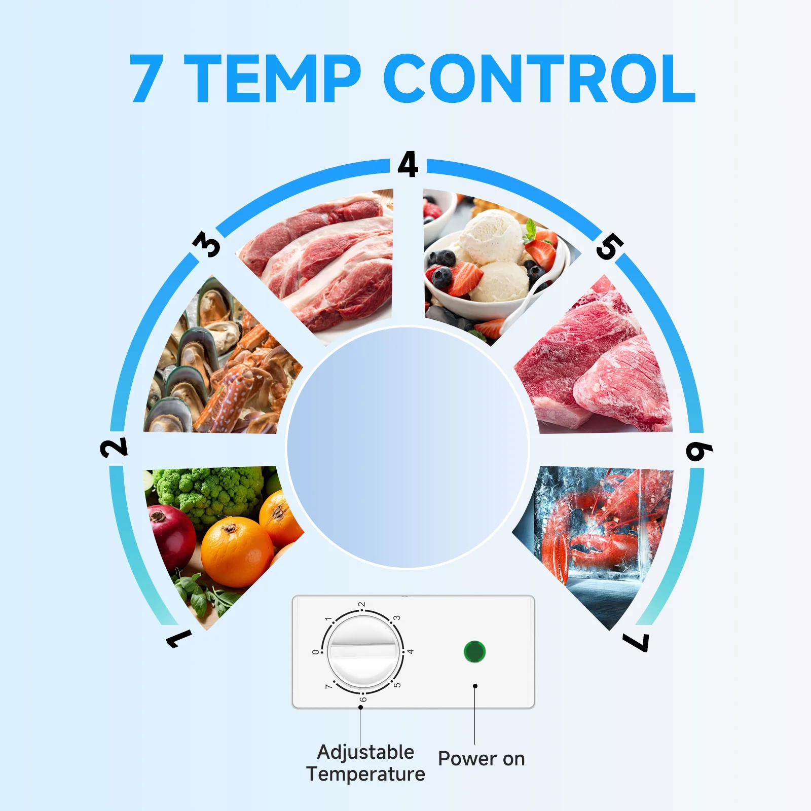 The Bangson 3.5 cu. ft. chest freezer (21.25"L x 21.65"D x 32.28"H) suits 3 - 5 families. It has 7 - grade temp adjustment (-14��~-22��), a removable basket, quiet compressor, user - friendly design (removable seal), upgraded packaging. Let it stand 12 - 24 hrs before use.BANGSON 3.5 Cubic Feet Chest Freezer,Deep Freezer With Removable Basket,Adjustable Temperature for Home/Dorms/Apartment/Office