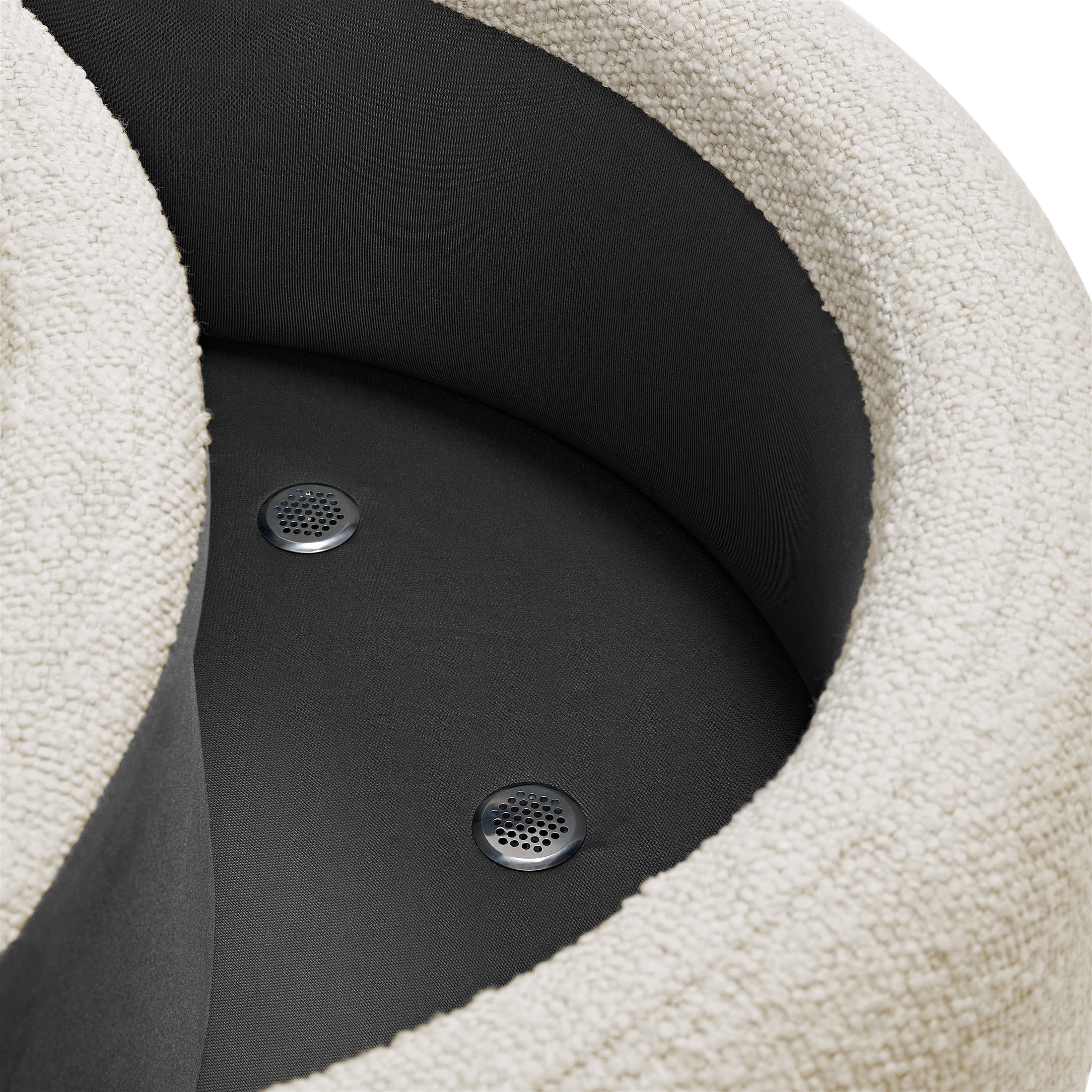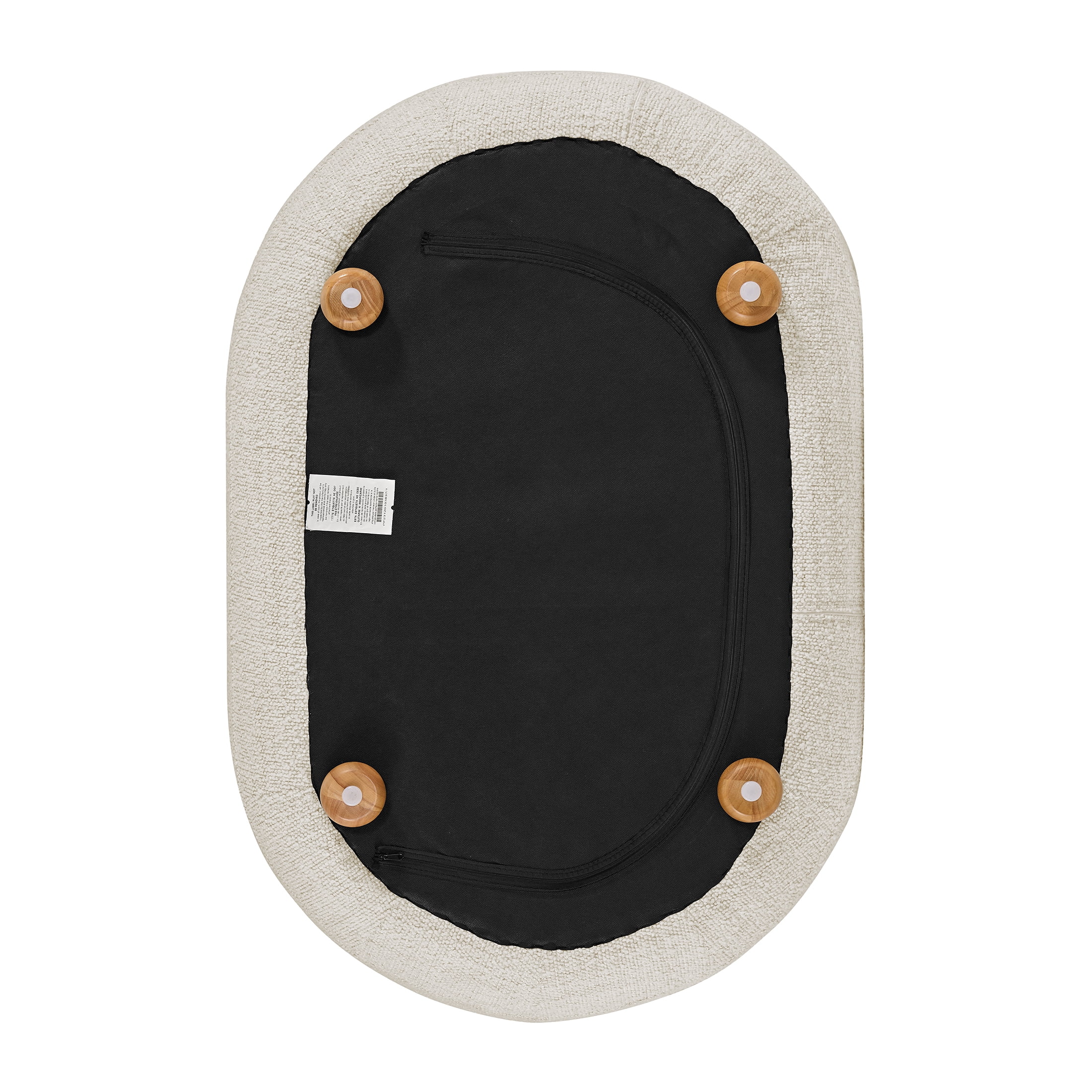 - Chaise and ottoman are upholstered in a high-grade ivory boucle fabric