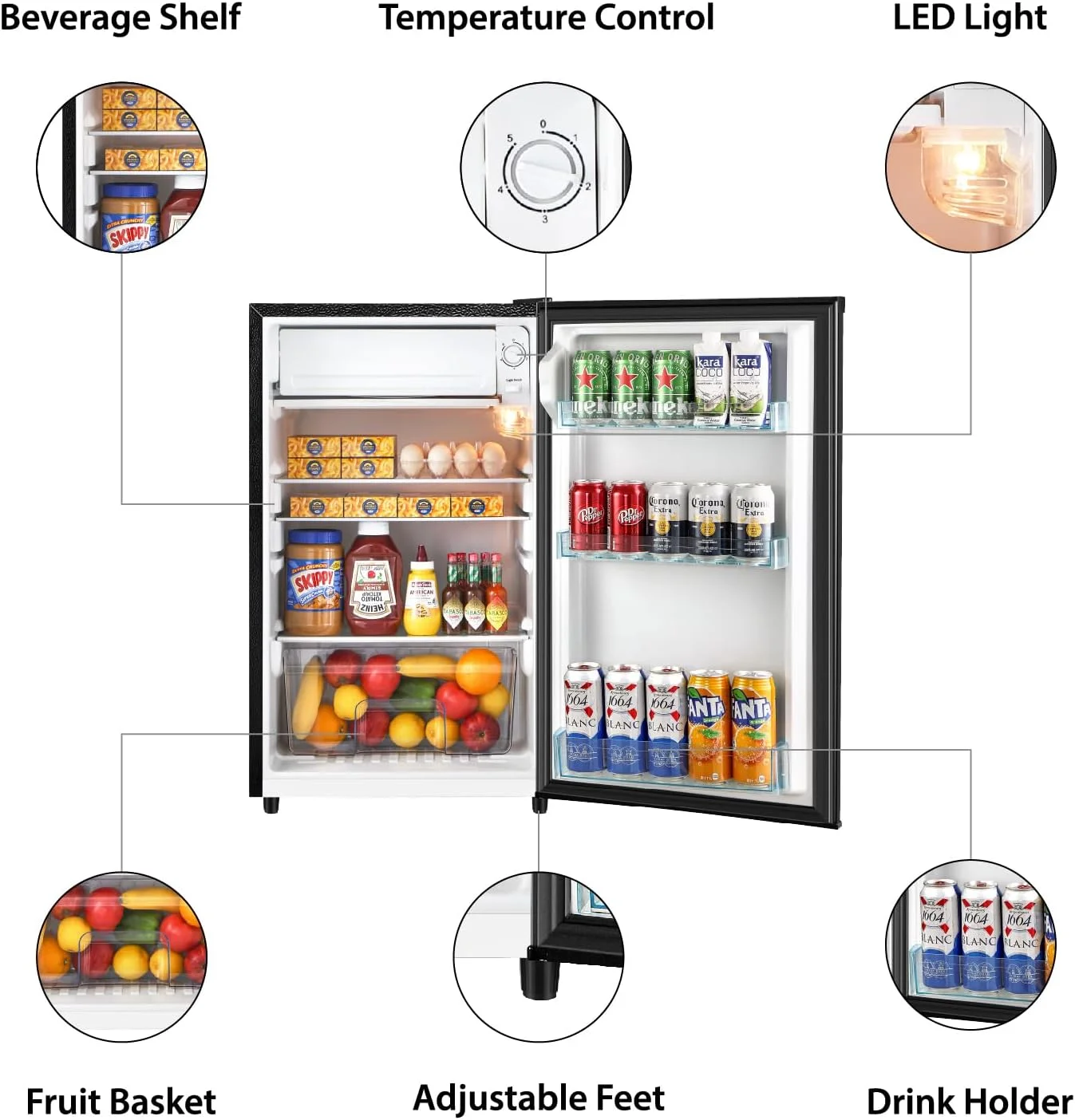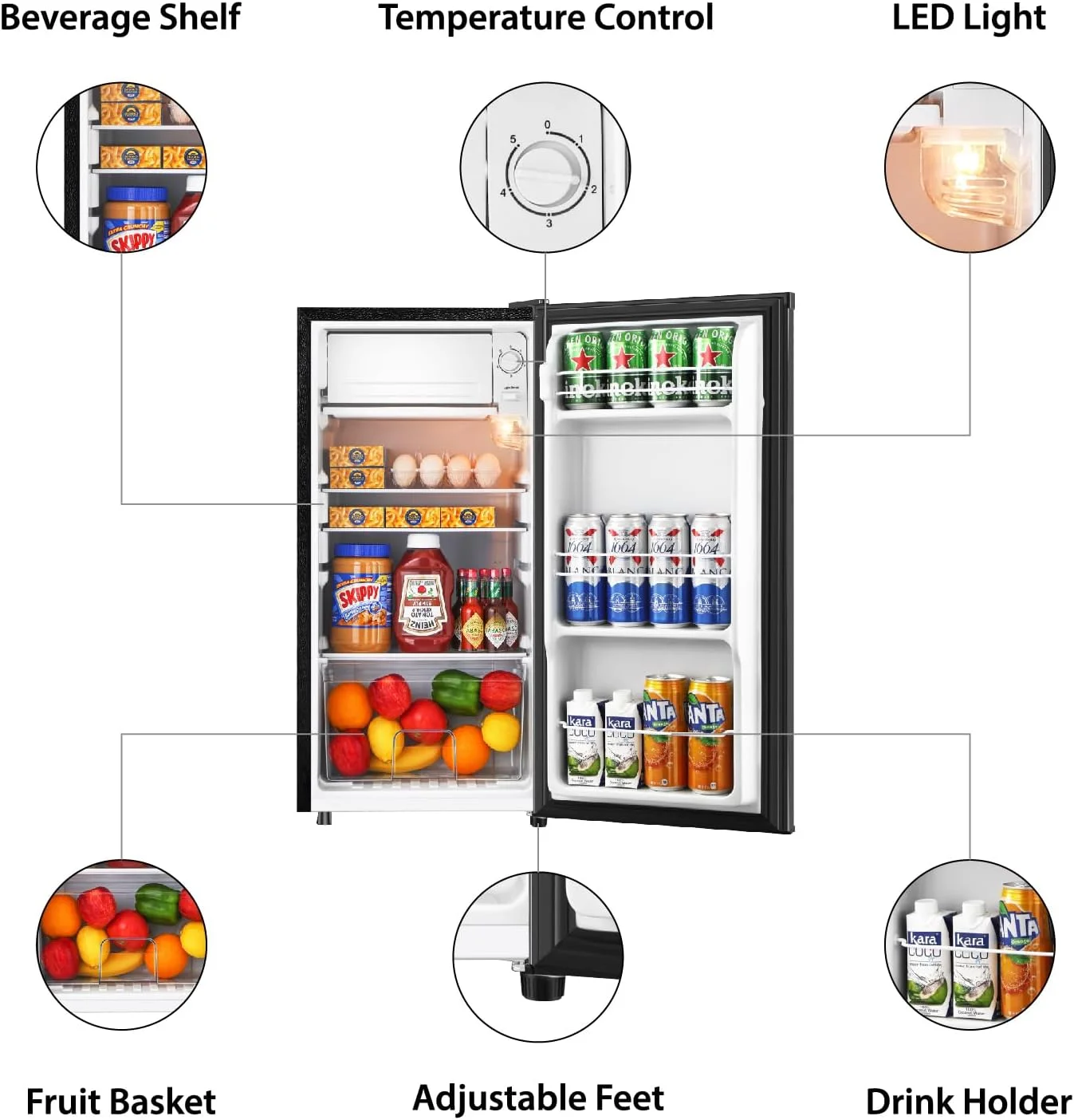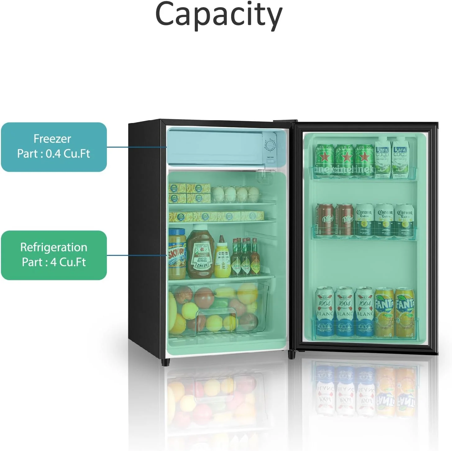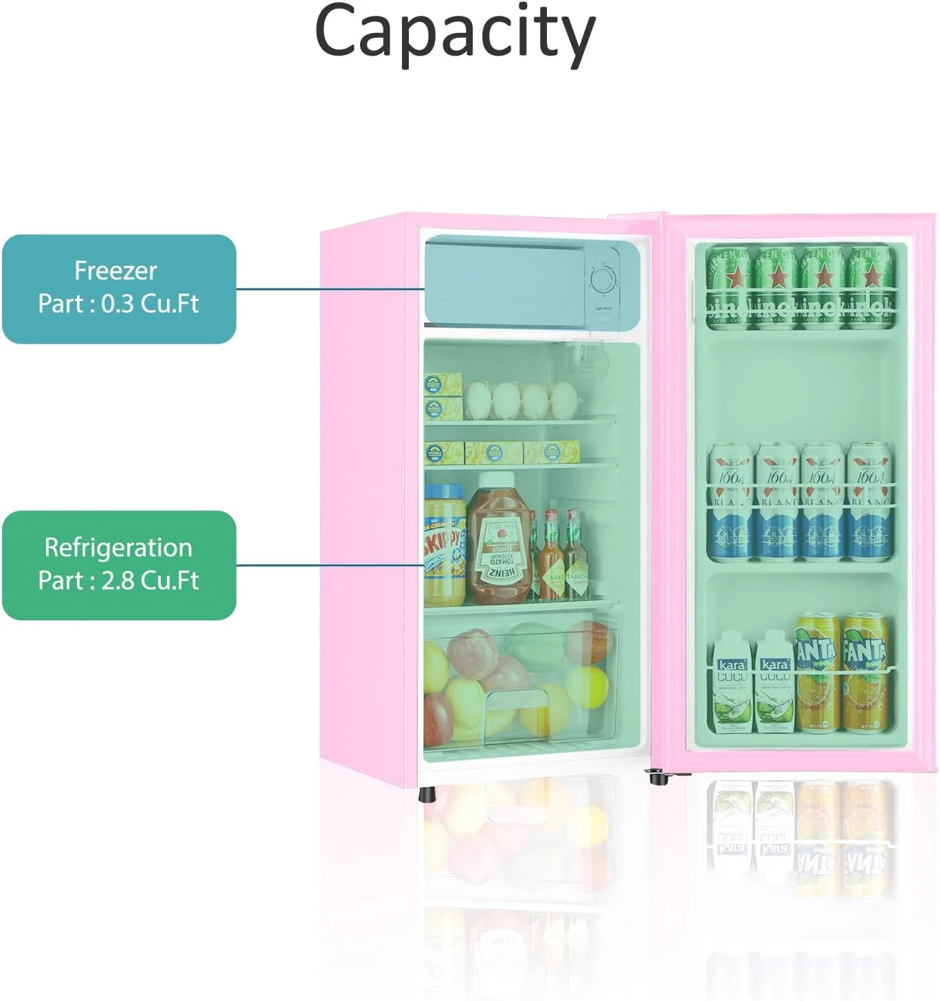 - SPACIOUS CAPACITY - 3.1 Cu.Ft offers ample space for snacks, drinks, and frozen goods
