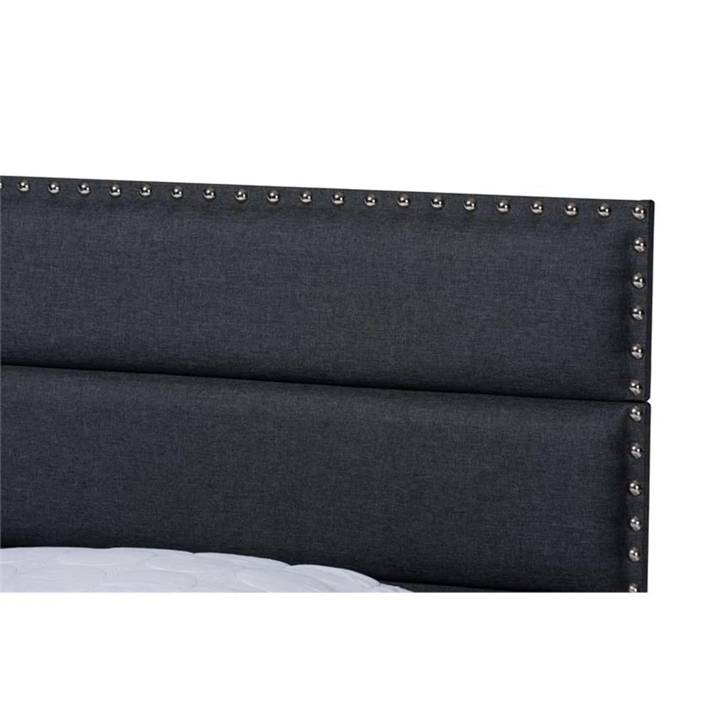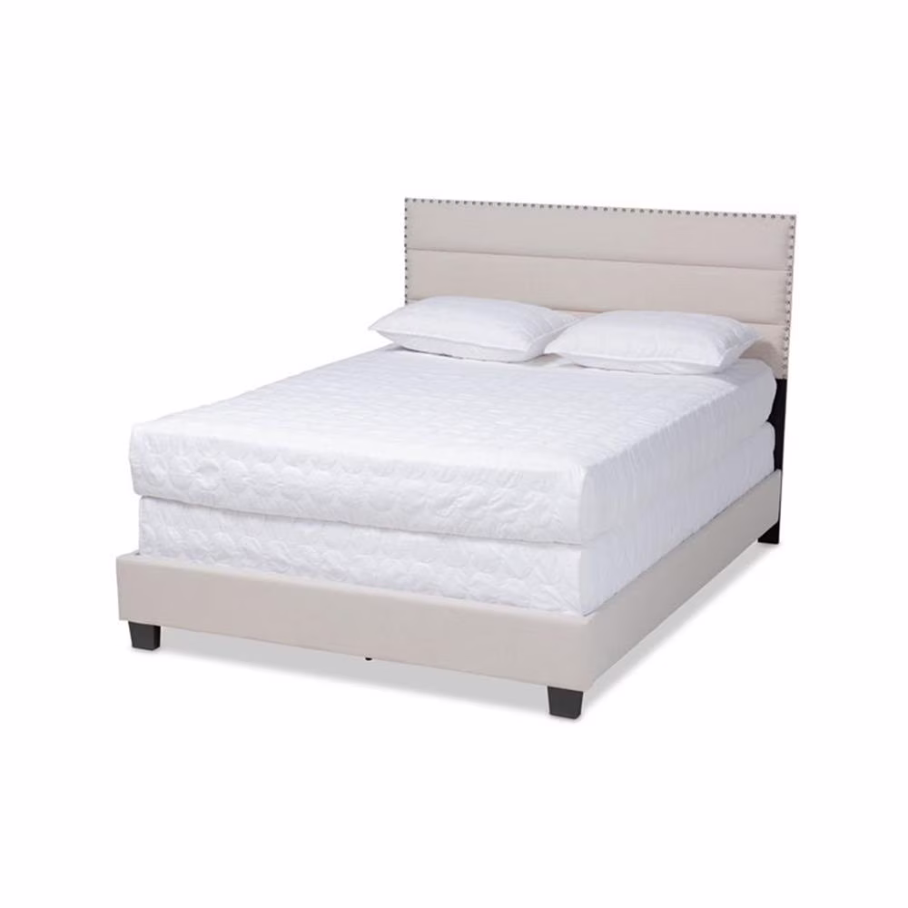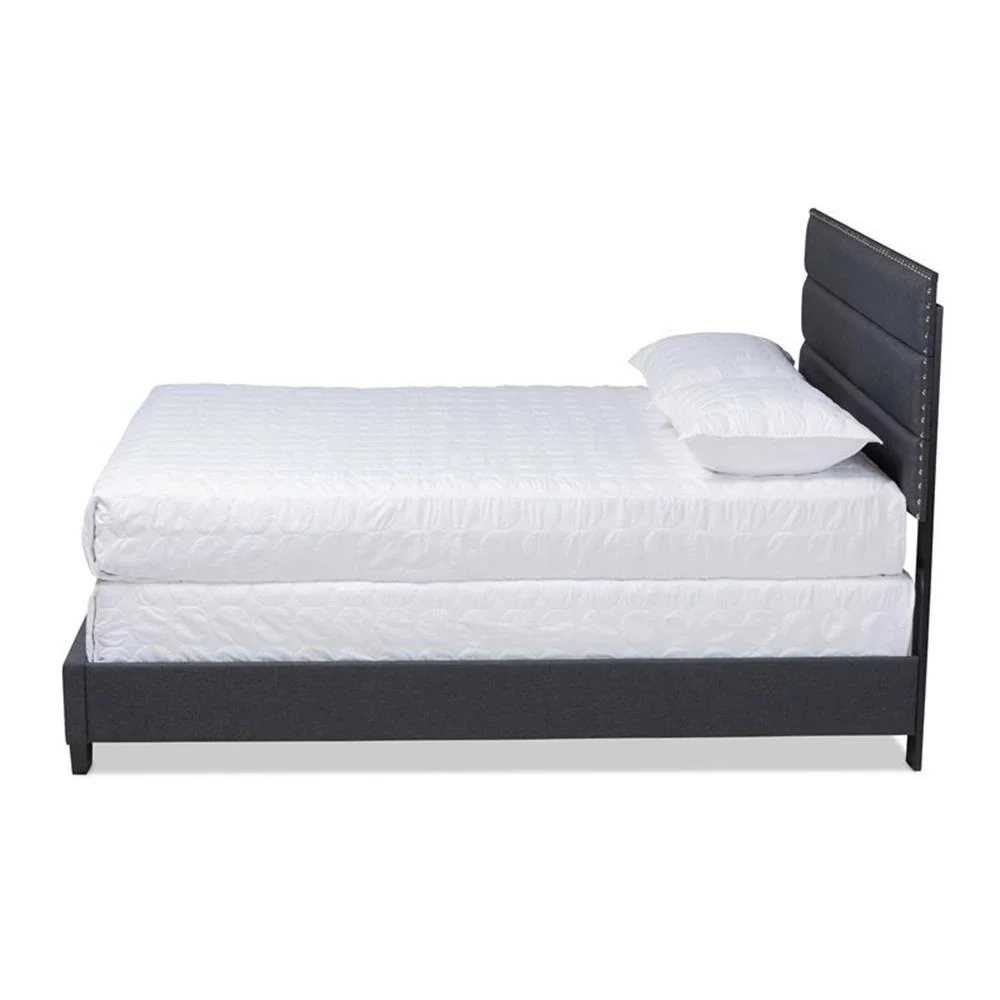 Anchor your bedroom in style and comfort with the Bowery Hill bed. Built with a sturdy wood frame, the Bowery Hill is upholstered in a soft, foam filled polyester fabric that provides ample comfort for you to rest against. Channel tufting adds a clean, modern look, while silver nail heads lend a touch of glamour. Black tapered legs complete the look. A box spring is required for use. The Bowery Hill bed is made in Malaysia and requires assembly.