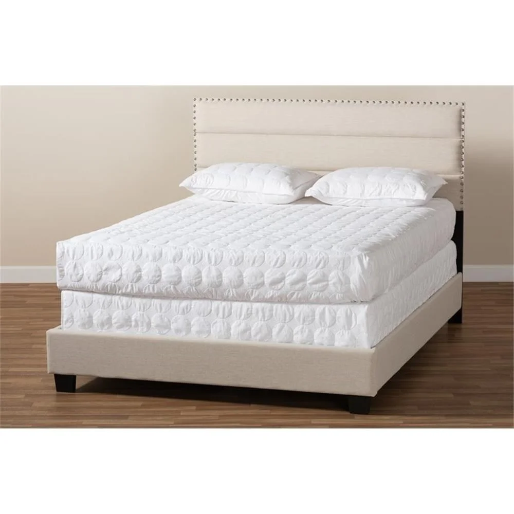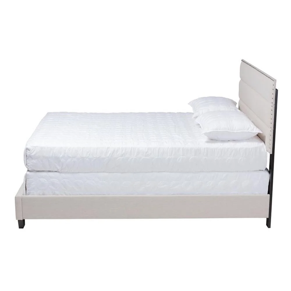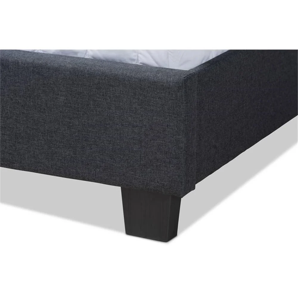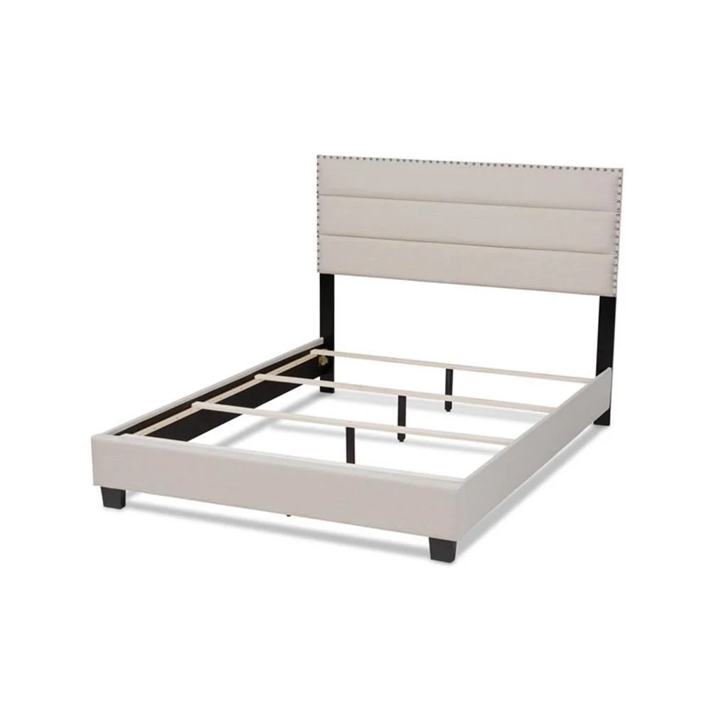 Anchor your bedroom in style and comfort with the Bowery Hill bed. Built with a sturdy wood frame, the Bowery Hill is upholstered in a soft, foam filled polyester fabric that provides ample comfort for you to rest against. Channel tufting adds a clean, modern look, while silver nail heads lend a touch of glamour. Black tapered legs complete the look. A box spring is required for use. The Bowery Hill bed is made in Malaysia and requires assembly.